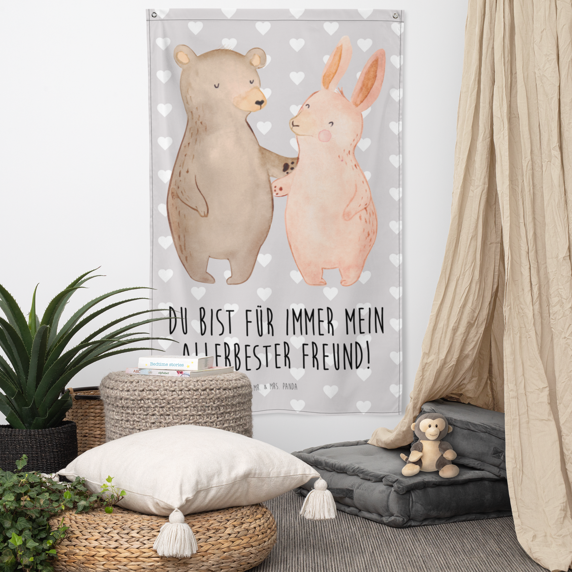 Wandteppich Bär Hase Umarmen - mit Spruch