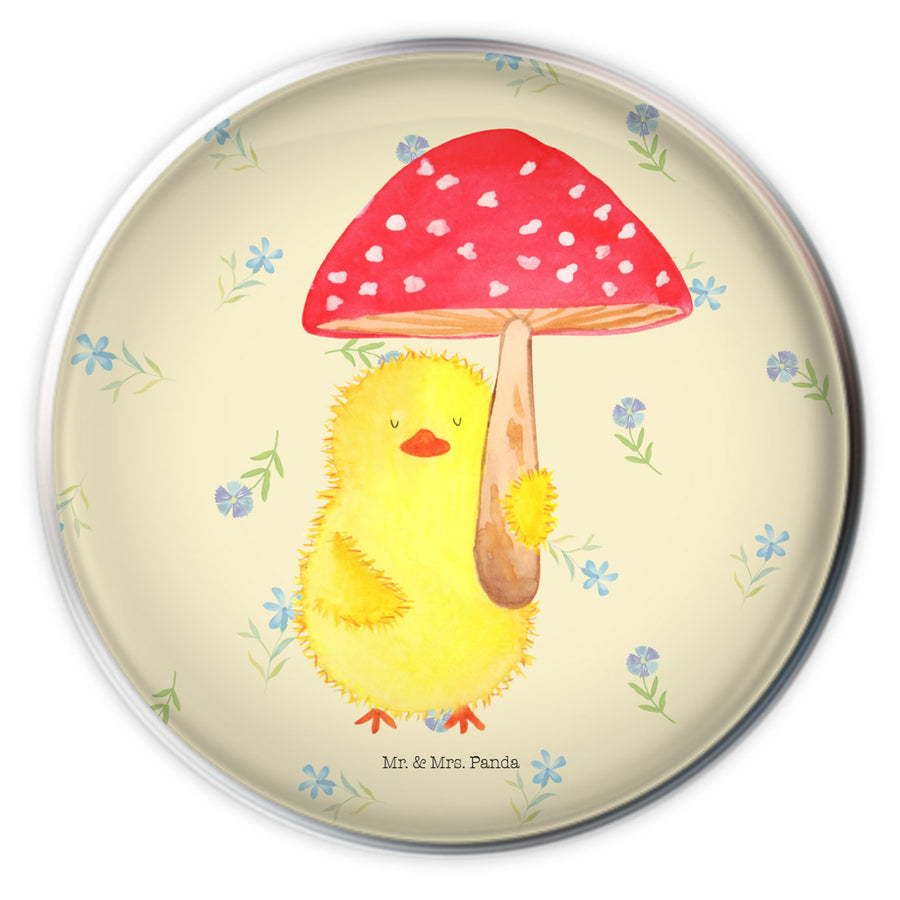 Mit dem Küken Fliegenpilz-Motiv von Mr. & Mrs. Panda verleihst du deinem Outfit einen Hauch von Niedlichkeit und Nostalgie. Das süße Küken hält einen roten Fliegenpilz in der Hand und verleiht dir damit einen besonderen Charme. Der Pilz kann sogar als Regenschirm verwendet werden, was nicht nur praktisch, sondern auch sehr originell ist. Trage das Motiv als Anstecker an deiner Kleidung, als Taschenanhänger oder als Schlüsselanhänger und lass dich von der liebevollen Gestaltung verzaubern.