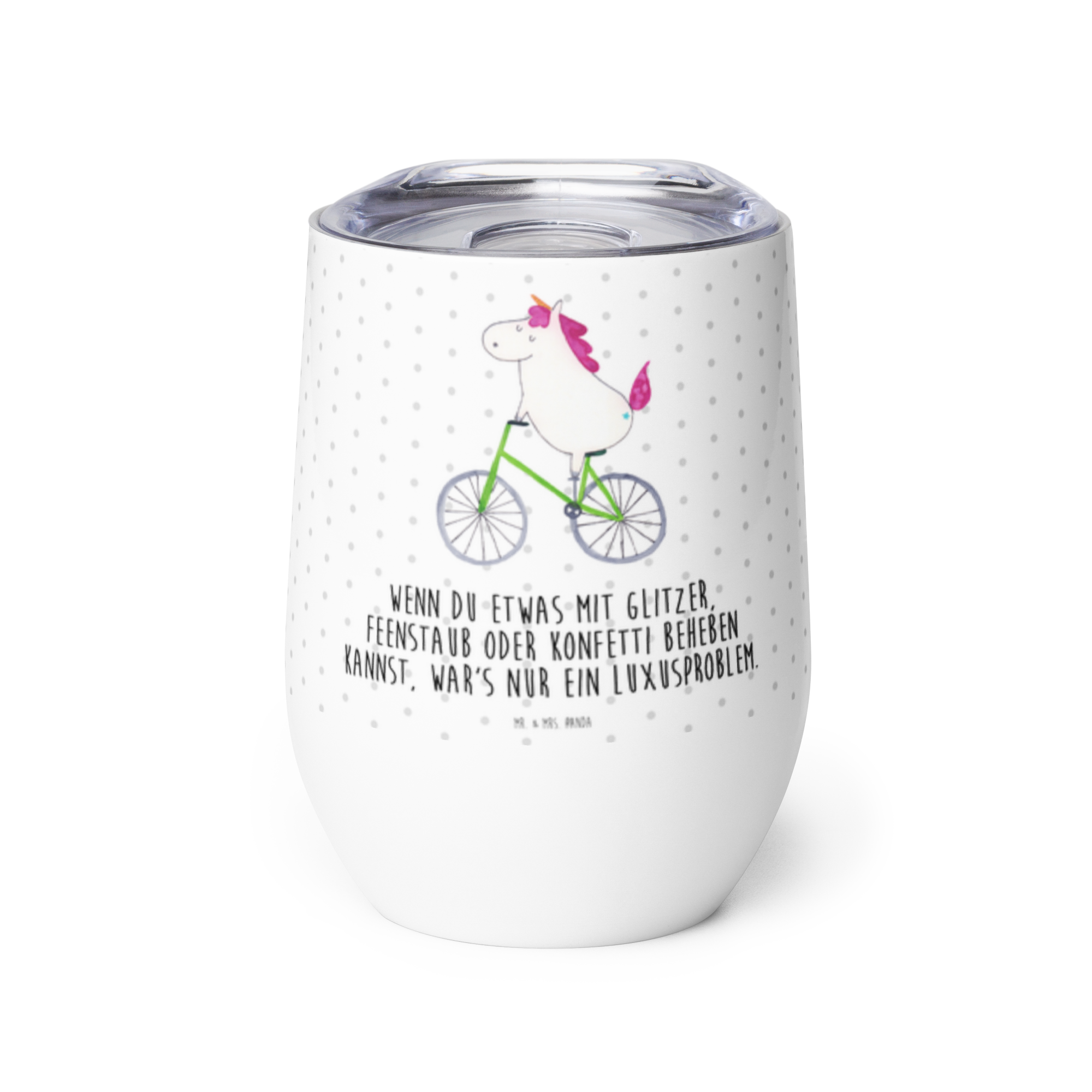 Weinbecher Einhorn Radfahrer - mit Spruch