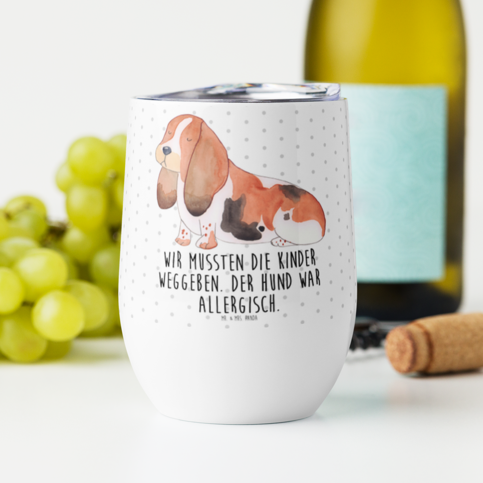 Weinbecher Hund Basset Hound - mit Spruch