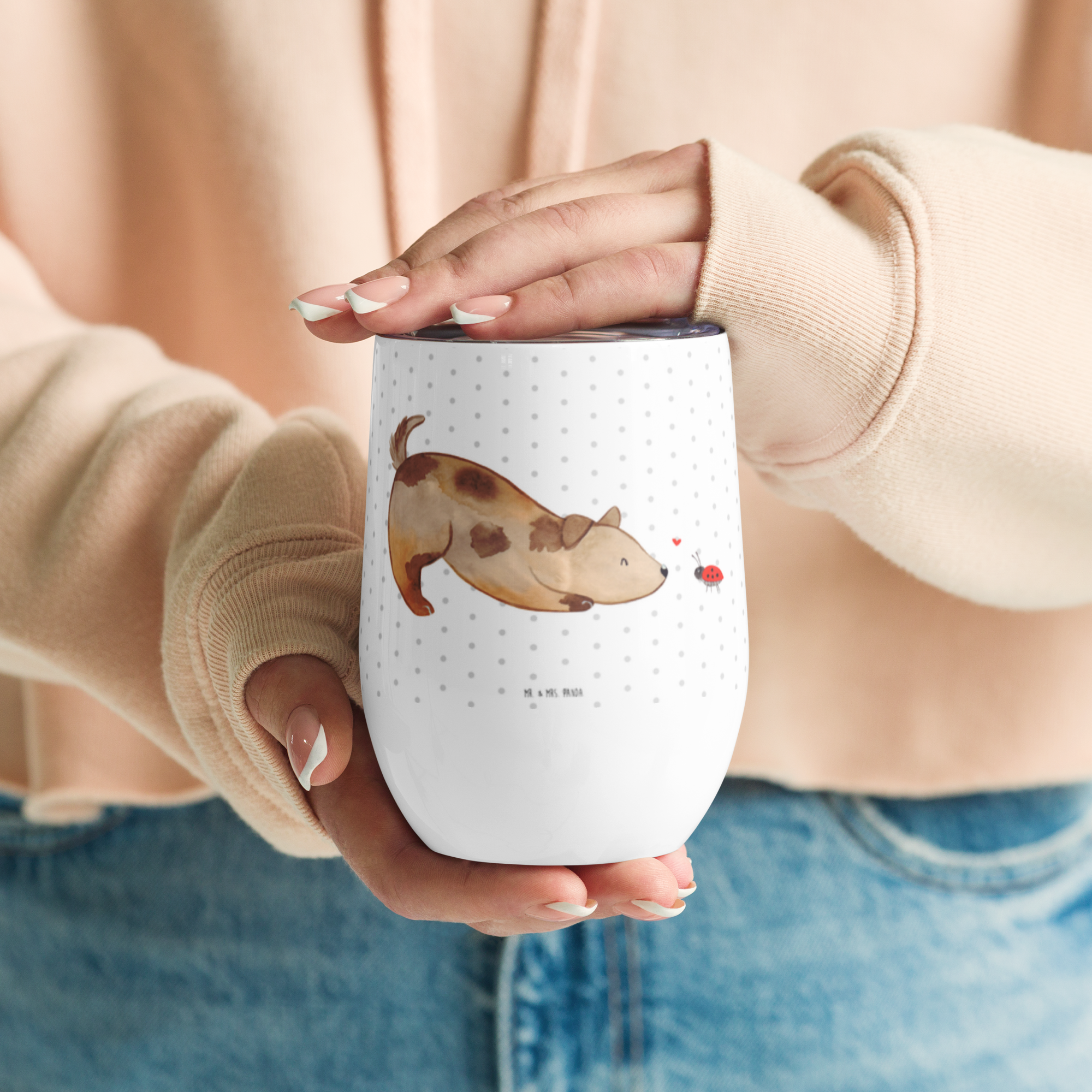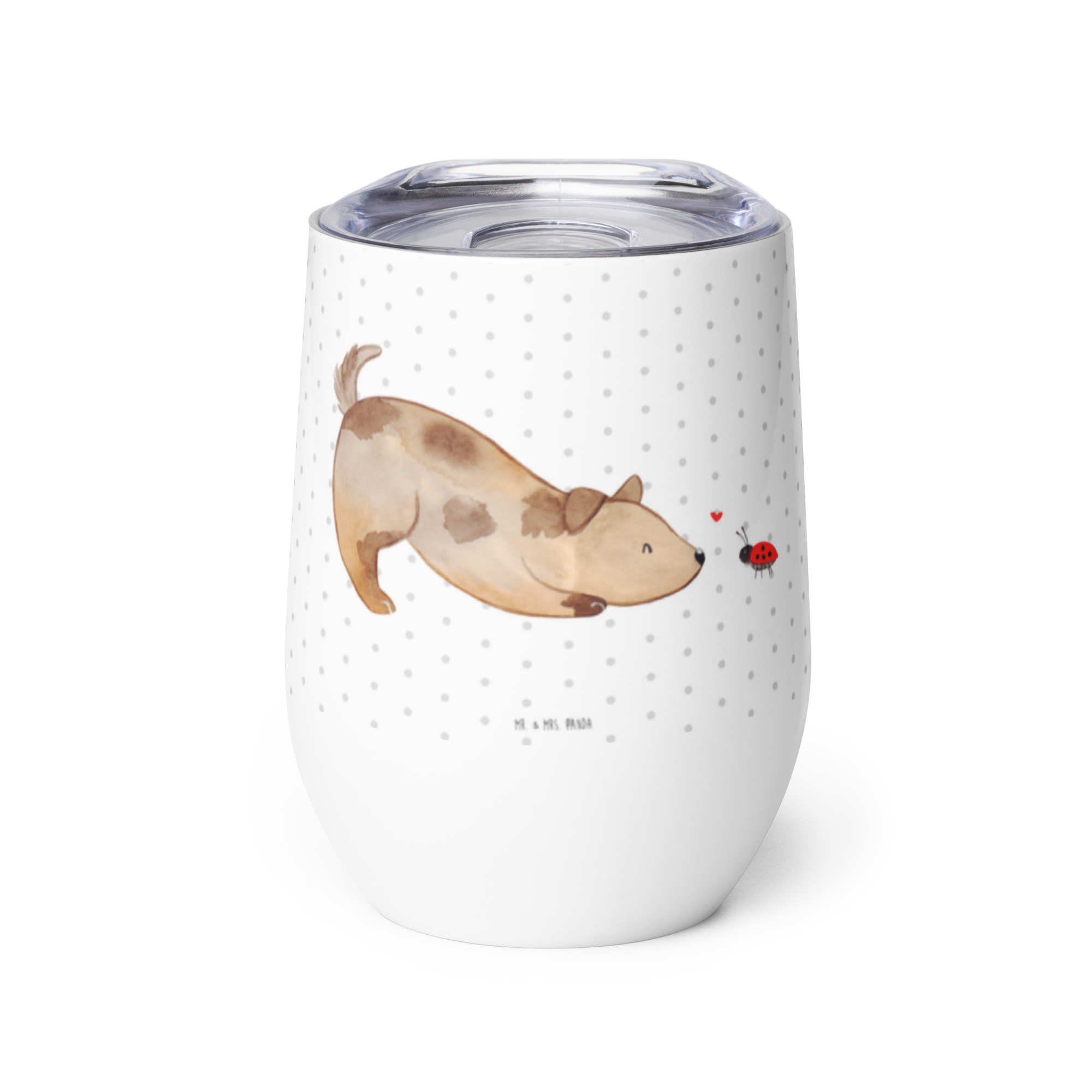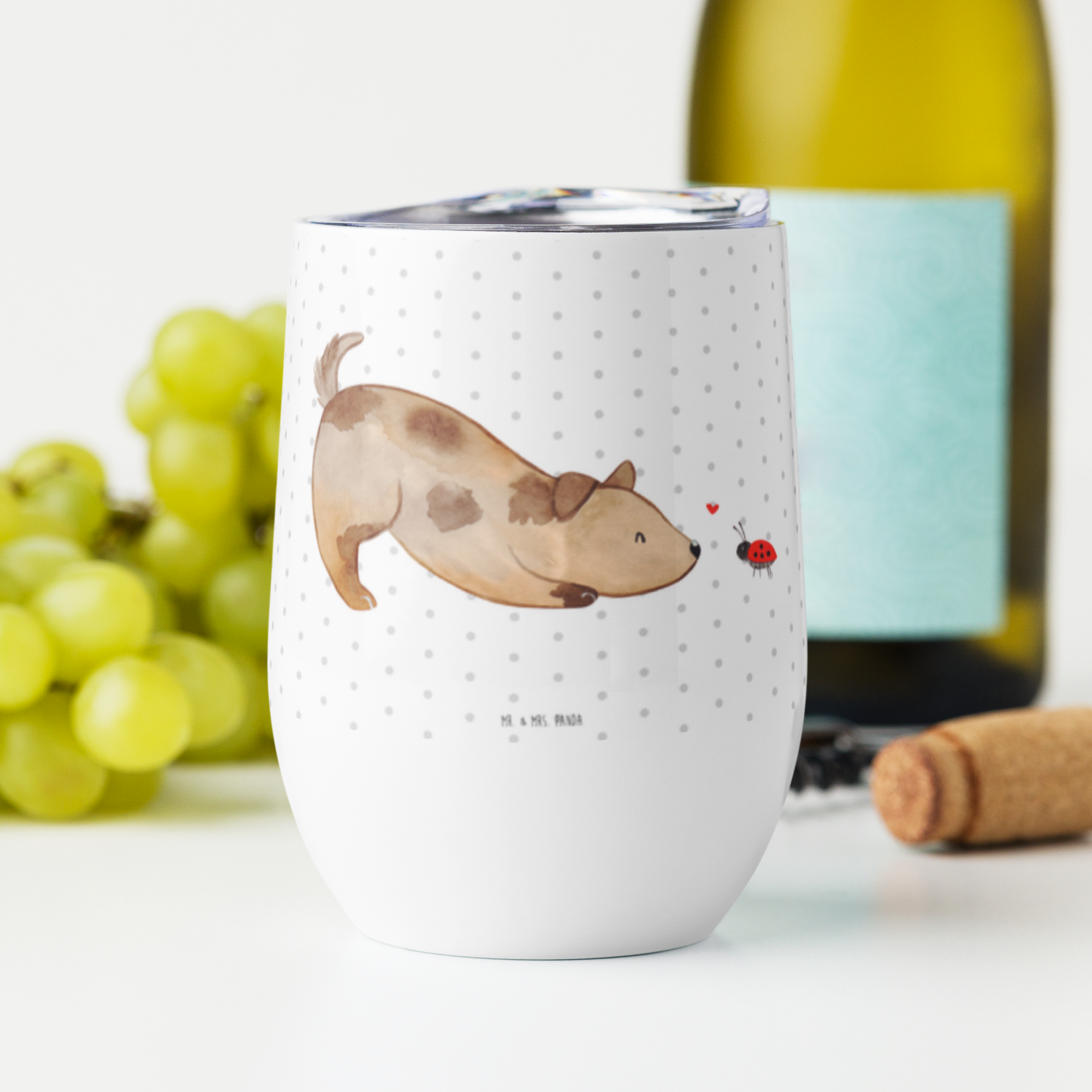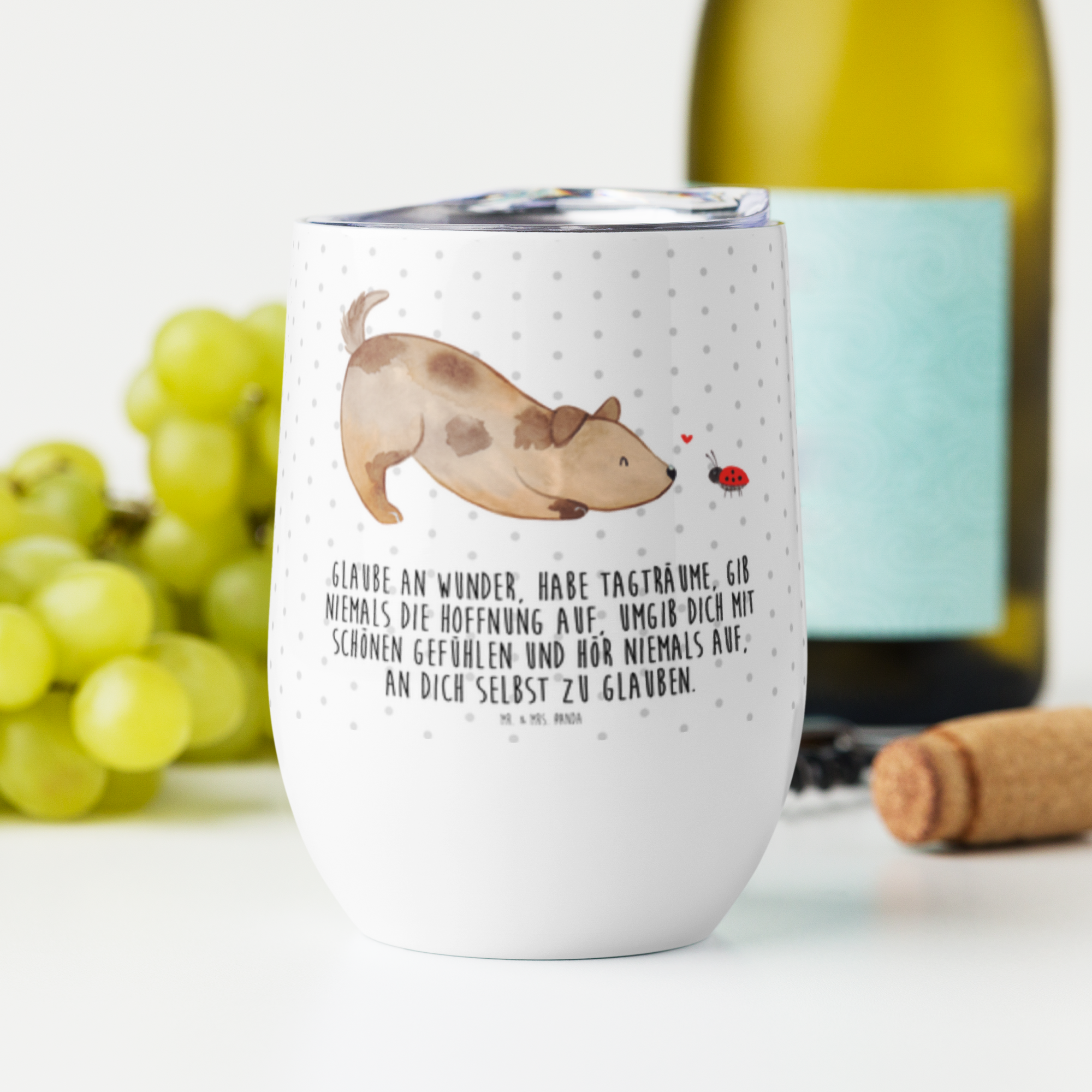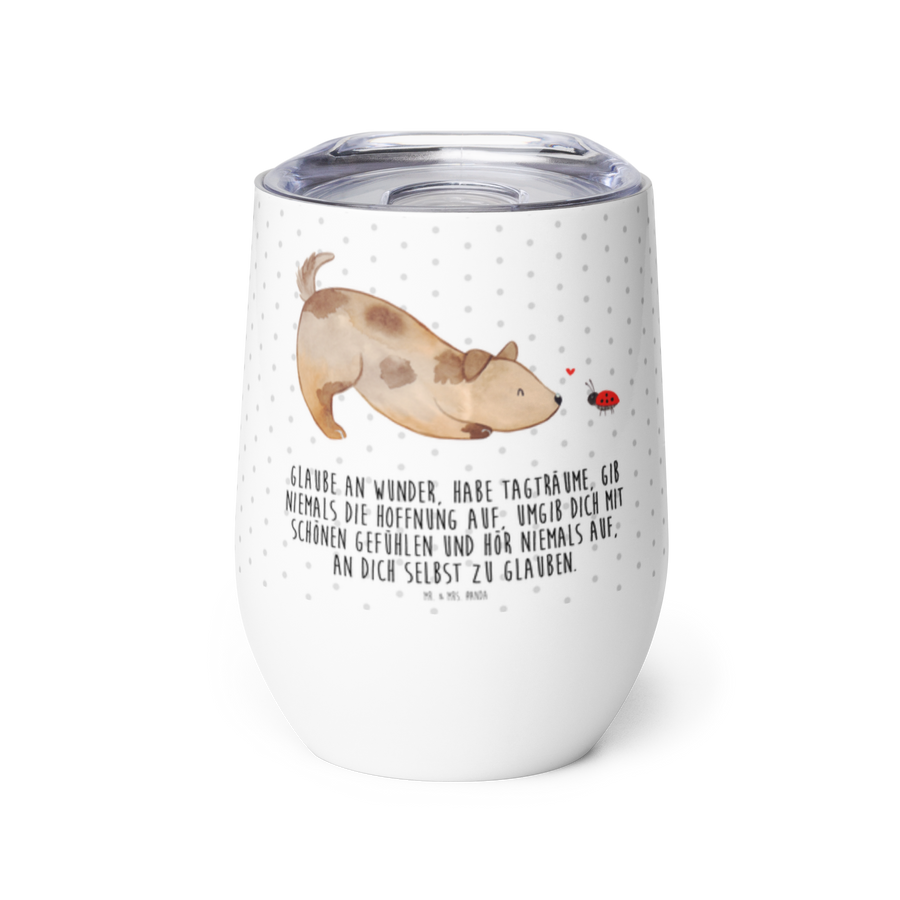Weinbecher Hund Marienkäfer - mit Spruch