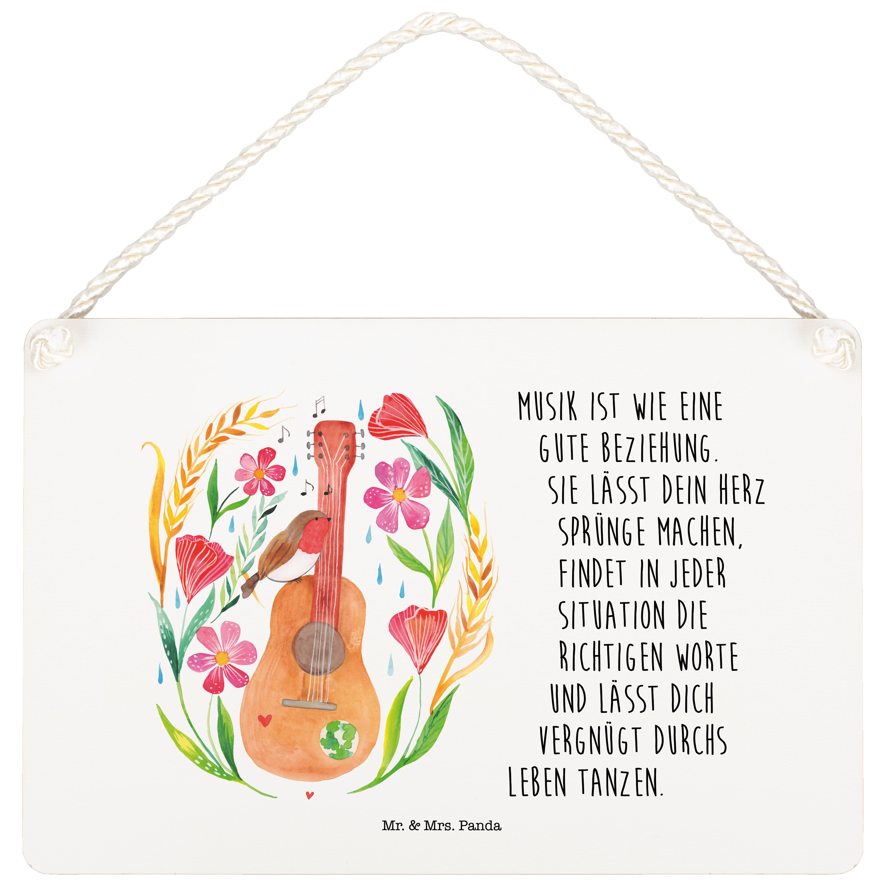 Dekoschild Rotkehlchen Gitarre - A4 Deko Schild