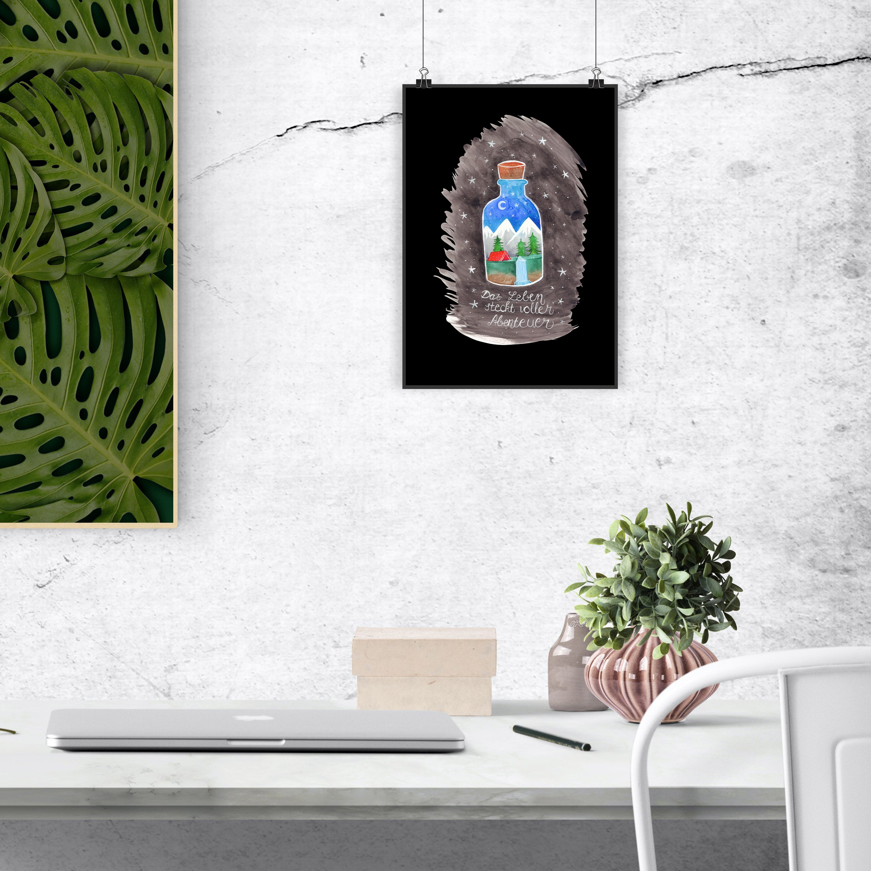 Poster Flasche Abenteuer  Poster, Wandposter, Bild, Wanddeko, Küchenposter, Kinderposter, Wanddeko Bild, Raumdekoration, Wanddekoration, Handgemaltes Poster, Mr. & Mrs. Panda Poster, Designposter, Kunstdruck, Posterdruck  Blumen Deko, Frühlings Deko, Sommer Deko, Dekoration, positive Botschaft, Naturliebhaber, Outdoor, Natur, Abenteuer