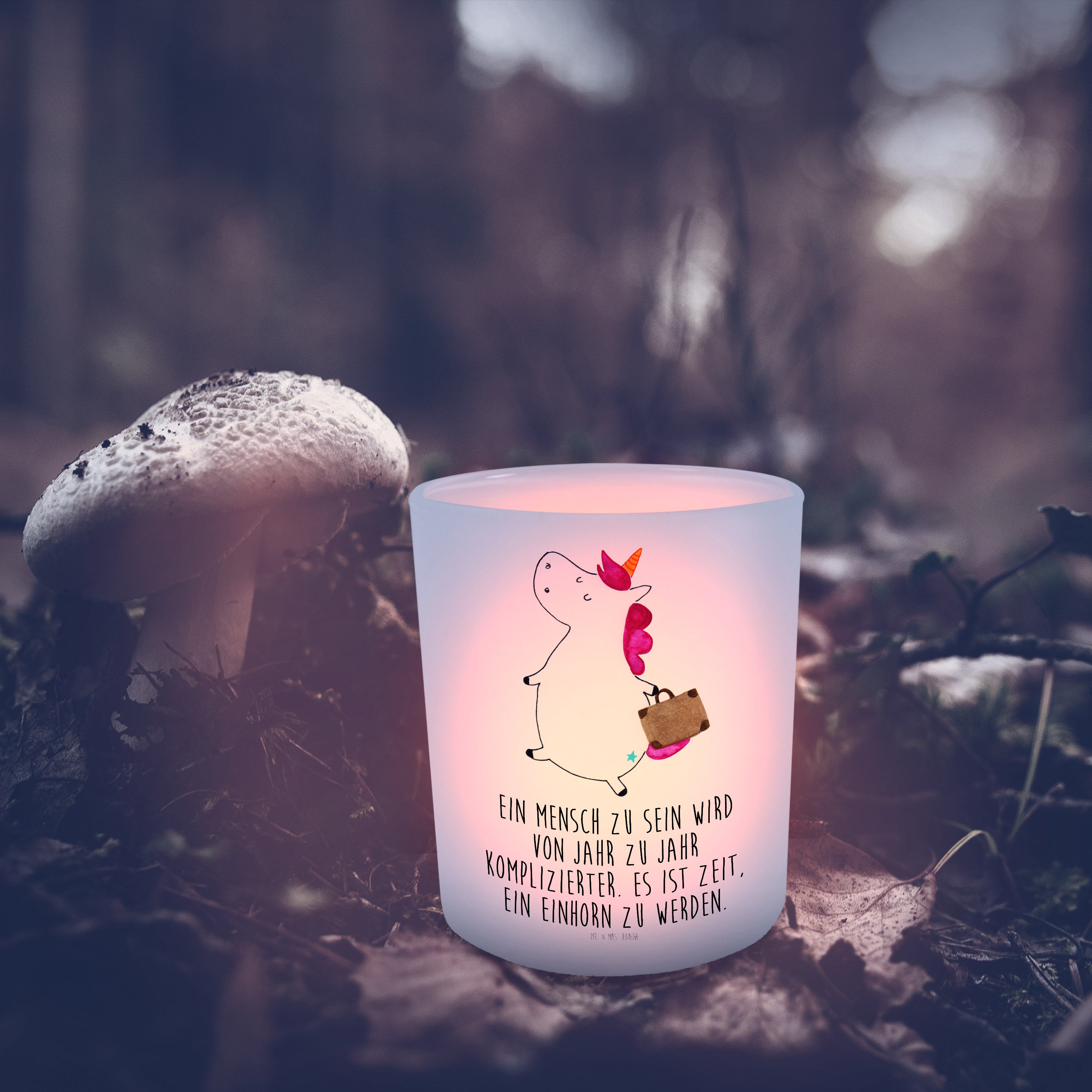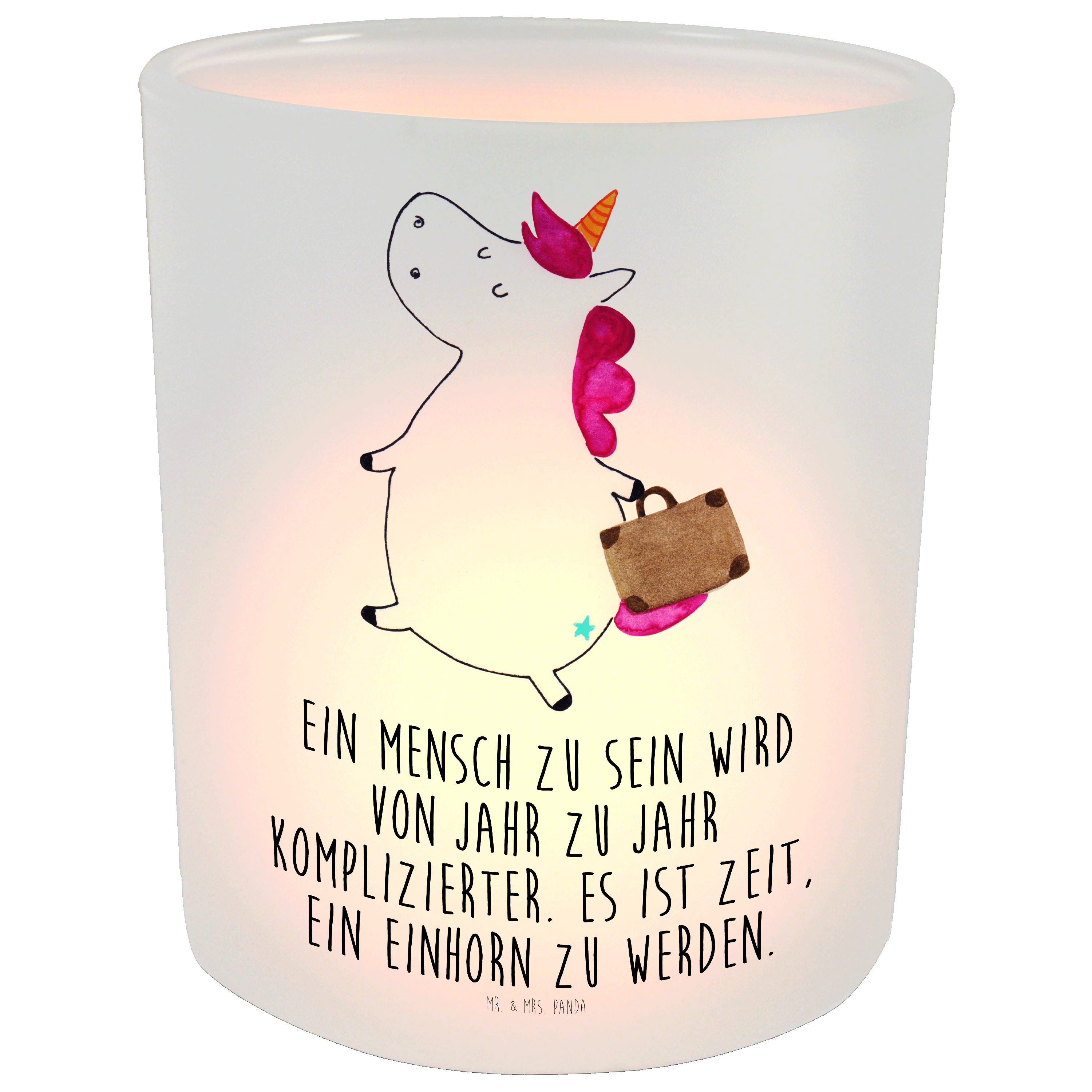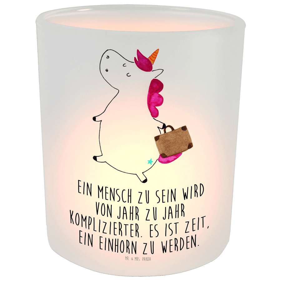 Windlicht Einhorn Koffer Windlicht Glas, Teelichtglas, Teelichthalter, Teelichter, Kerzenglas, Windlicht Kerze, Kerzenlicht, Einhorn, Einhörner, Einhorn Deko, Pegasus, Unicorn, unicorn, Koffer, Verreisen, Reise, Gepäck, Abenteuer, Erwachsen, Kind, albern, Spaß, lustig, witzig