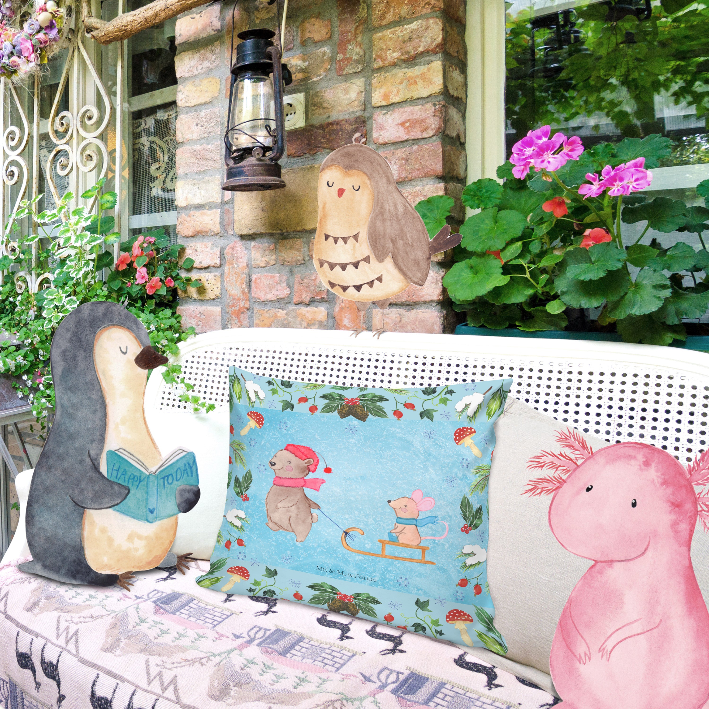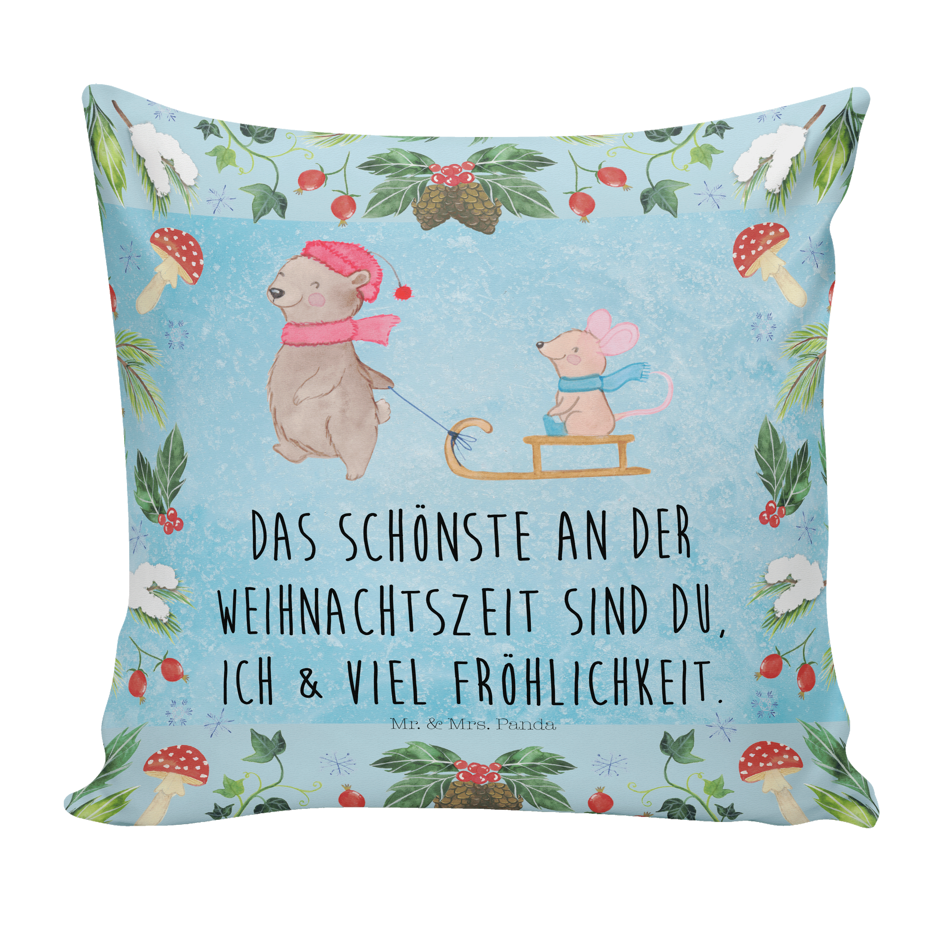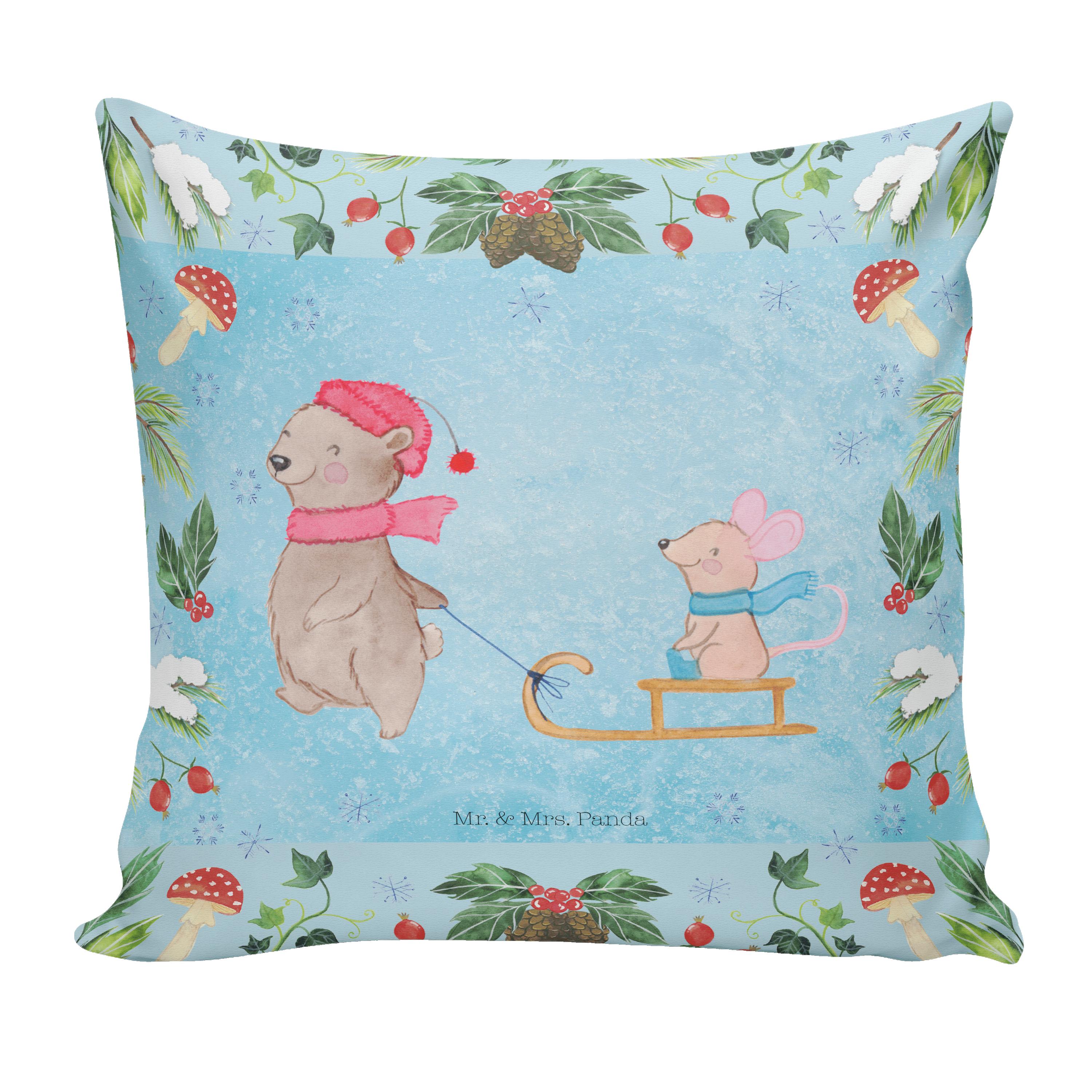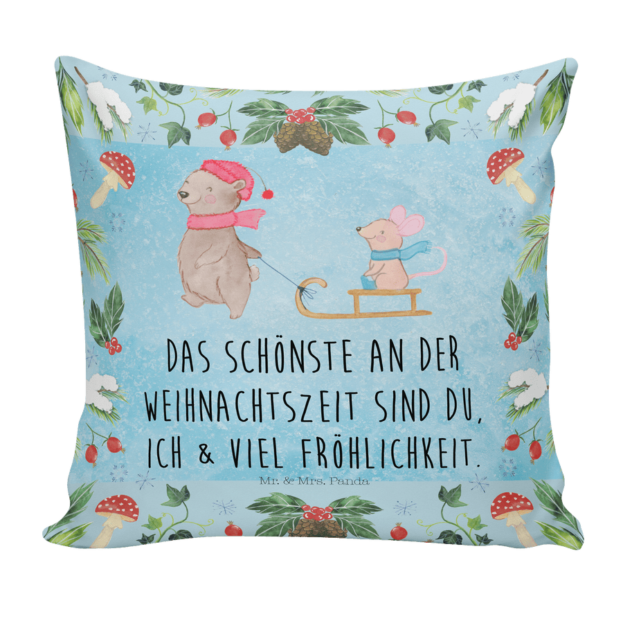 40x40 Kissen Bär Maus Schlitten - mit Spruch - Eisblau