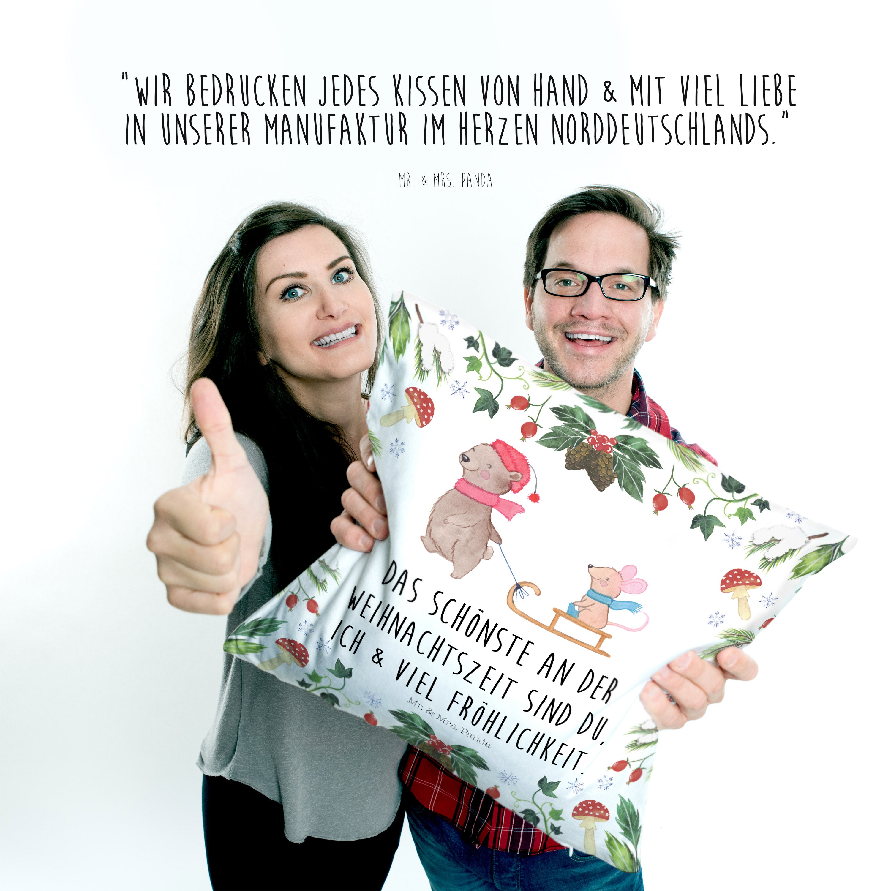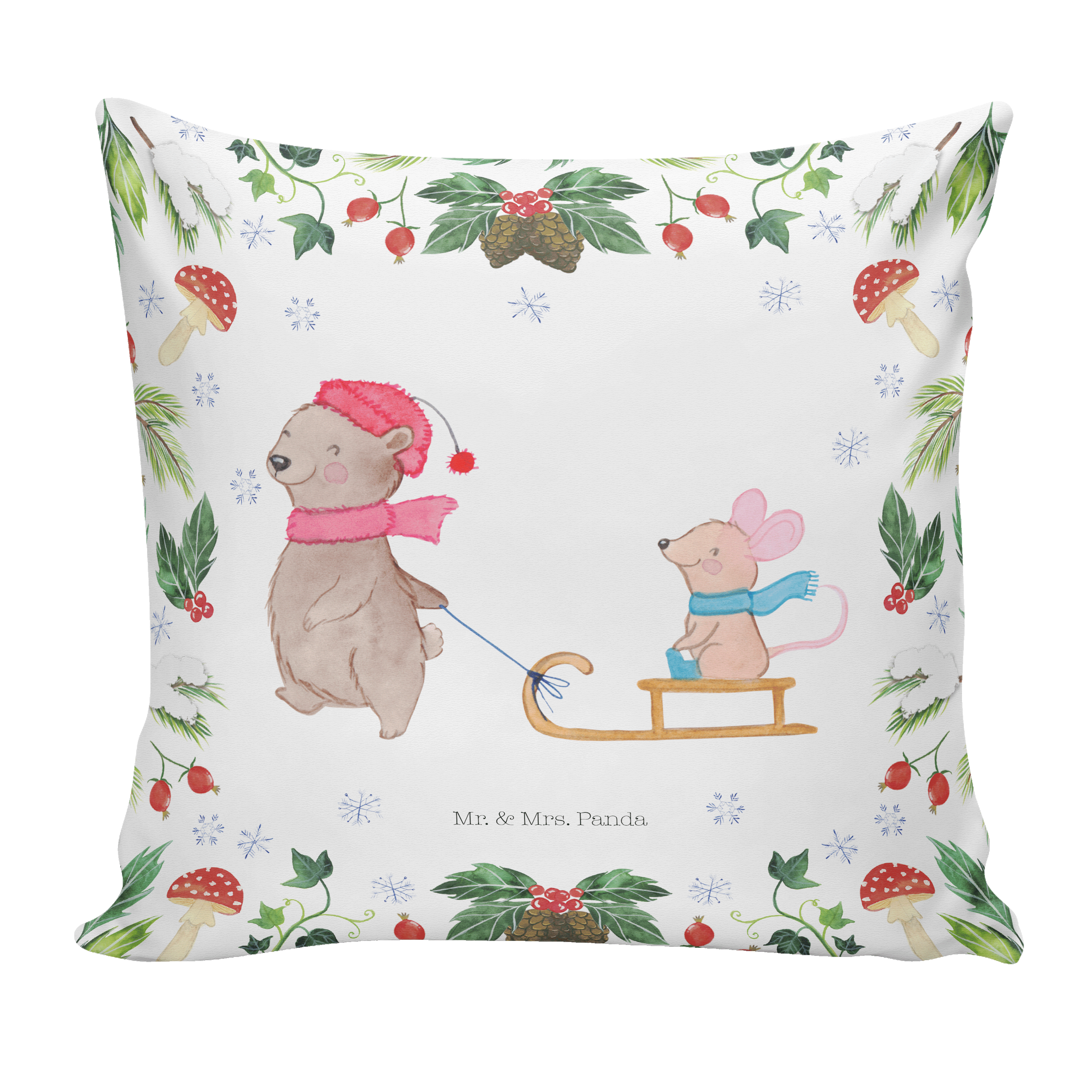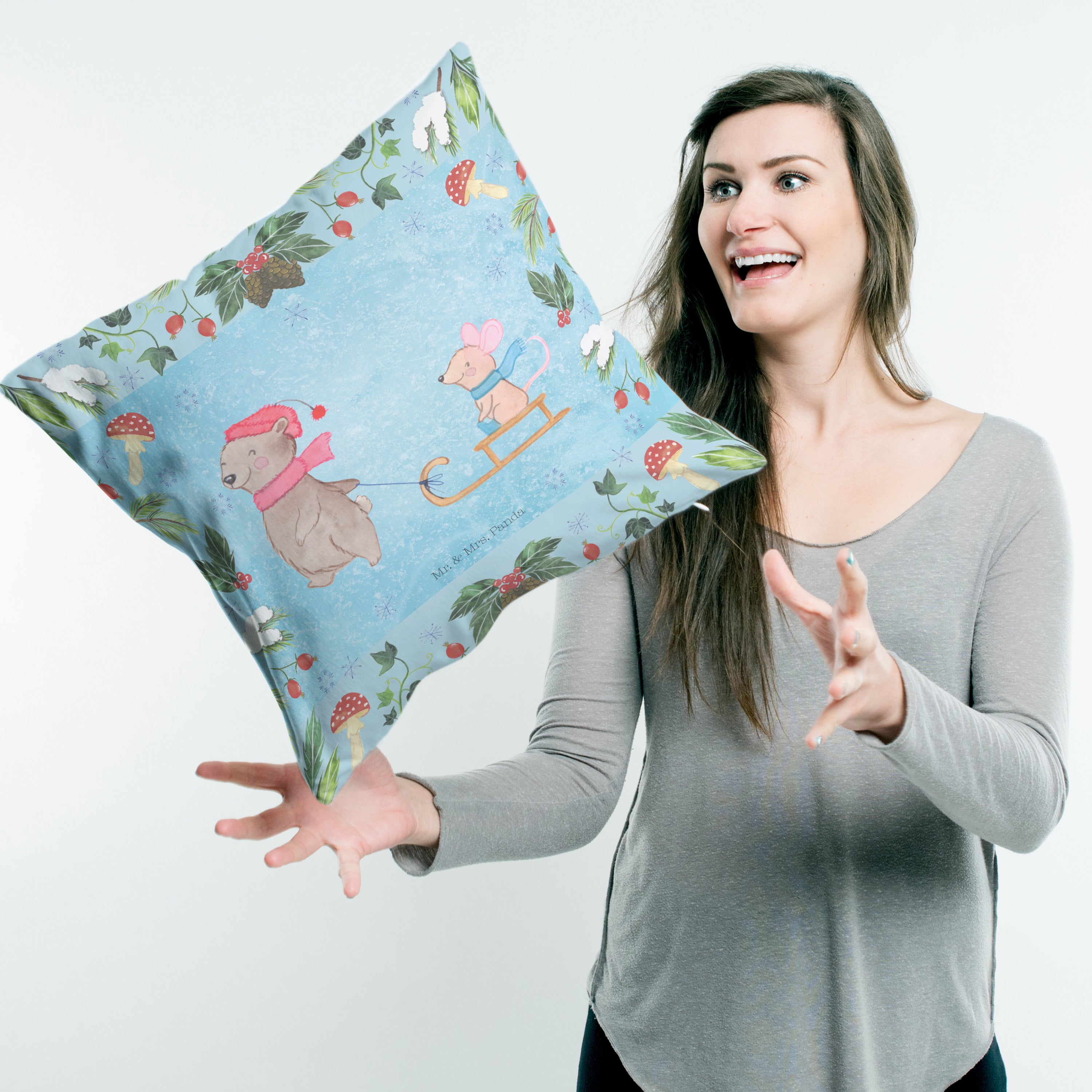 40x40 Kissen Bär Maus Schlitten - mit Spruch - Eisblau