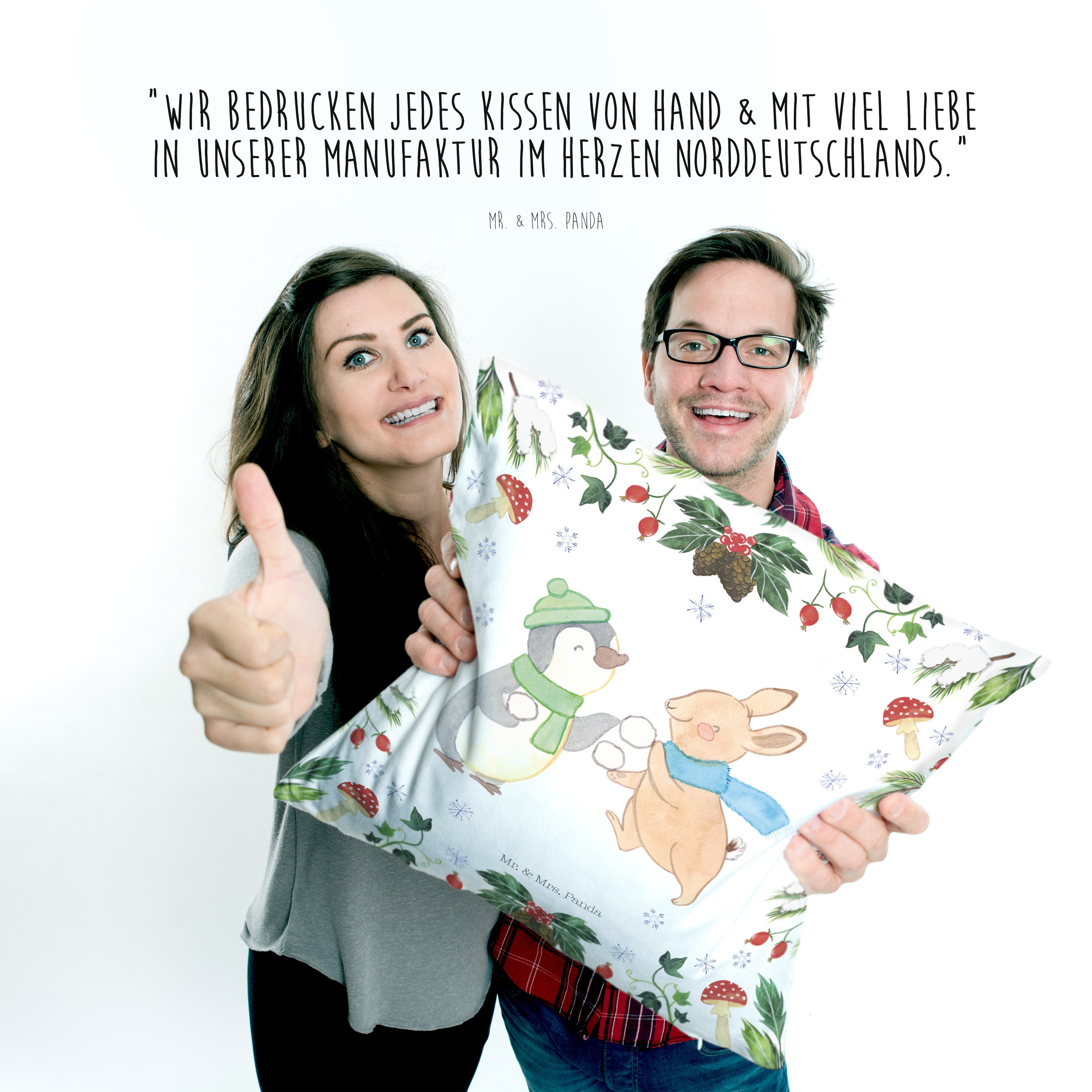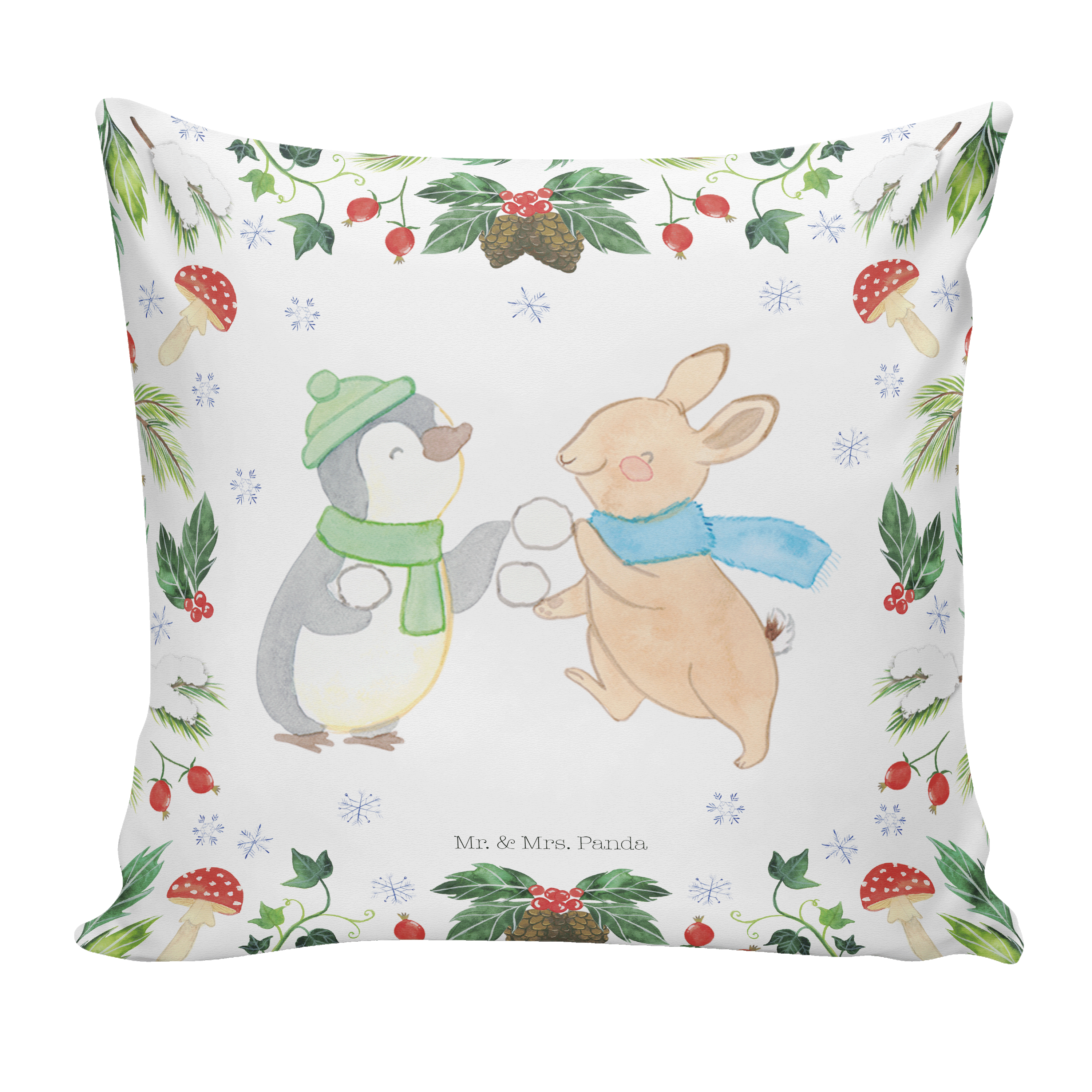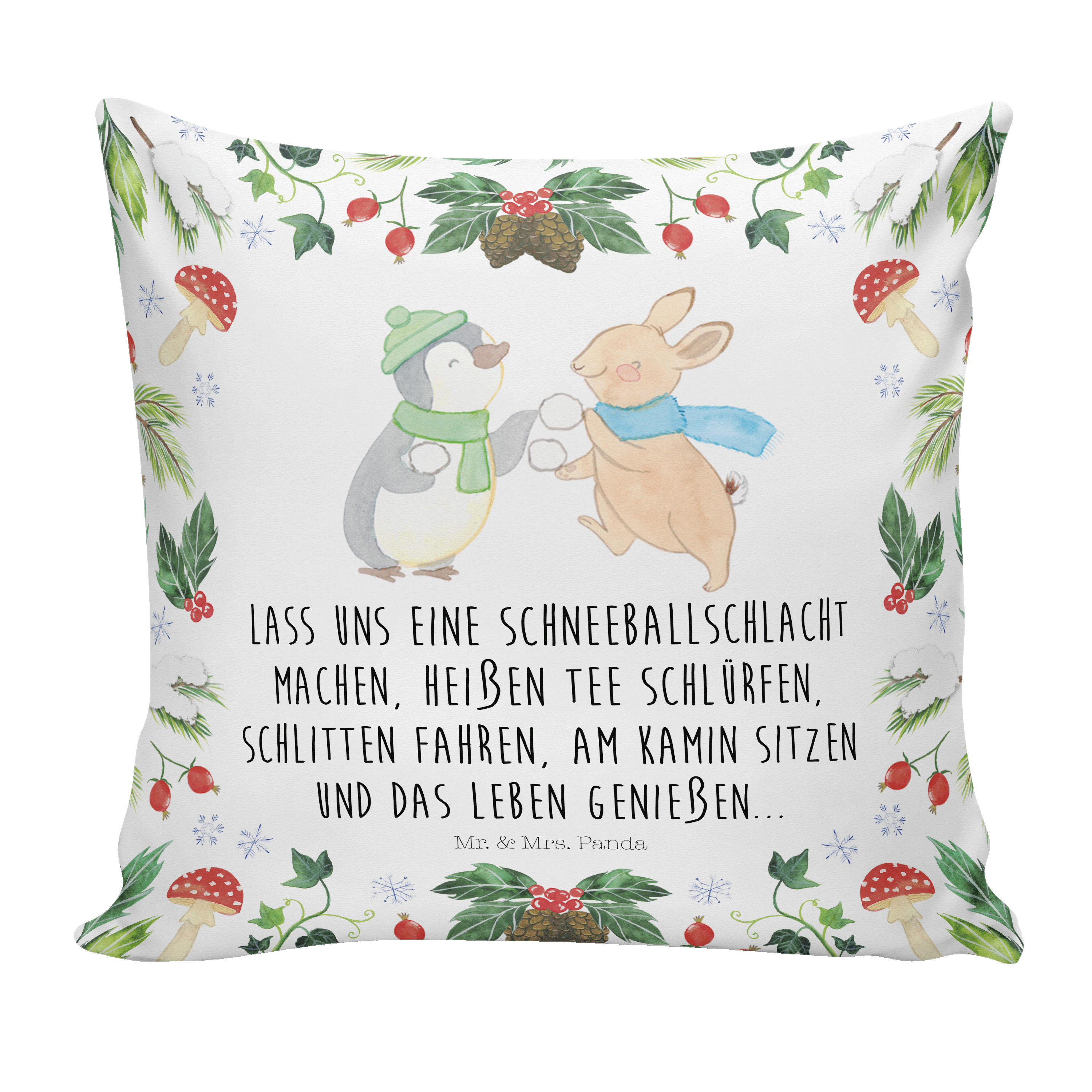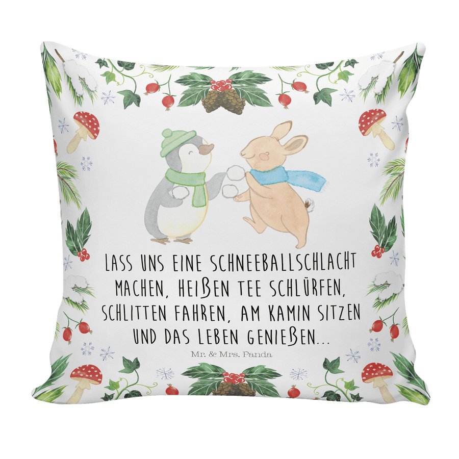 40x40 Kissen Pinguin Hase Schneeballschlacht - mit Spruch - Weiß