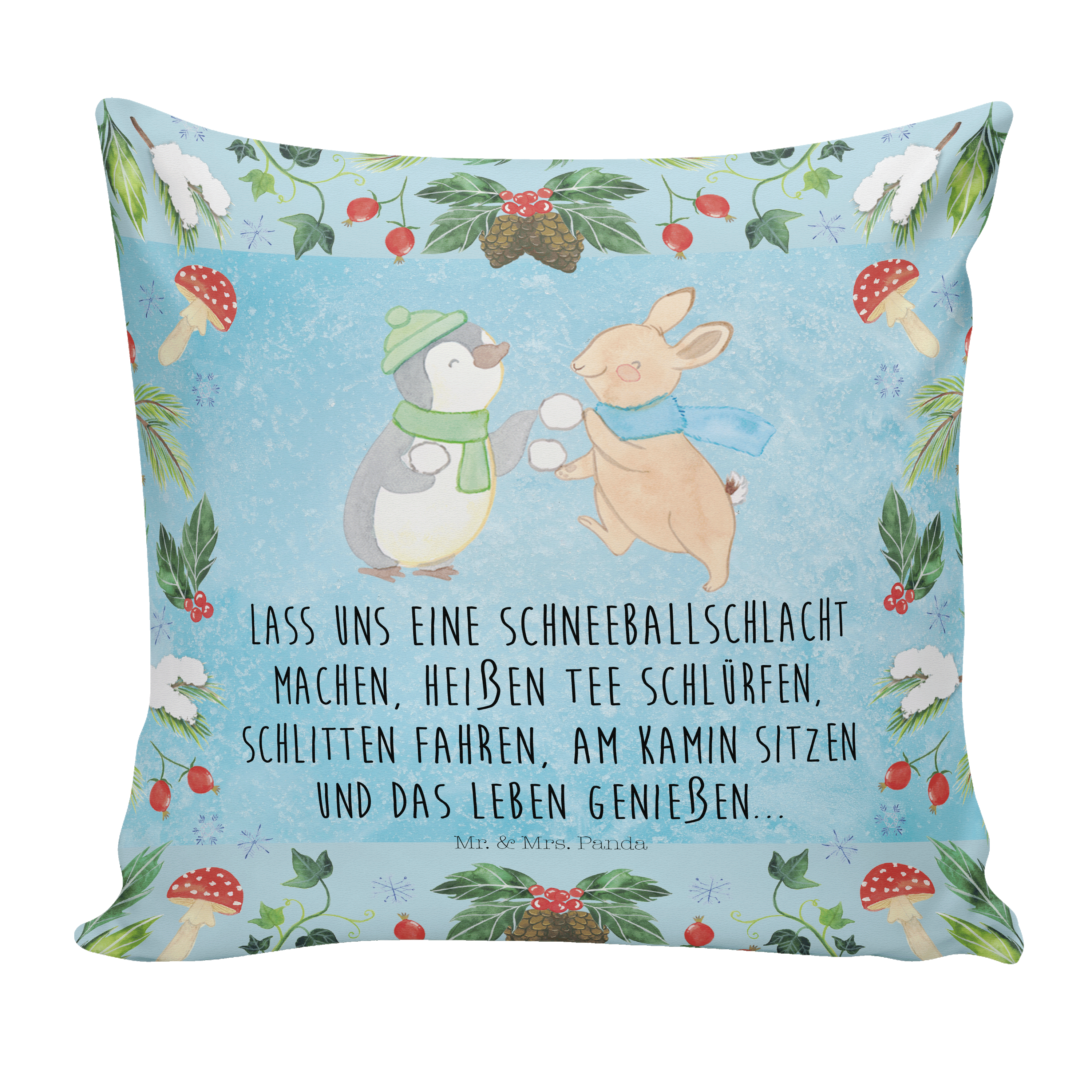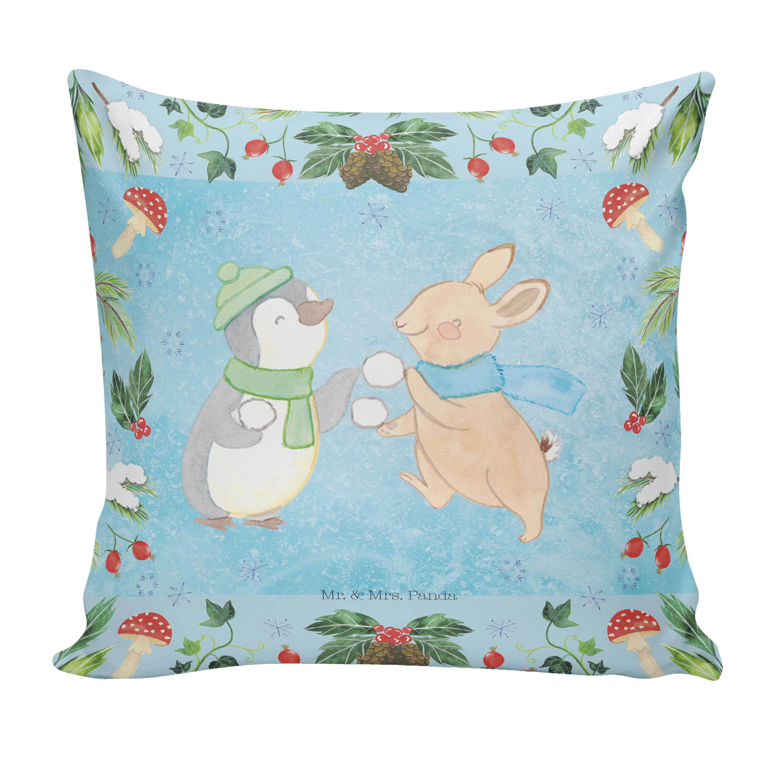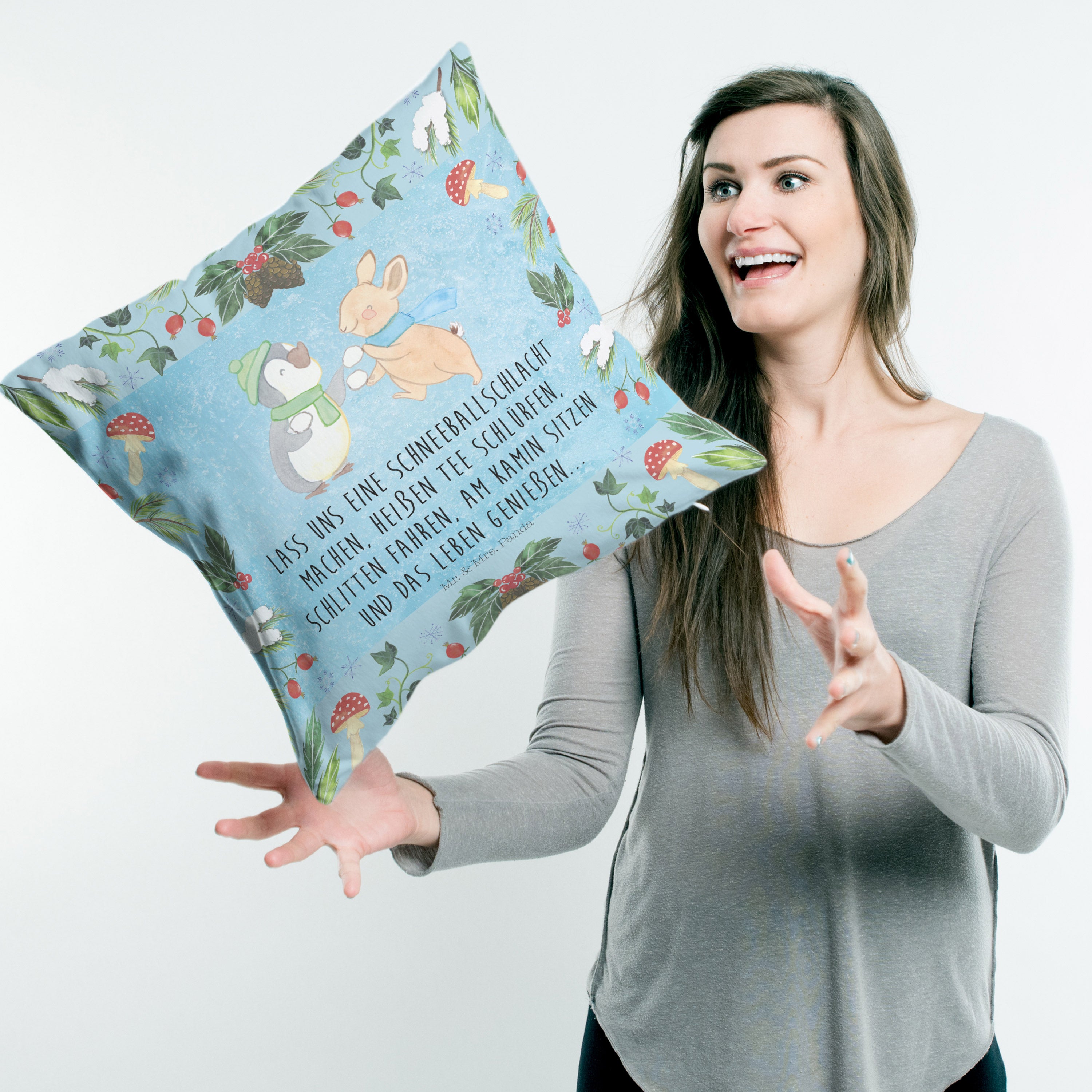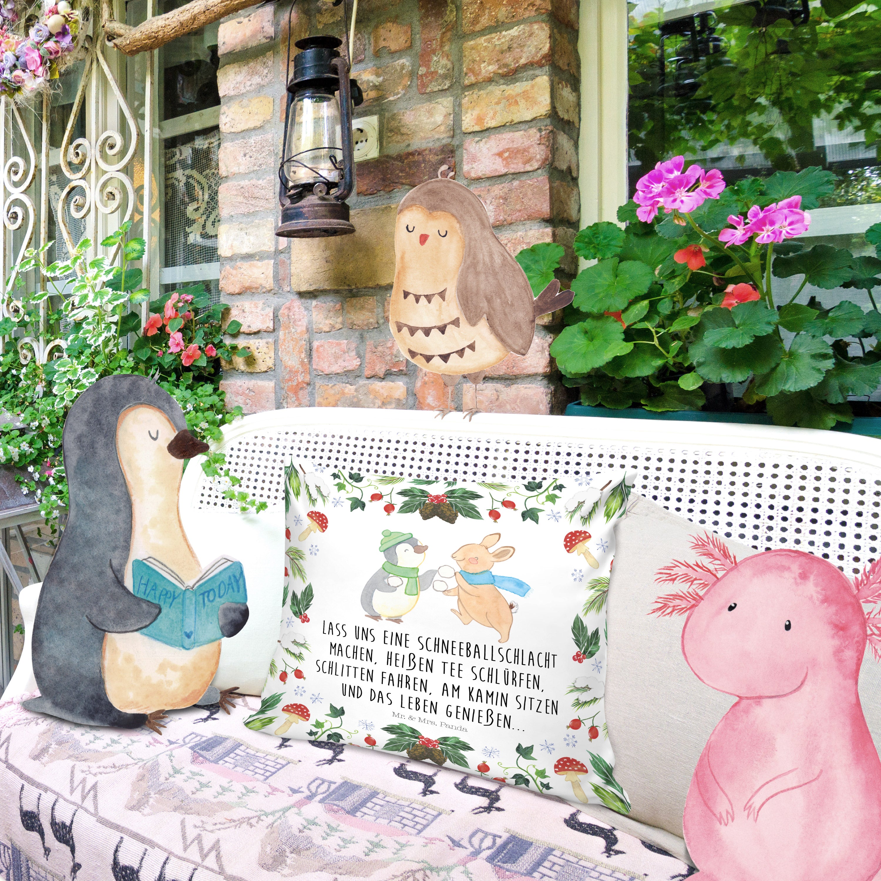 40x40 Kissen Pinguin Hase Schneeballschlacht - mit Spruch - Weiß