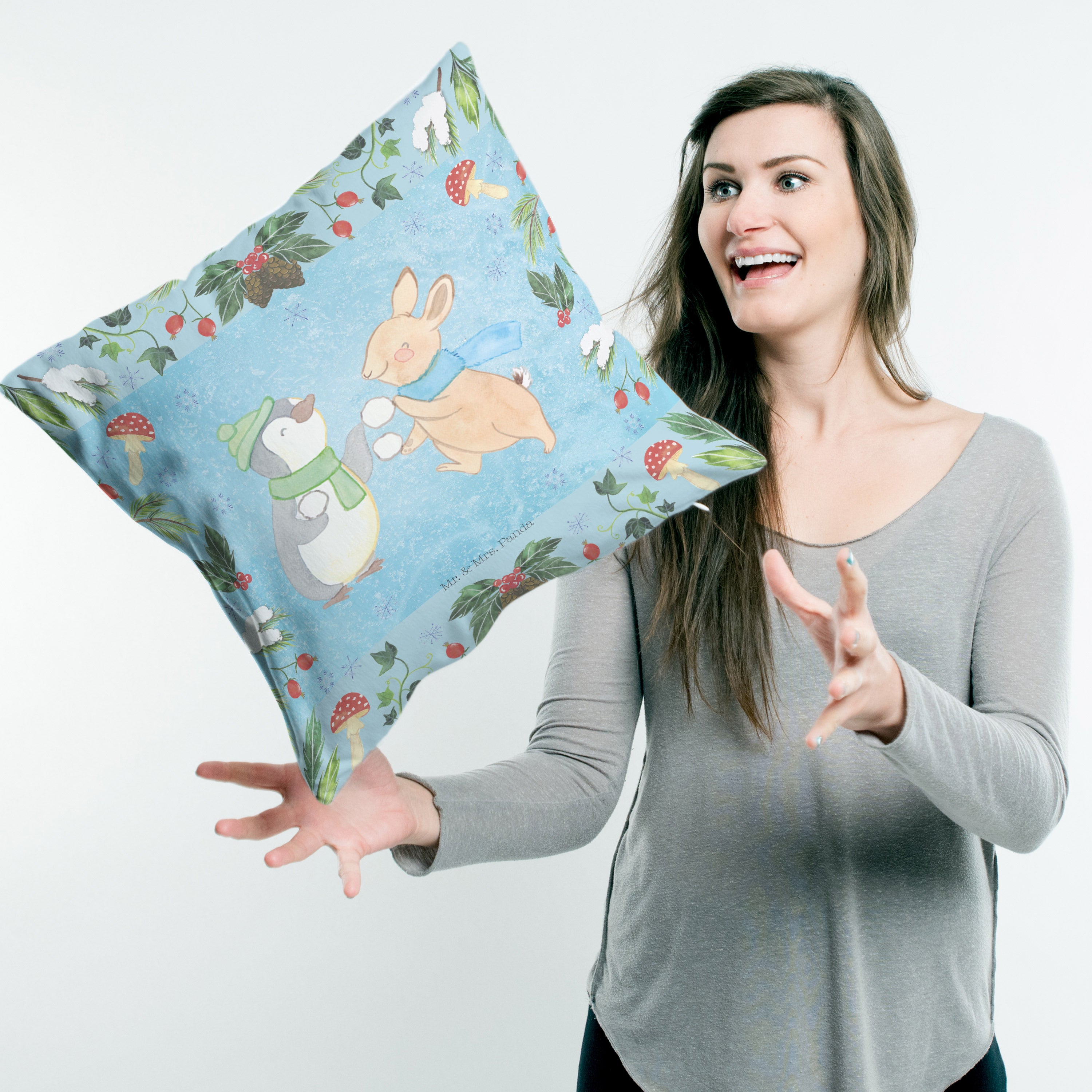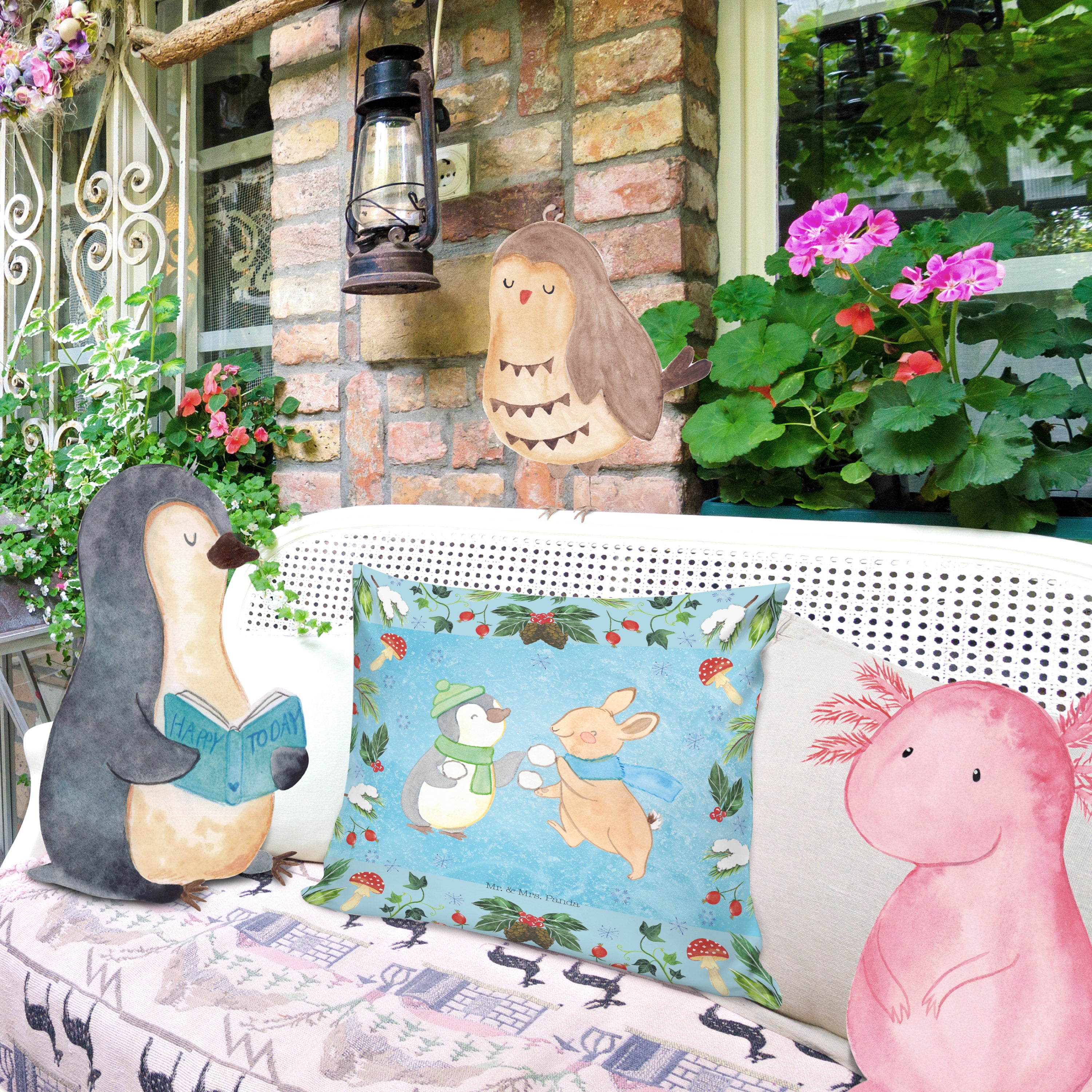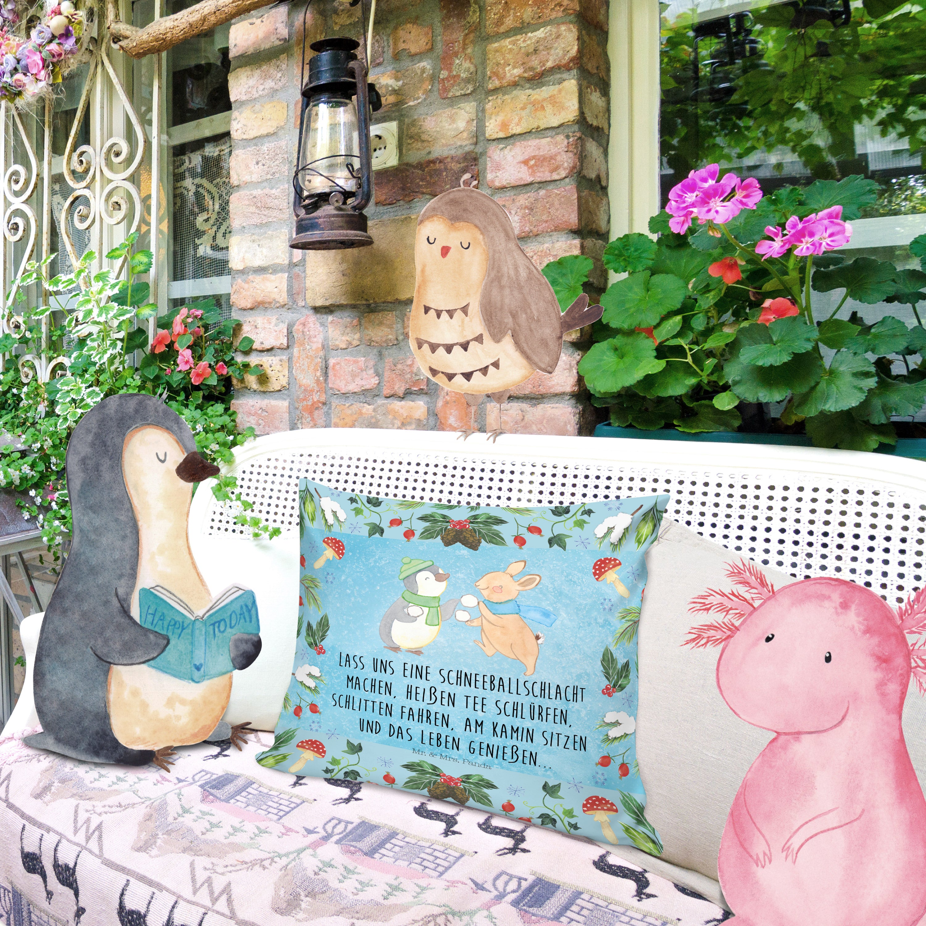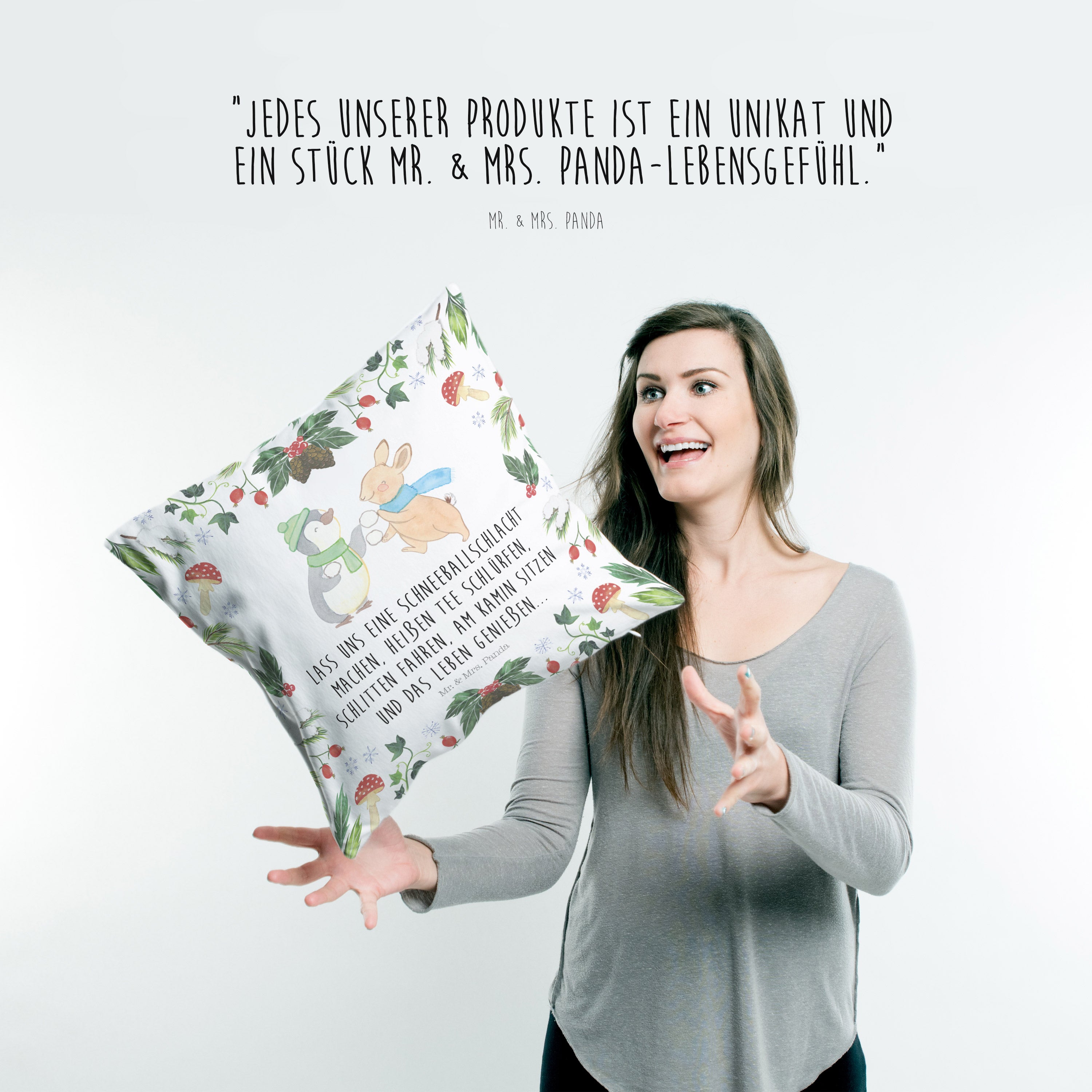 40x40 Kissen Pinguin Hase Schneeballschlacht - mit Spruch - Weiß