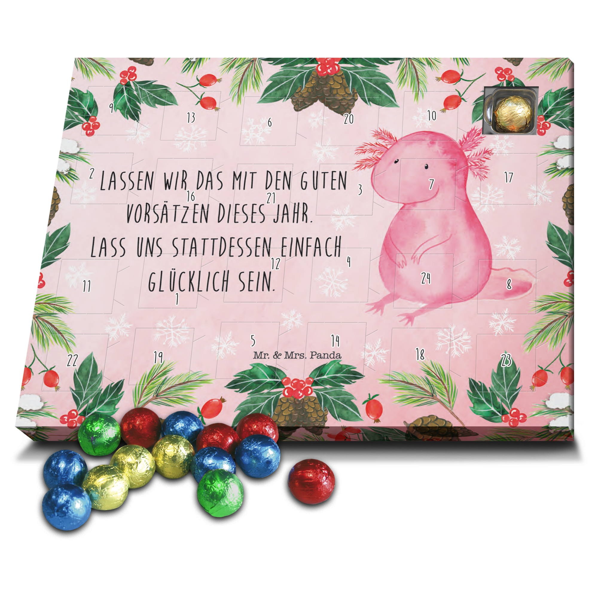 Schoko Adventskalender Axolotl Glücklich Schokoladen Adventskalender, Adventskalender, Schoko Adventskalender, Winter, Weihnachten, Weihnachtsdeko, Nikolaus, Advent, Heiligabend, Wintermotiv