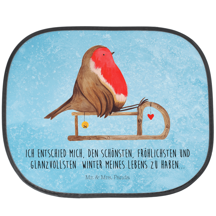 Auto Sonnenschutz Rotkehlchen Schlitten - mit Spruch - Eisblau