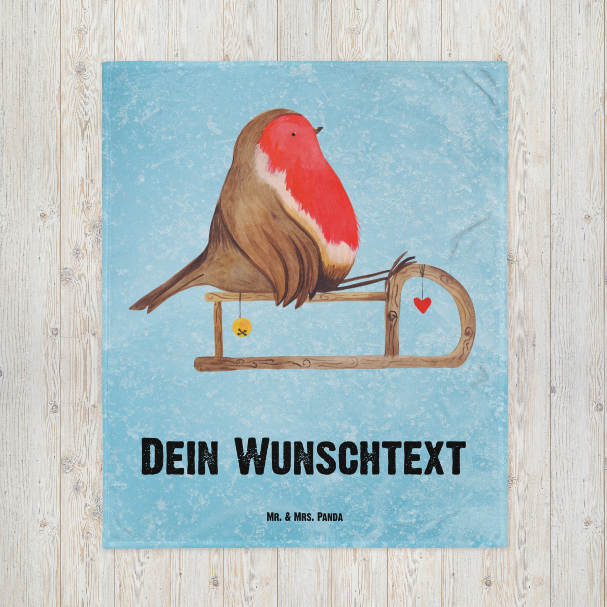 Babydecke mit Namen Rotkehlchen Schlitten Babdyecke personalisiert, Babydecke mit Namen, Babydecke bedrucken, Babygeschenk personalisiet, Babygeschenk mit Namen, Krabbeldecke mit Namen, Krabbeldecke personalisiert, Winter, Weihnachten, Weihnachtsdeko, Nikolaus, Advent, Heiligabend, Wintermotiv, Schlitten, Vogel
