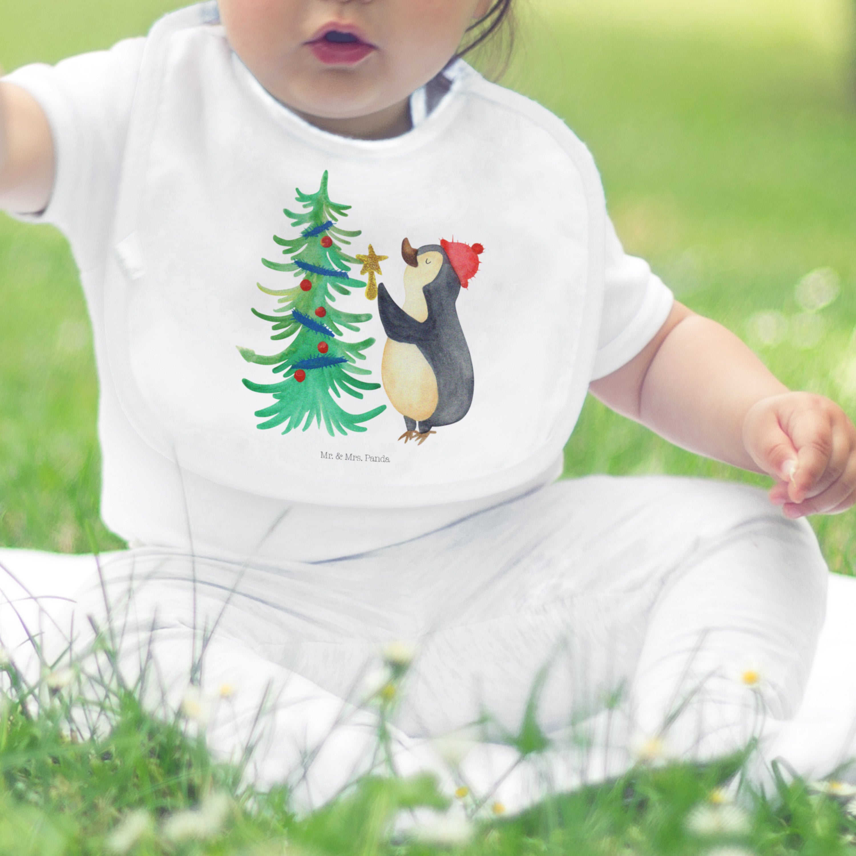 Organic Babylätzchen Pinguin Weihnachtsbaum - mit Spruch