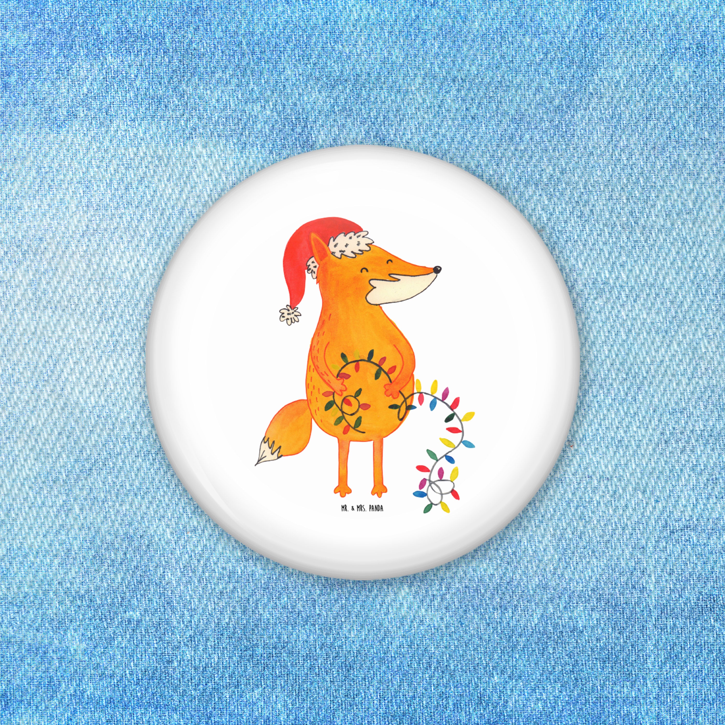 50mm Button Fuchs Weihnachten - mit Spruch - Weiß