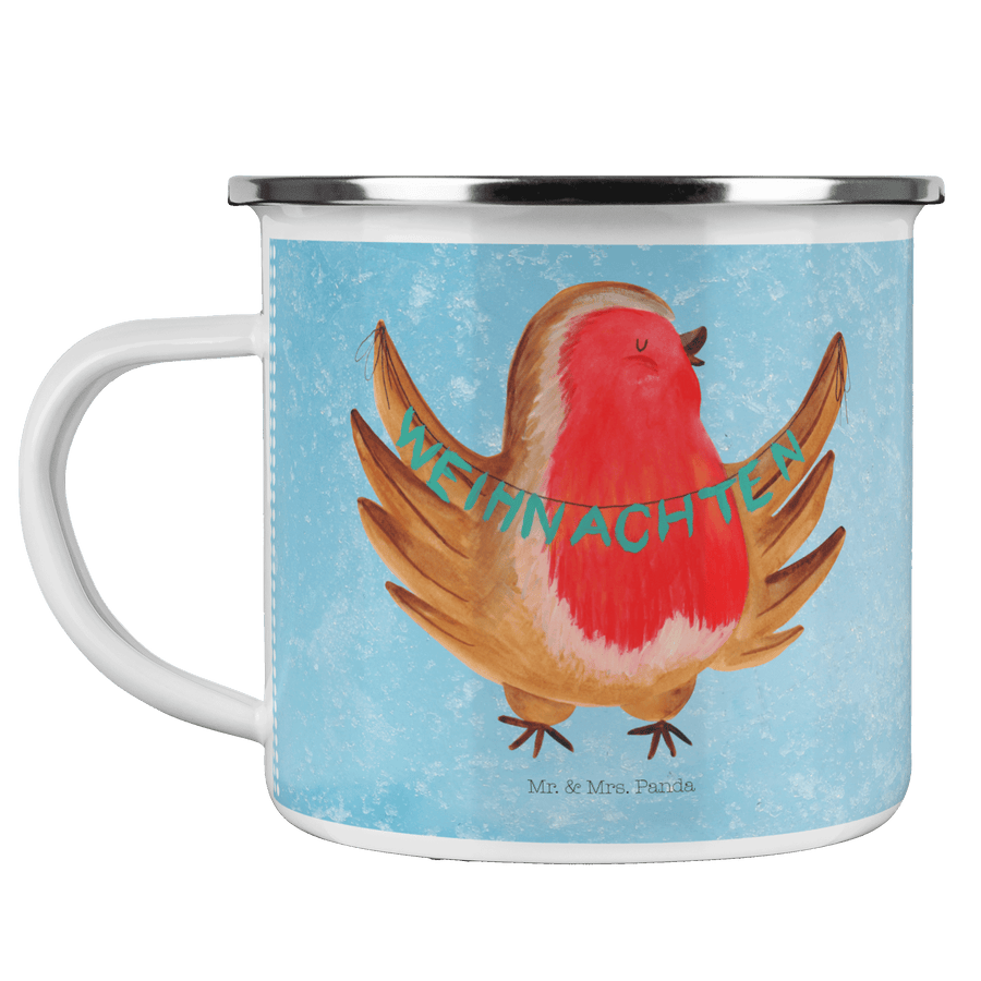 Camping Emaille Tasse Rotkehlchen Weihnachten - ohne Spruch - Eisblau