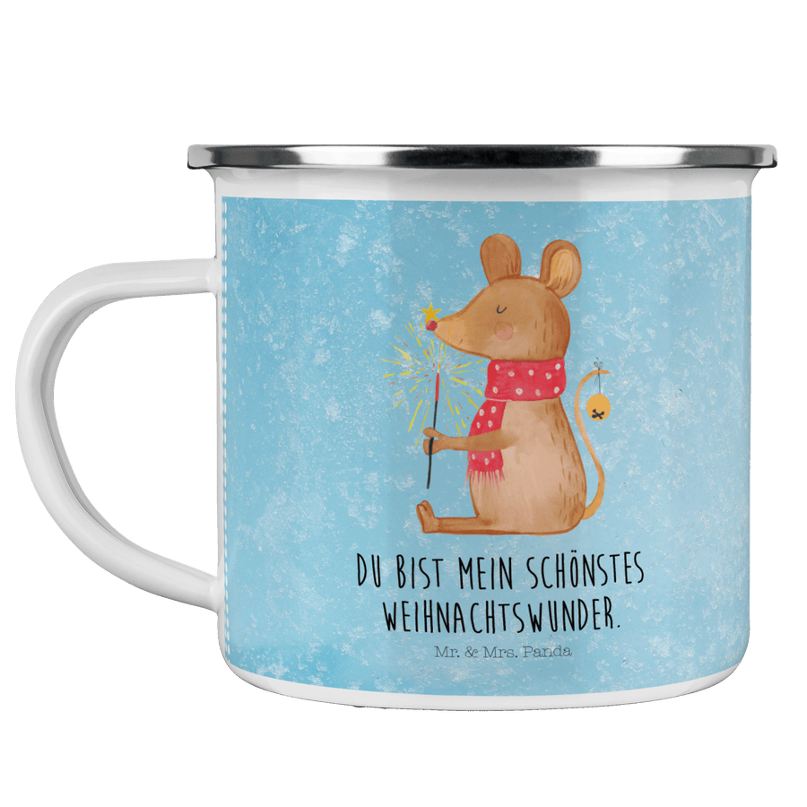 Camping Emaille Tasse Weihnachtsmaus - mit Spruch - Eisblau