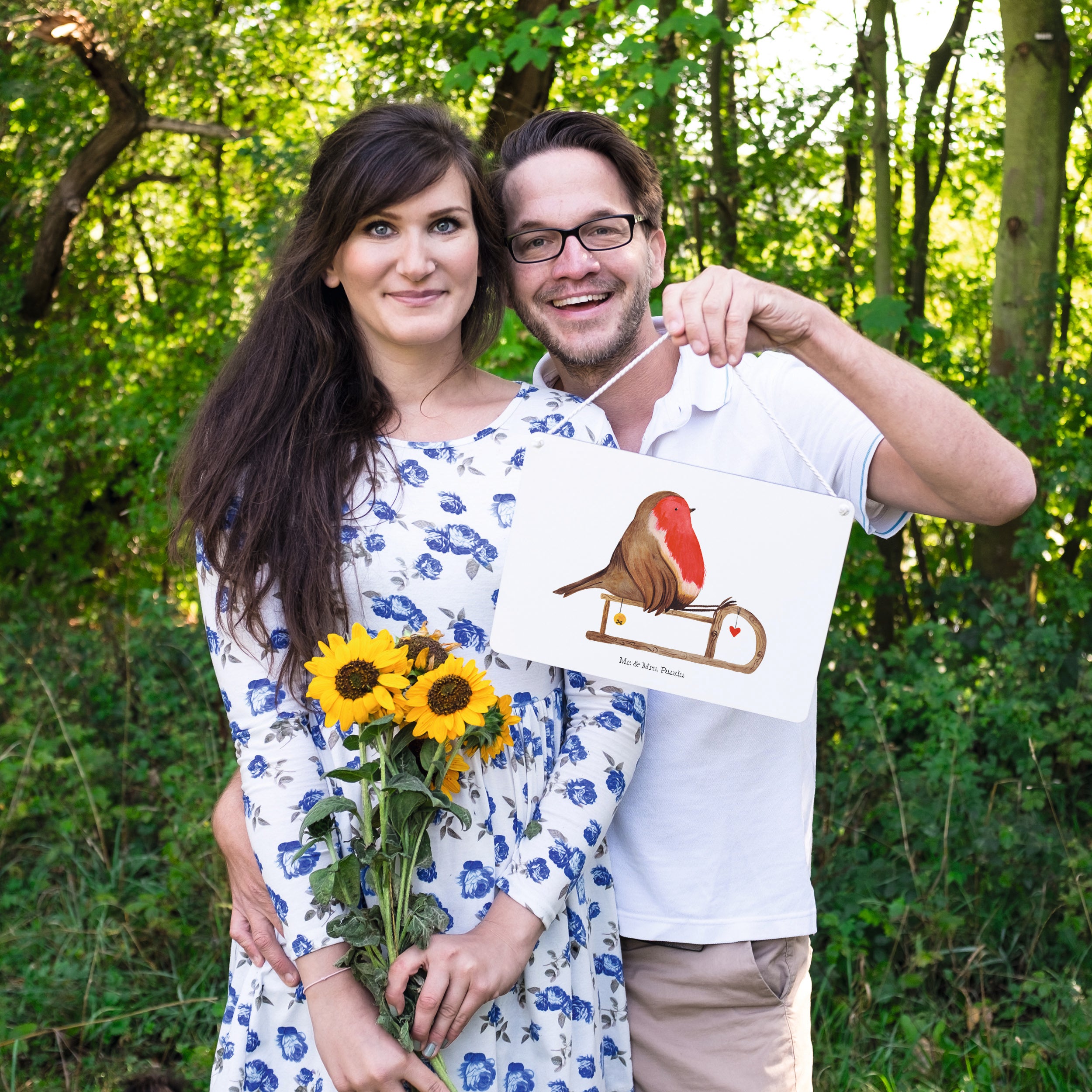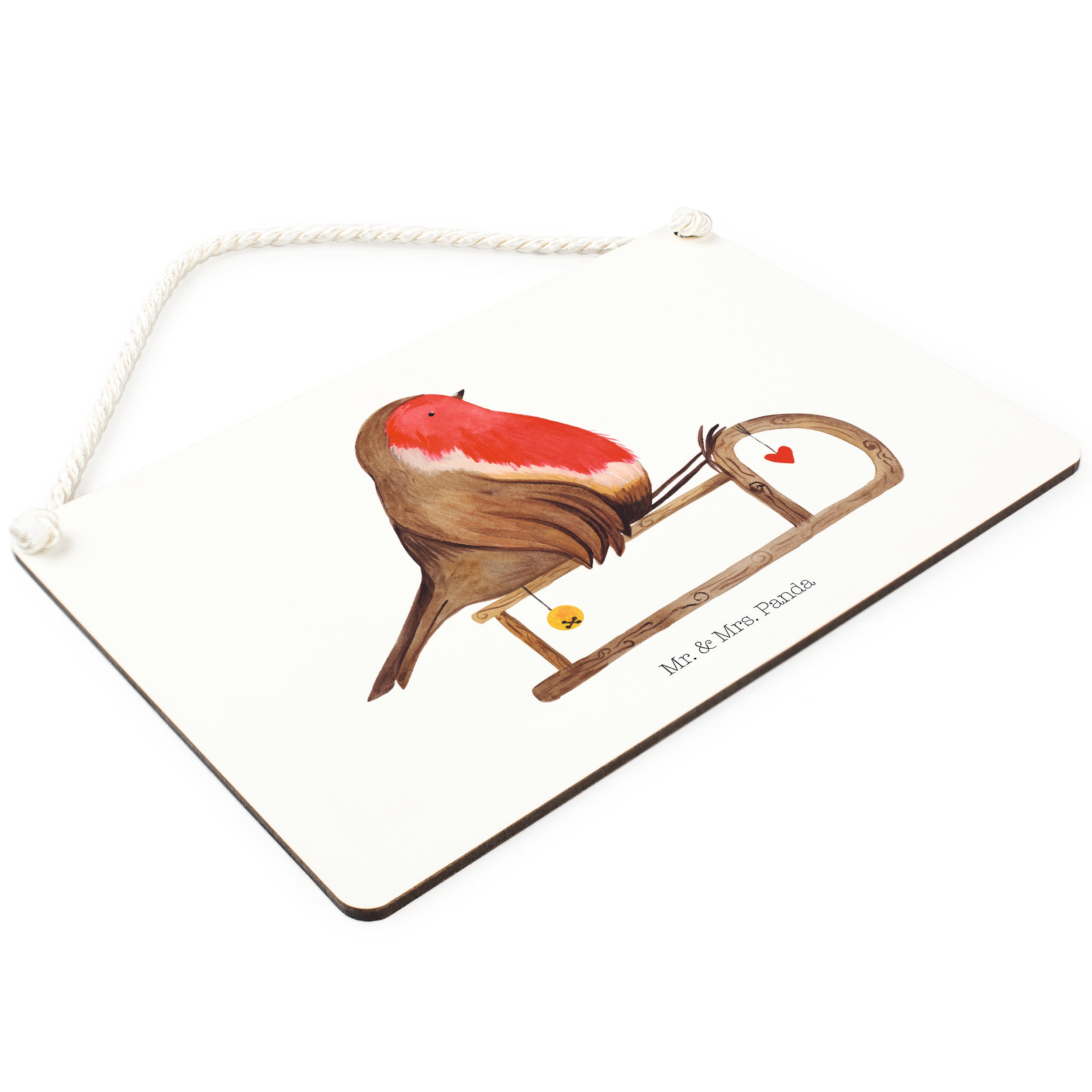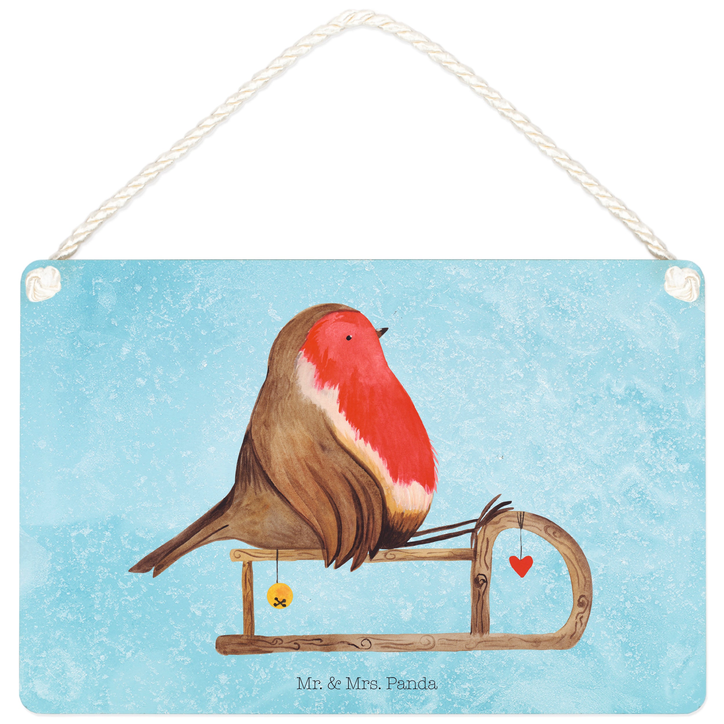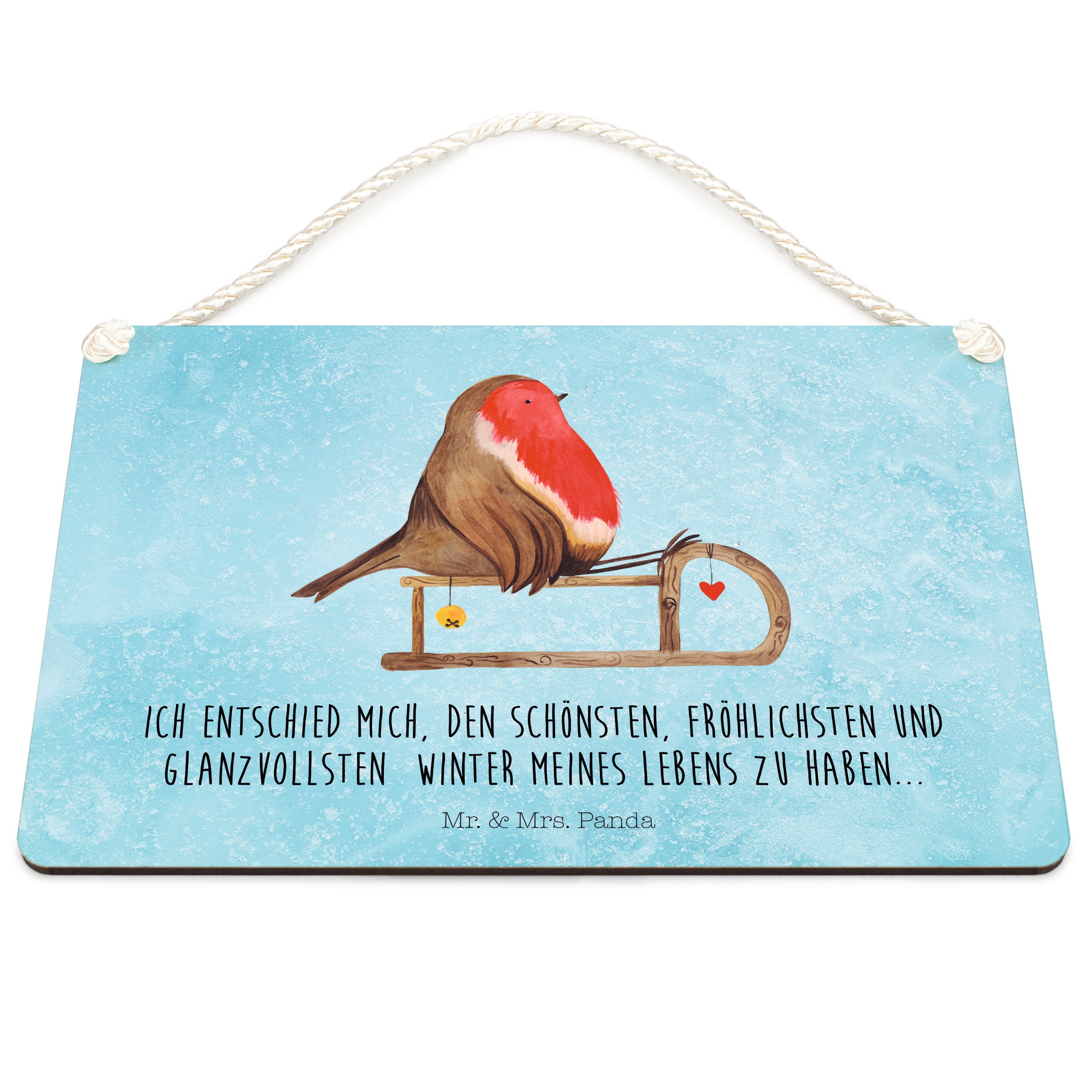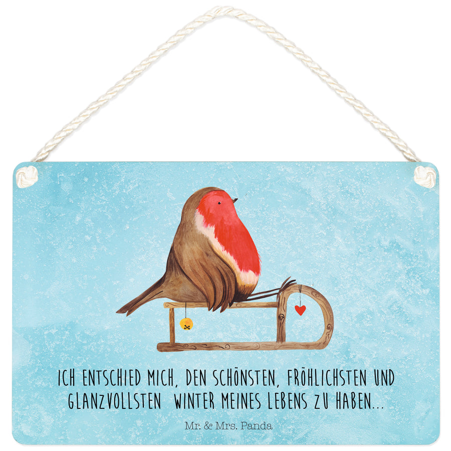Deko Schild Rotkehlchen Schlitten - mit Spruch - Eisblau