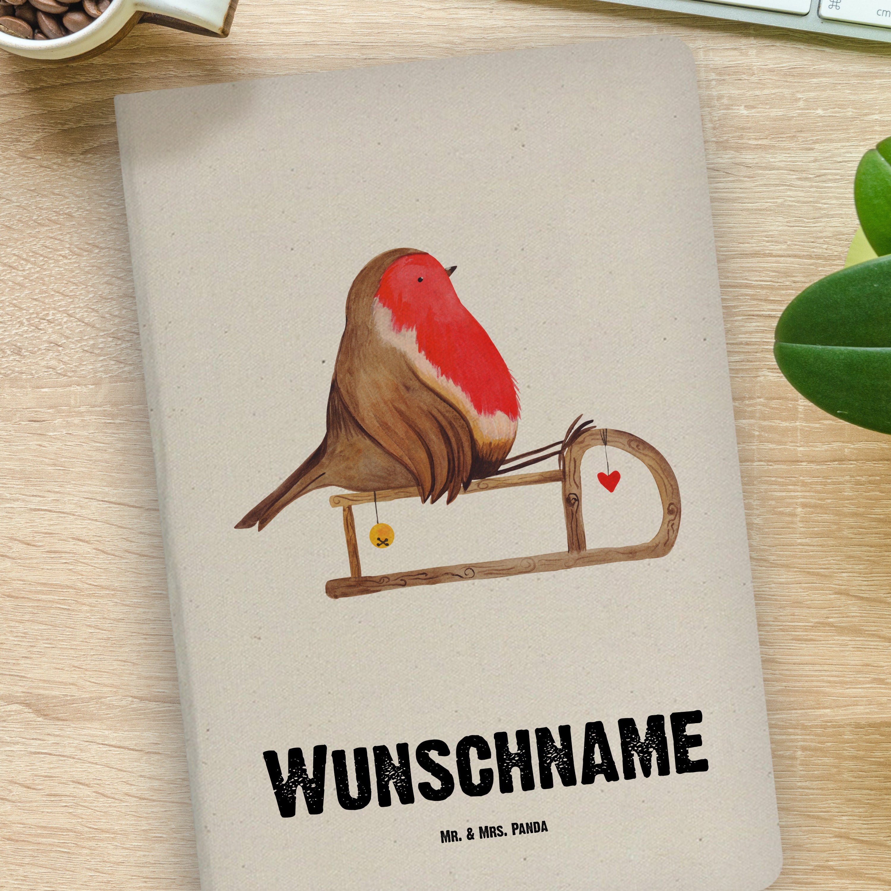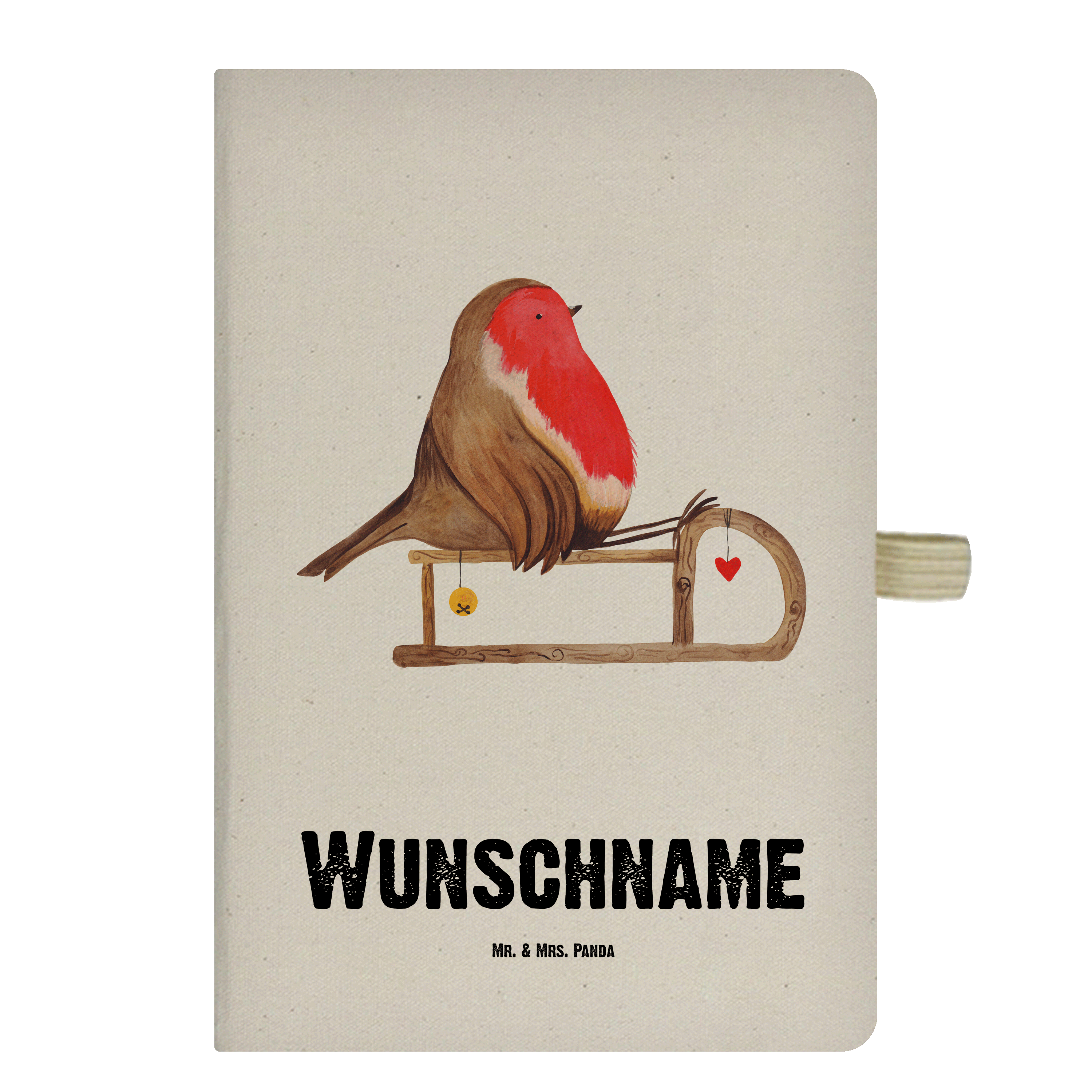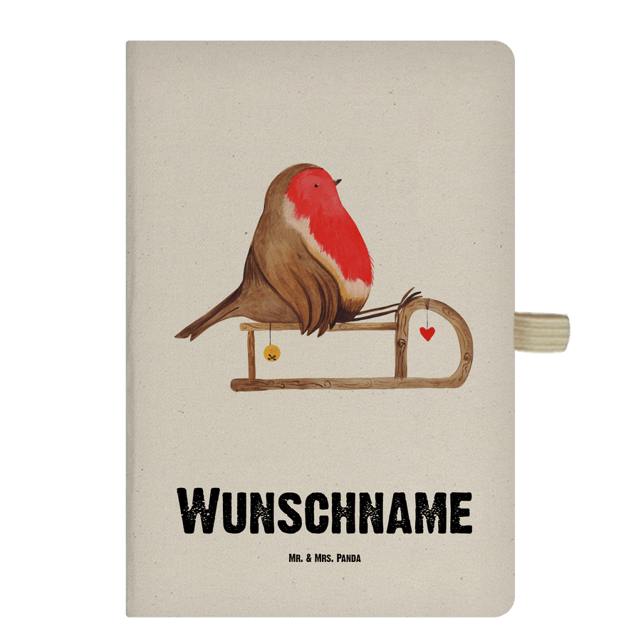 DIN A4 Personalisiertes Notizbuch Rotkehlchen Schlitten