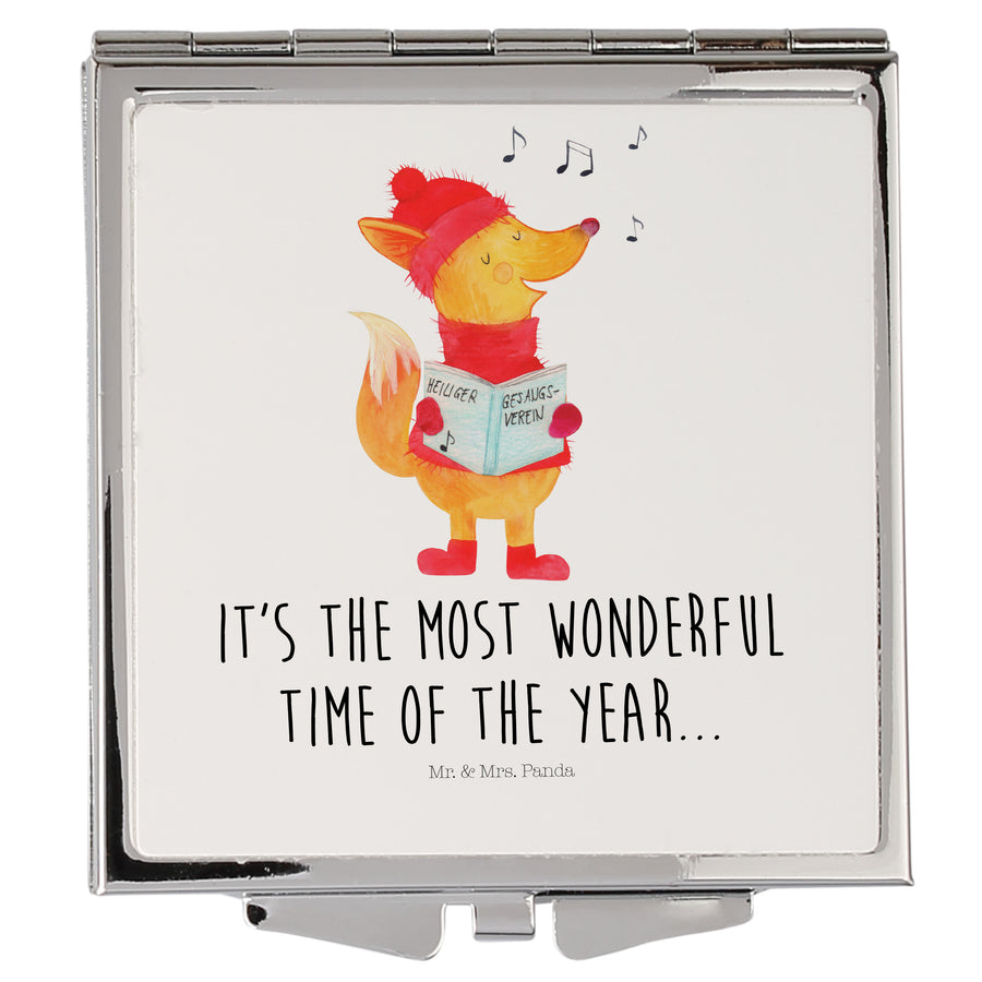 Handtaschenspiegel quadratisch Fuchs Sänger - mit Spruch - Weiß