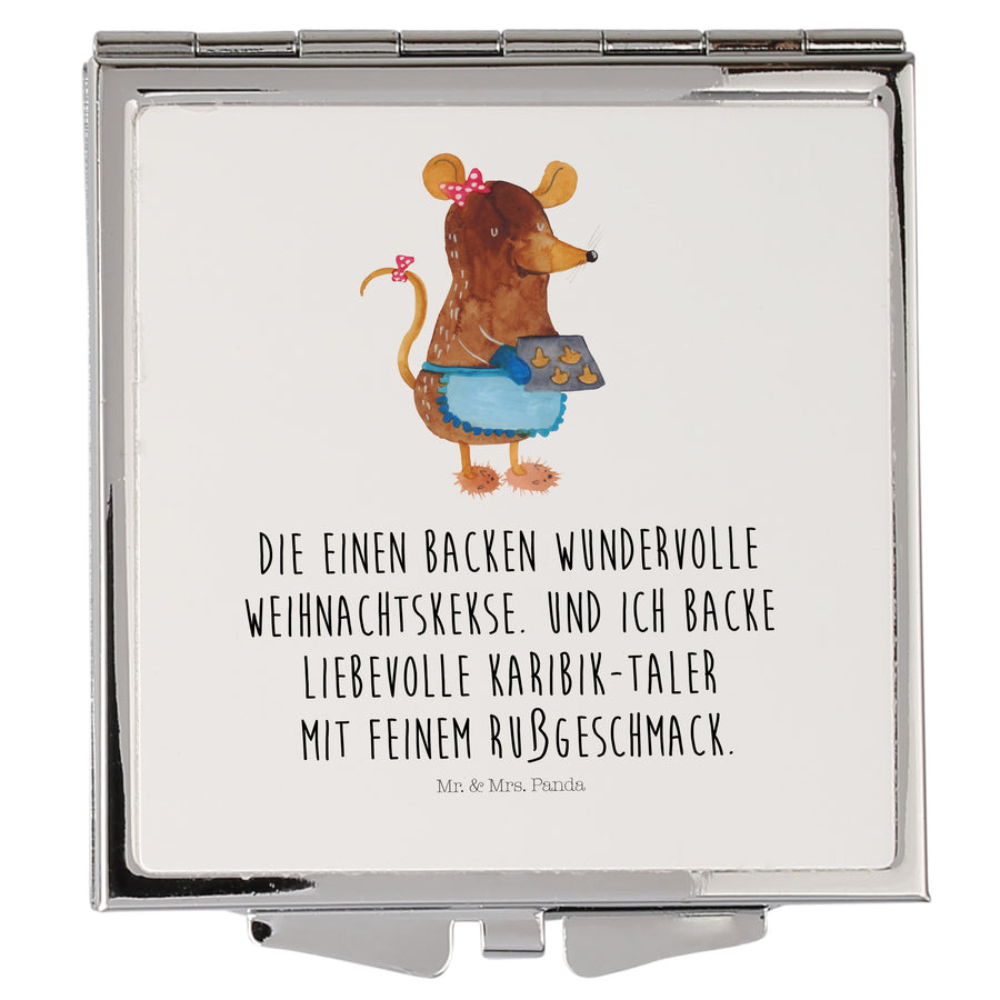 Handtaschenspiegel quadratisch Maus Kekse - mit Spruch - Weiß