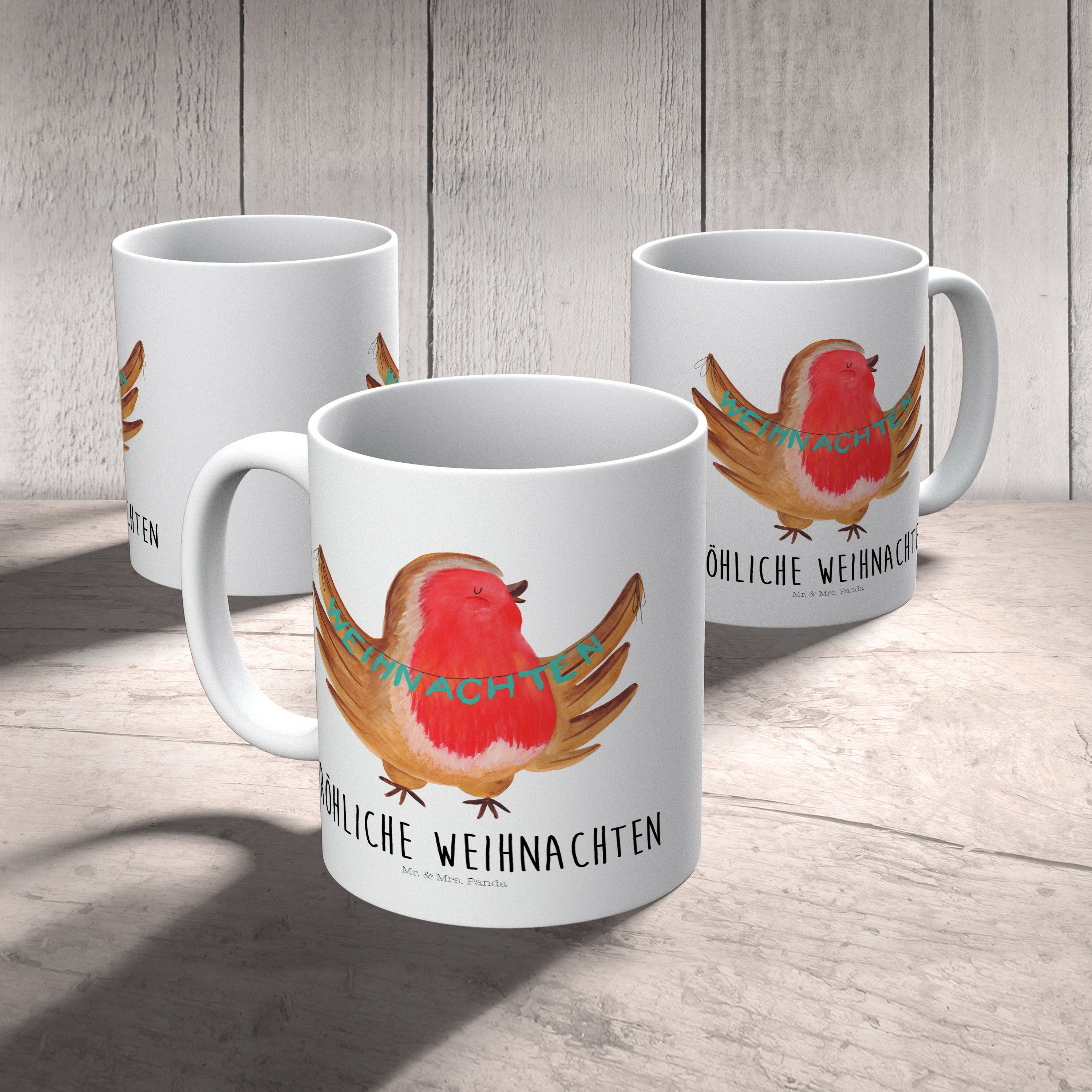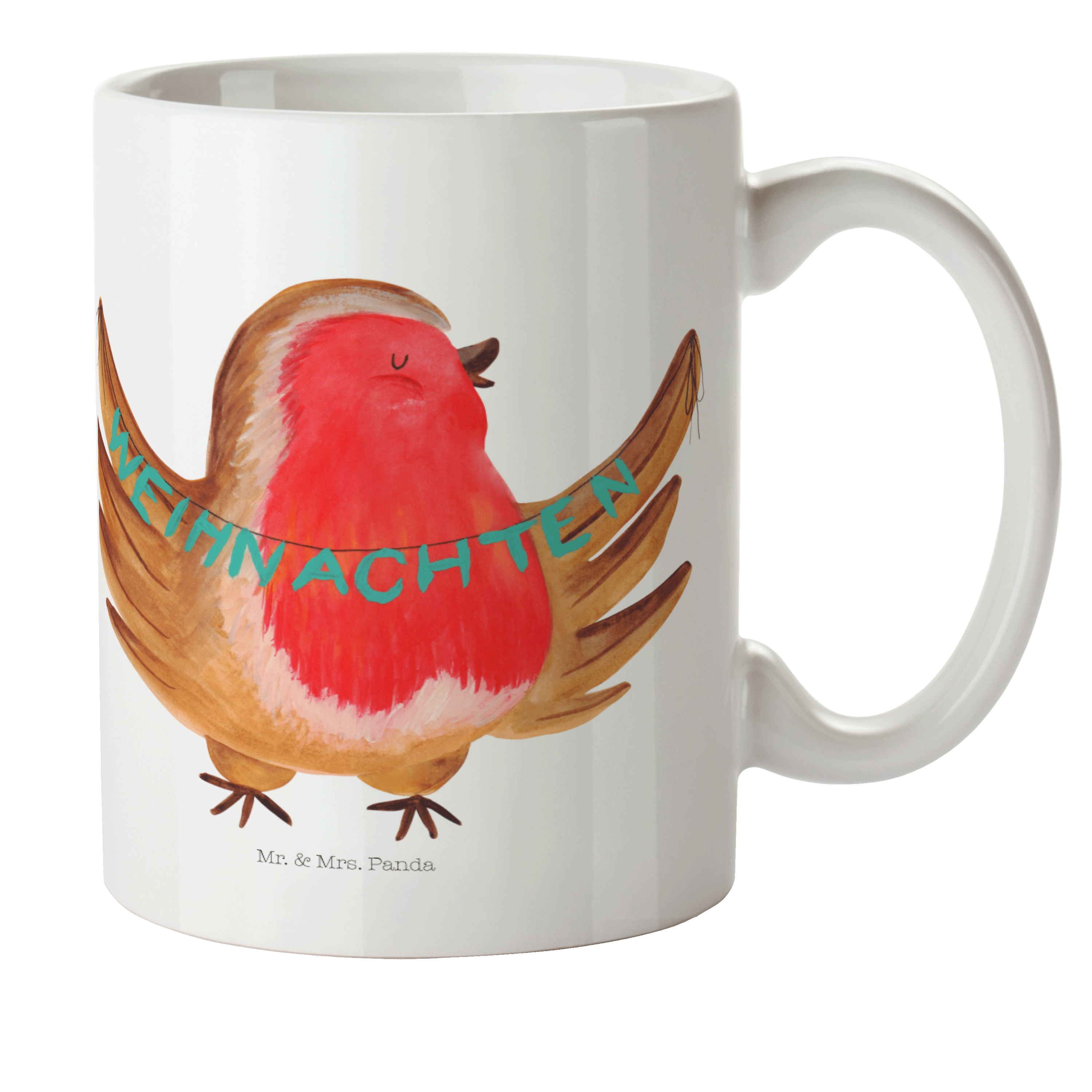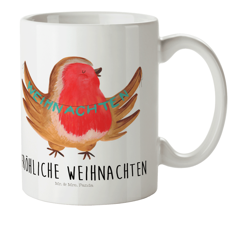 Kindertasse Rotkehlchen Weihnachten - mit Spruch - Weiß