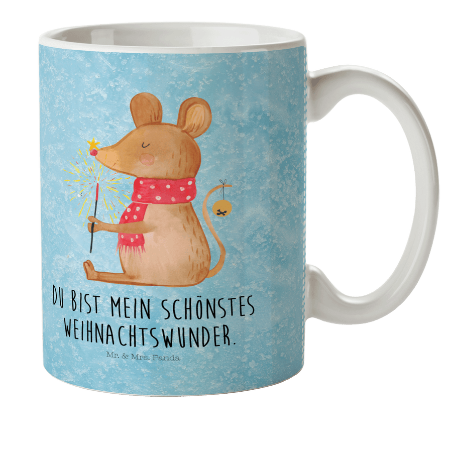 Kindertasse Weihnachtsmaus - mit Spruch - Eisblau