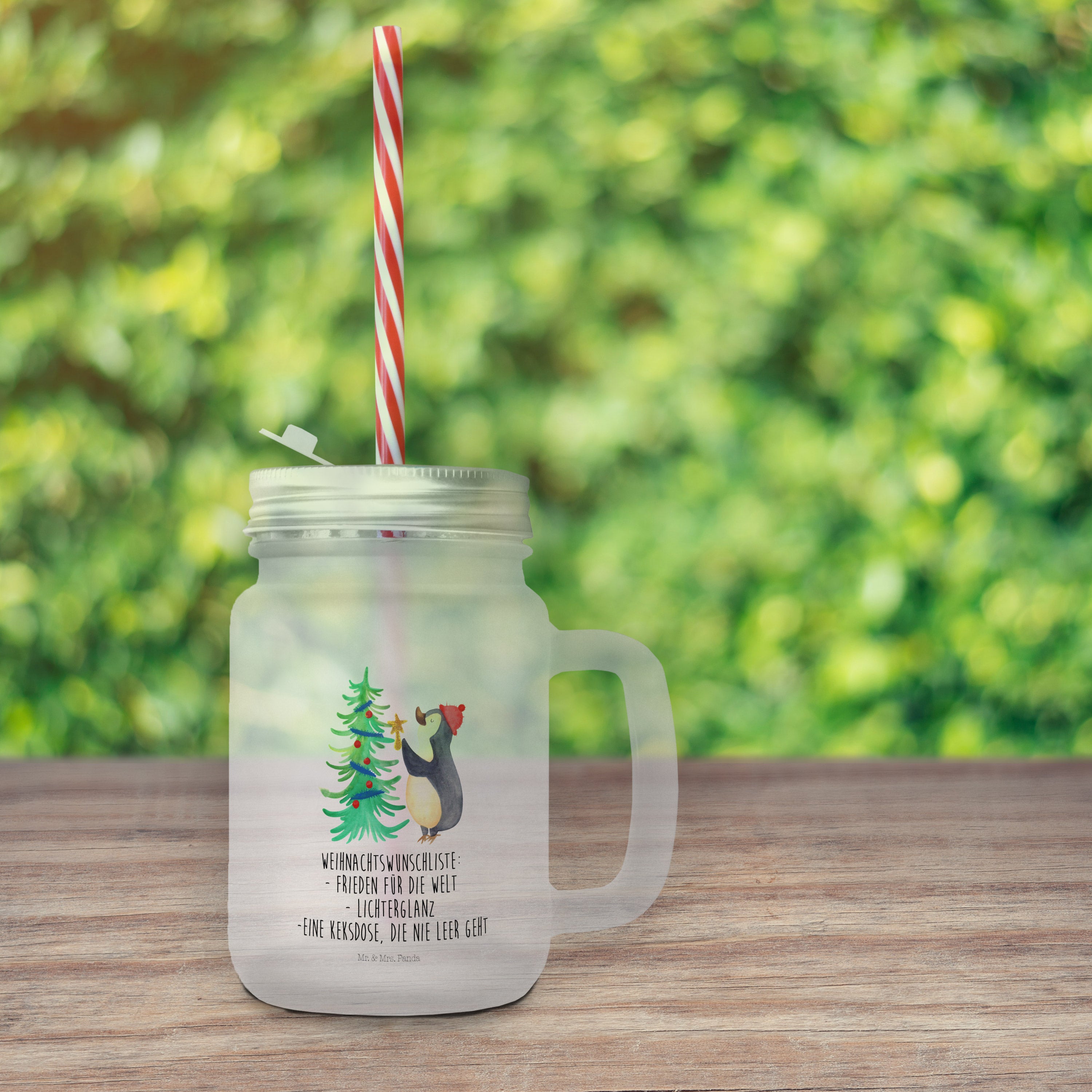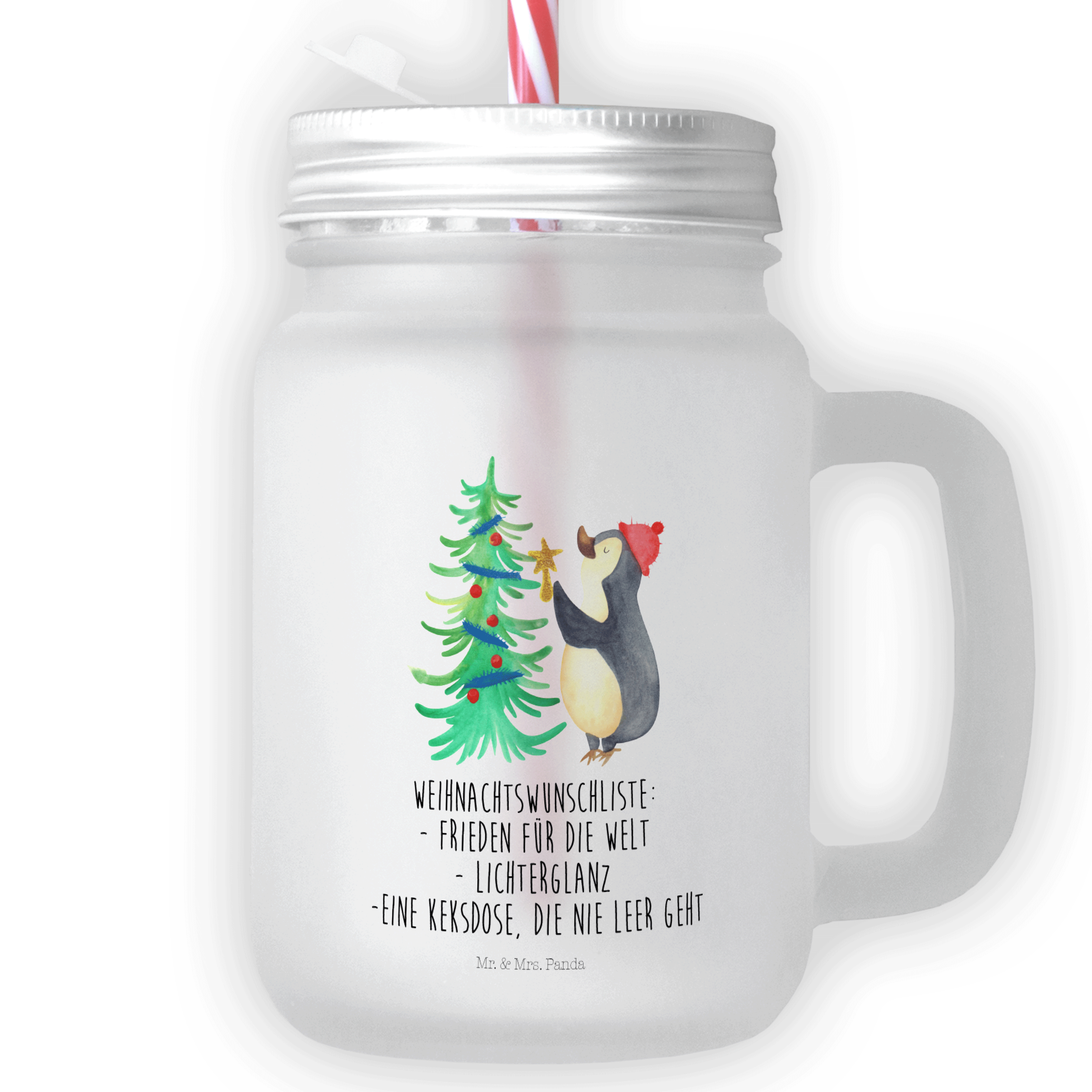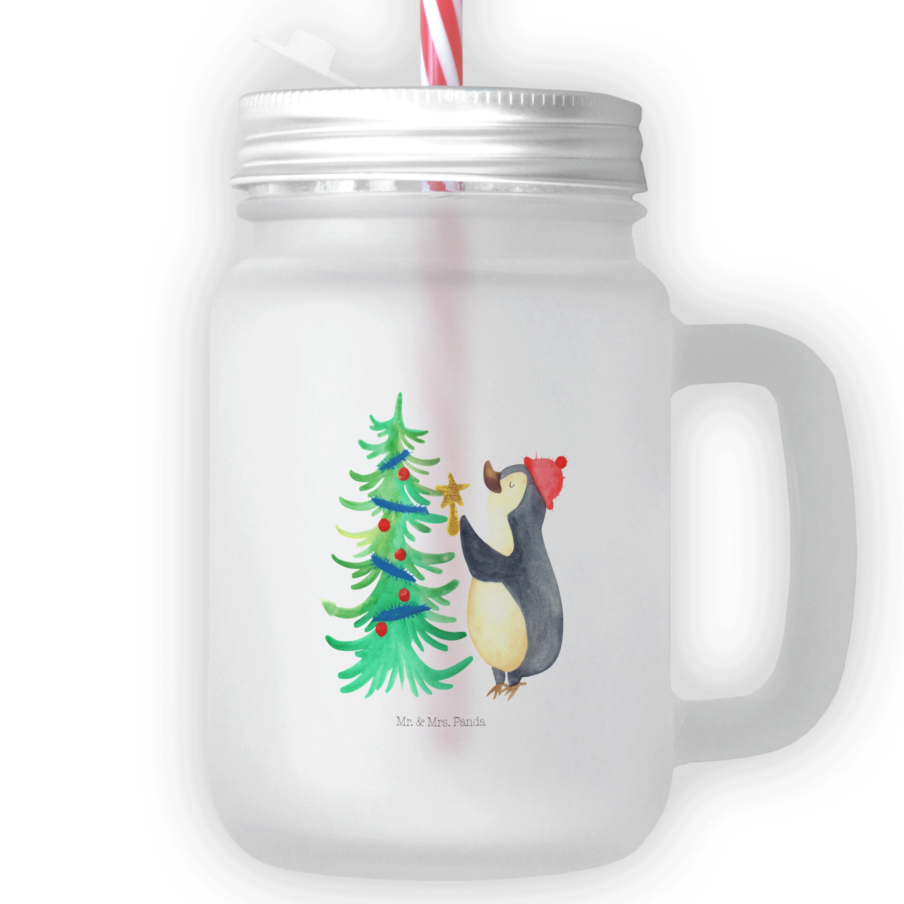 Trinkglas Mason Jar Pinguin Weihnachtsbaum - mit Spruch