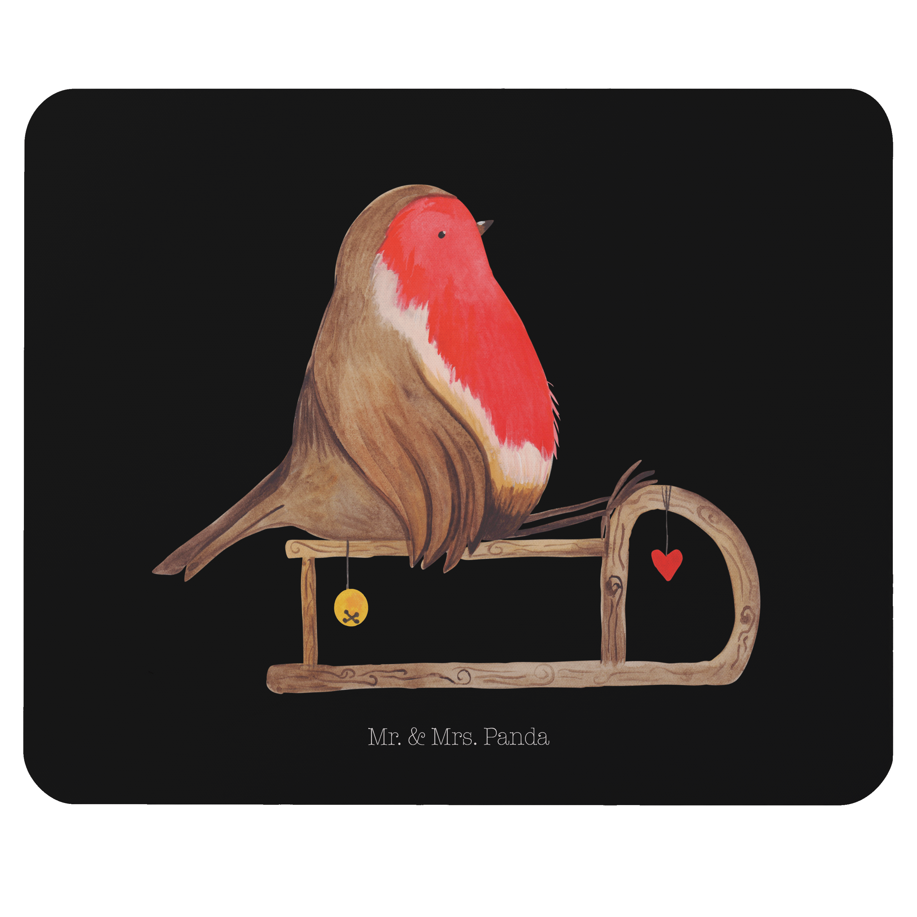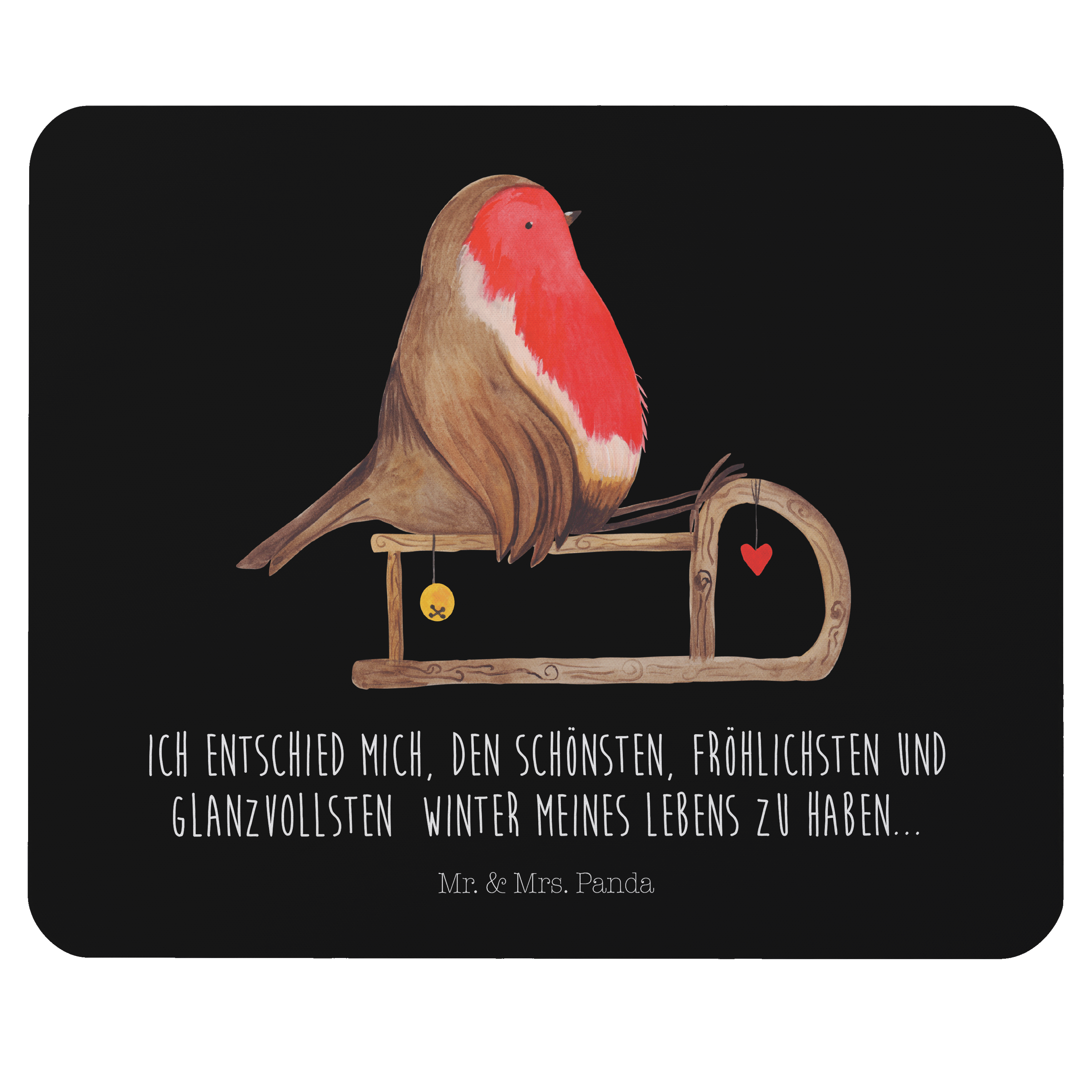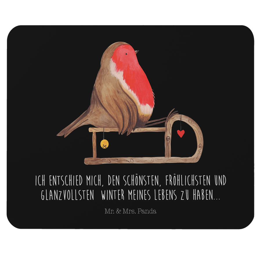 Mauspad Rotkehlchen Schlitten - mit Spruch - Schwarz