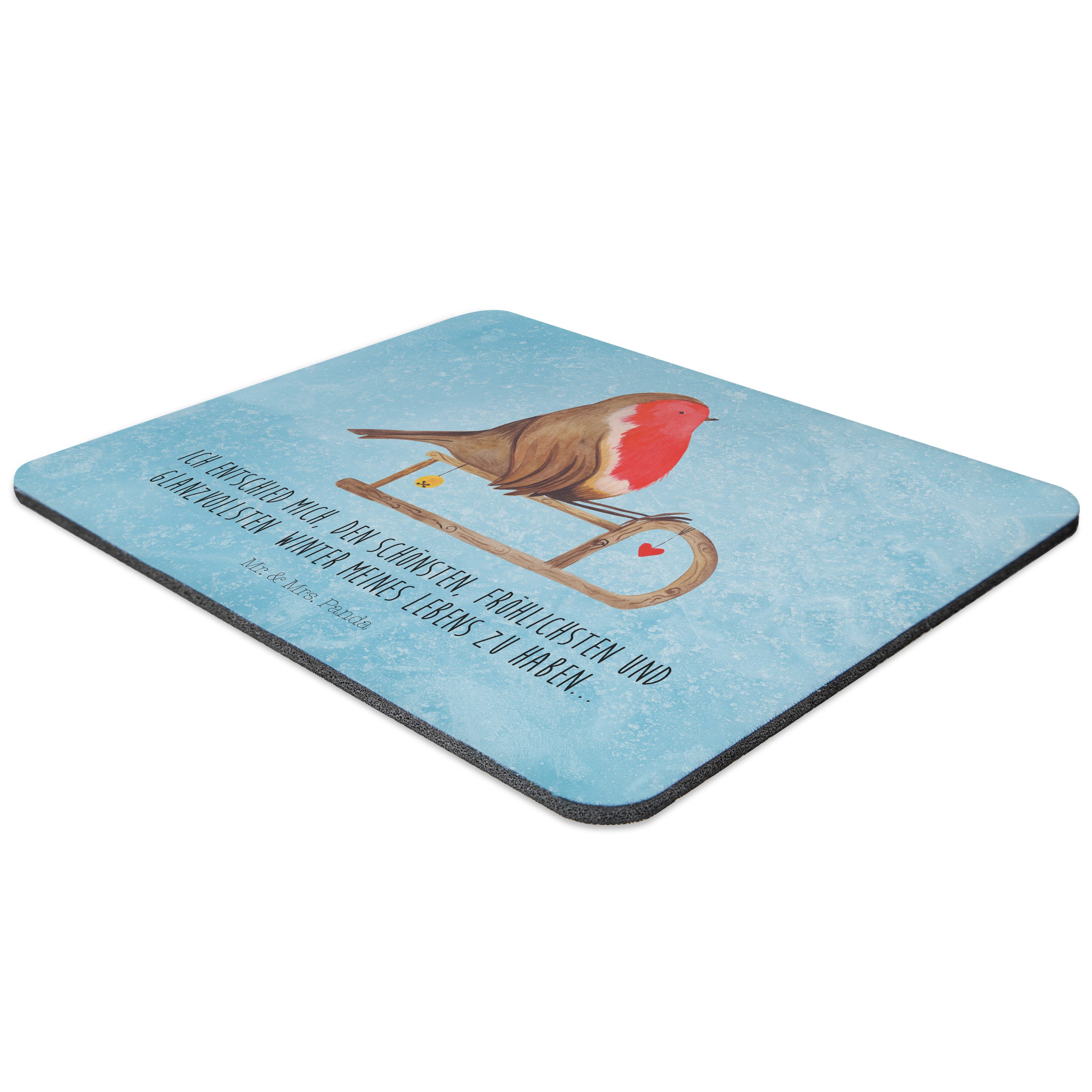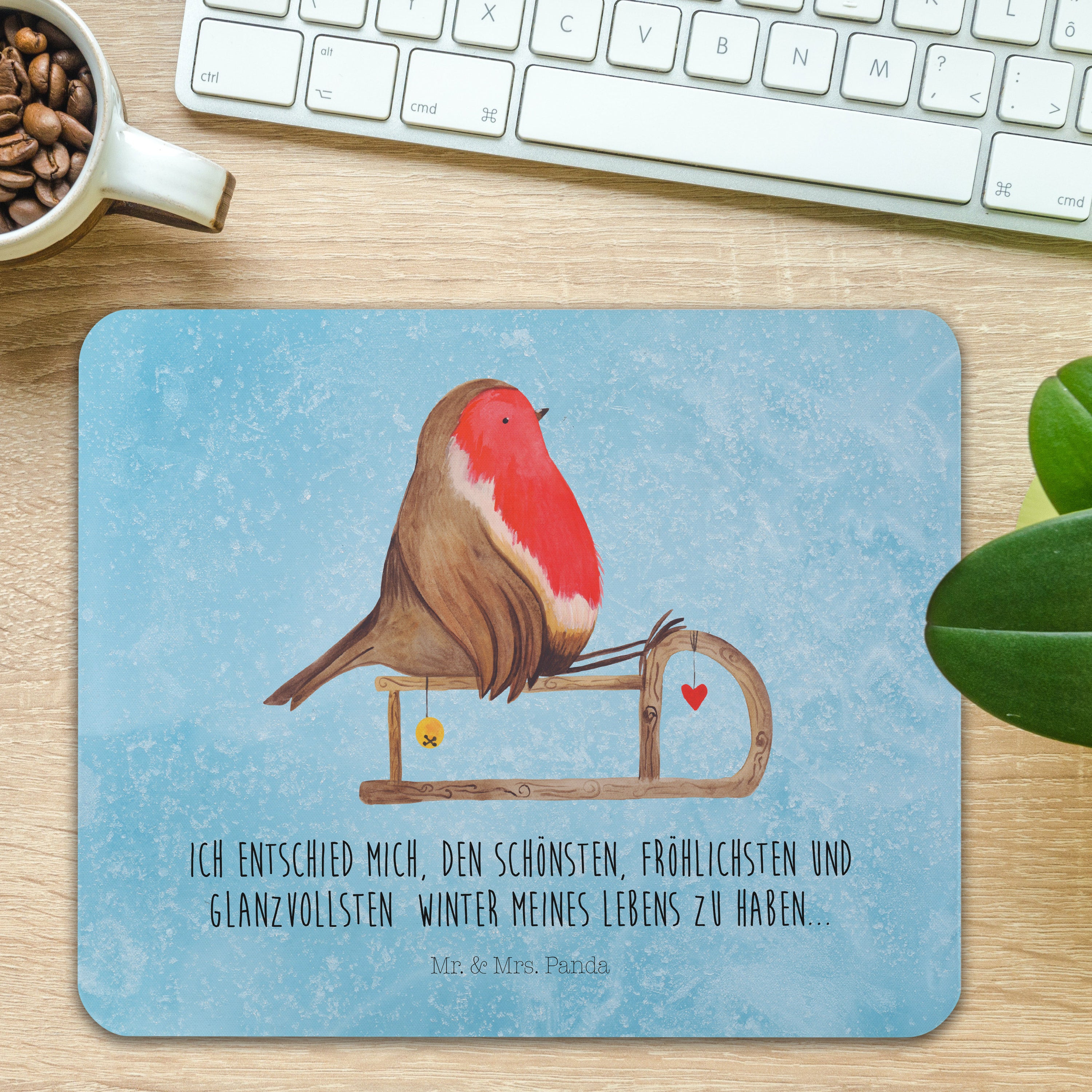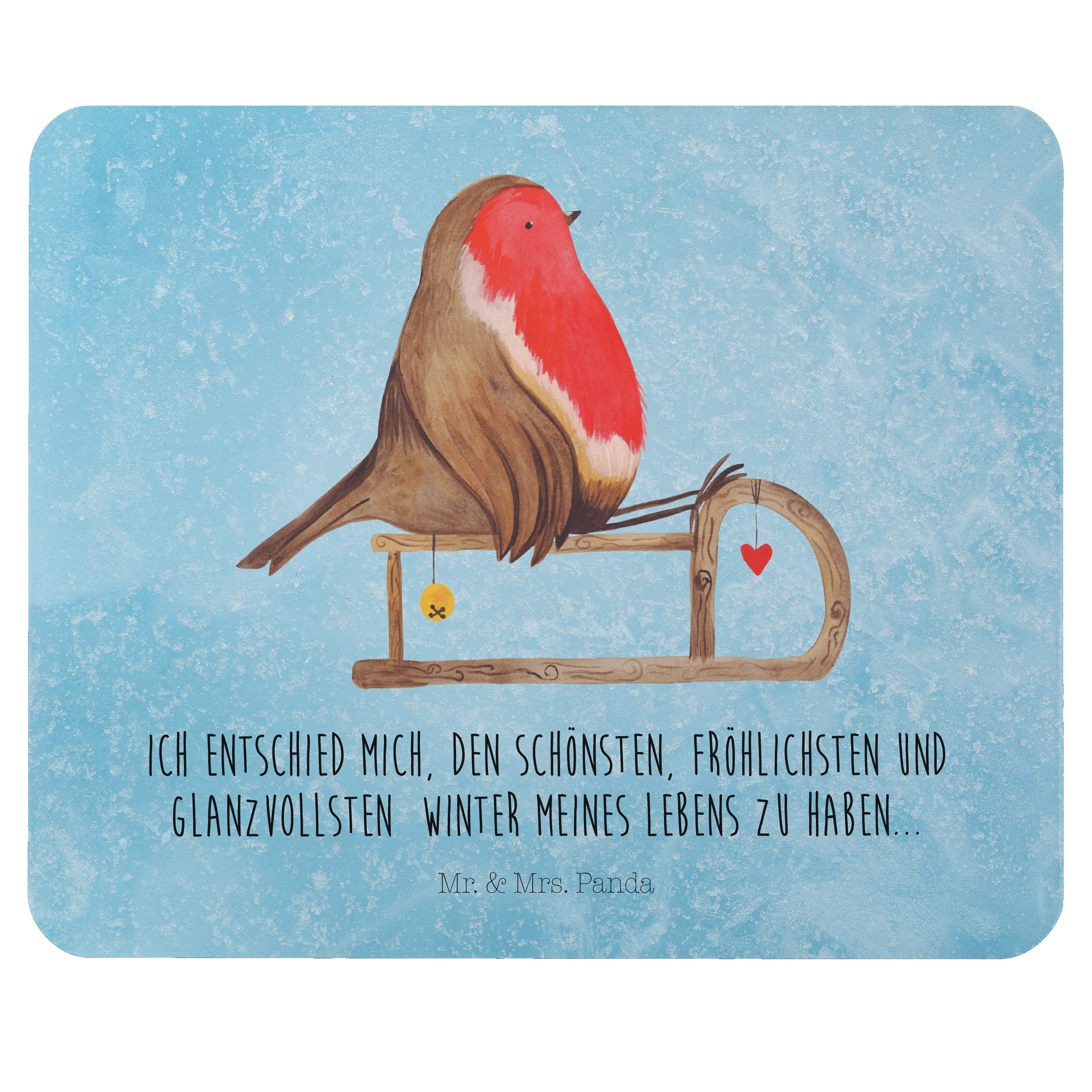 Mauspad Rotkehlchen Schlitten - mit Spruch - Schwarz