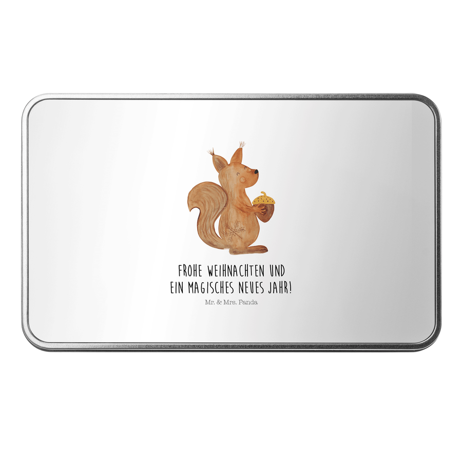 Metalldose rechteckig Eichhörnchen Weihnachtszeit - mit Spruch - Weiß