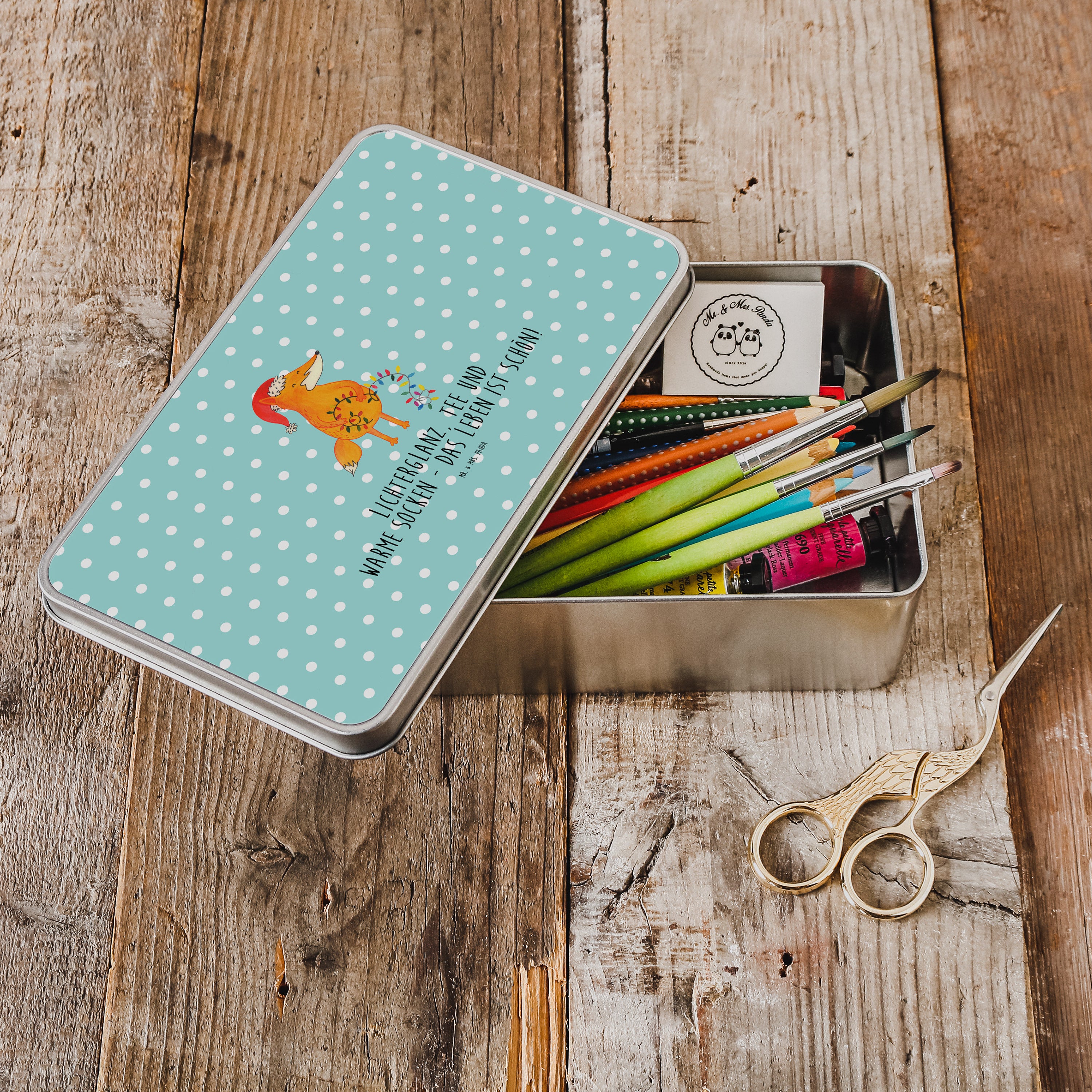 Metalldose rechteckig Fuchs Weihnachten - mit Spruch - Türkis Pastell