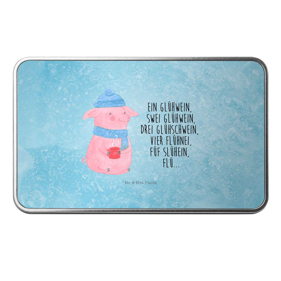 Metalldose rechteckig Lallelndes Glühschwein - mit Spruch - Eisblau