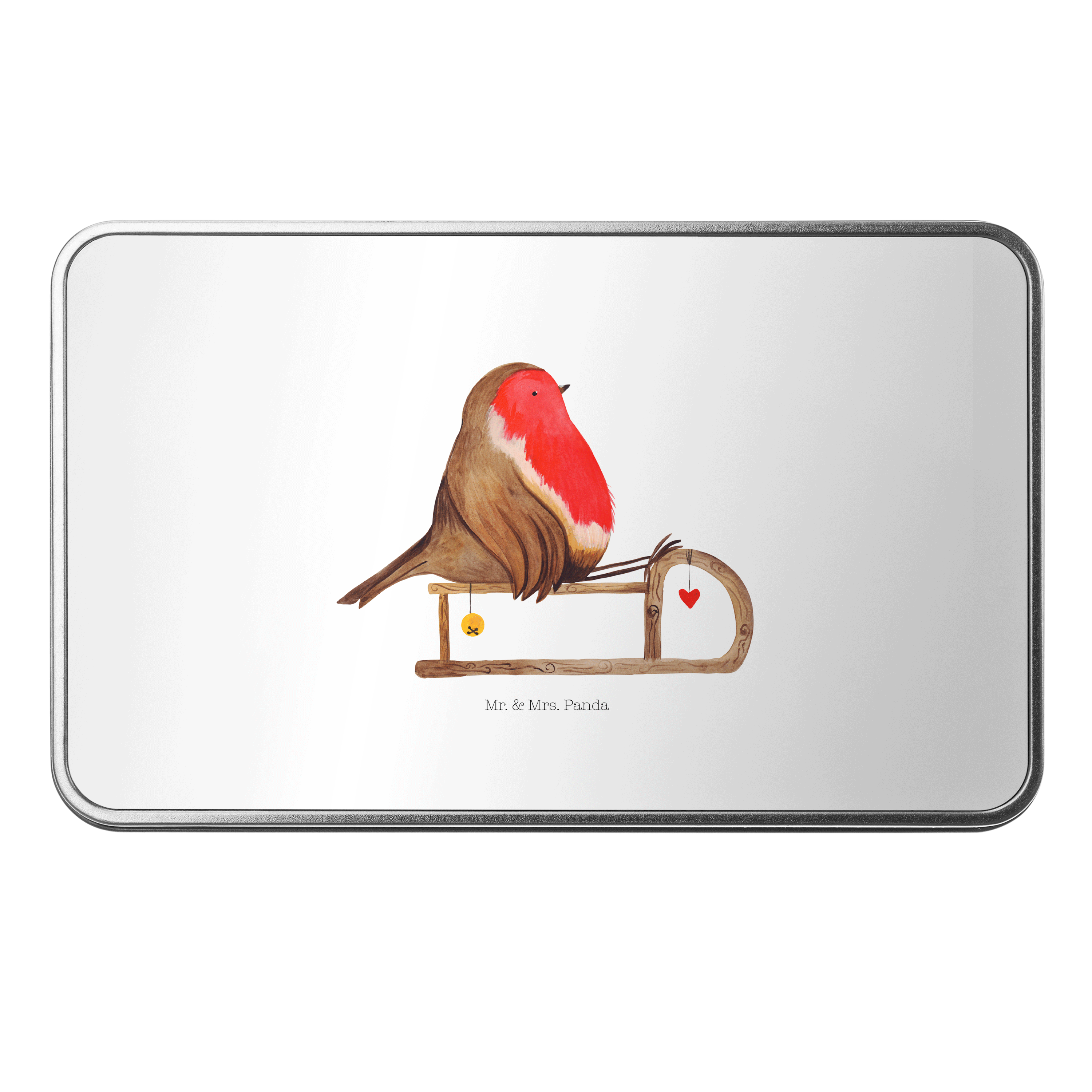 Metalldose rechteckig Rotkehlchen Schlitten Blechdose, Metalldose, Blechbox, Container, Keksdose, Vorratsdose, Vorratsbox, Döschen, Versperbox, Vesperdose, Aufbewahrungsdose, Aufbewahrungsbox, Aluminiumdose, Dose, Winter, Weihnachten, Weihnachtsdeko, Nikolaus, Advent, Heiligabend, Wintermotiv, Schlitten, Vogel
