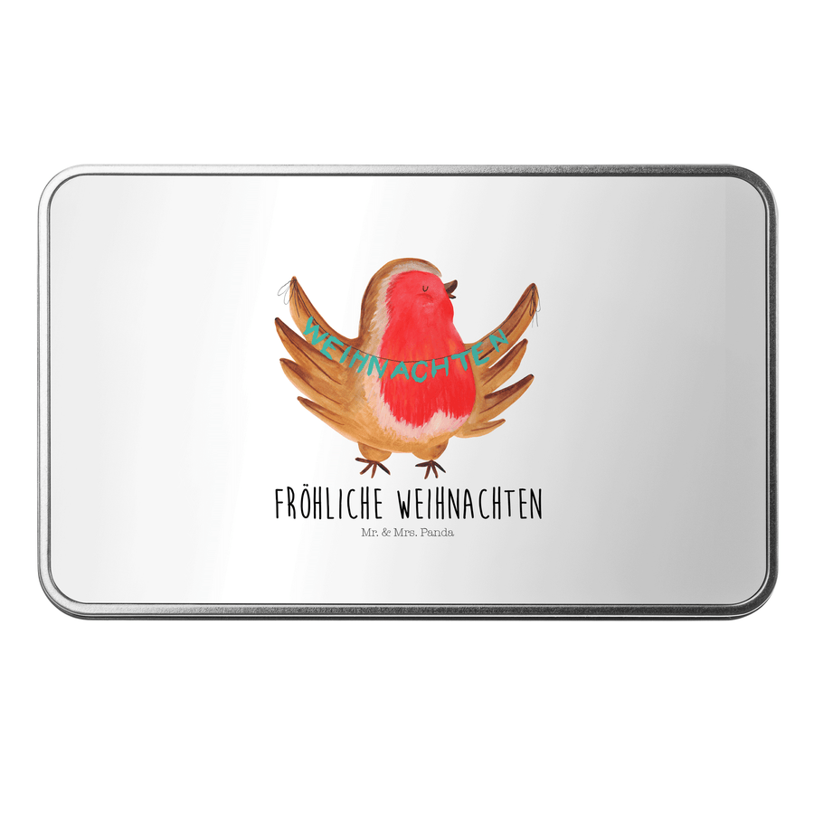 Metalldose rechteckig Rotkehlchen Weihnachten - mit Spruch - Weiß