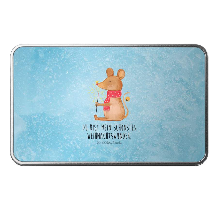 Metalldose rechteckig Weihnachtsmaus - mit Spruch - Eisblau
