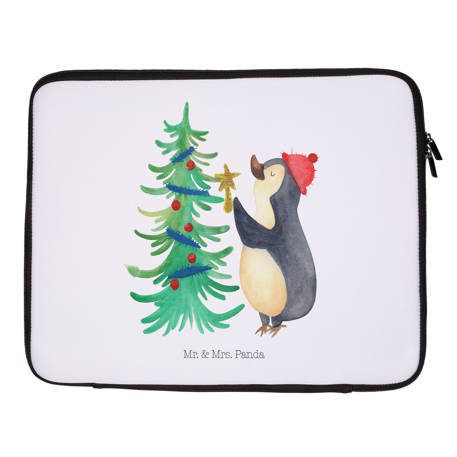 20 x 28 Notebook Tasche Pinguin Weihnachtsbaum - ohne Spruch - Weiß