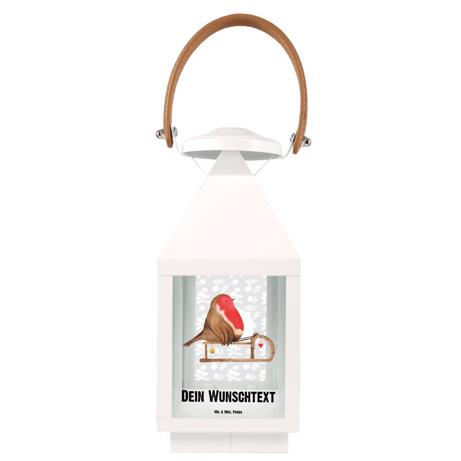 Personalisierte Deko Laterne Rotkehlchen Schlitten - S