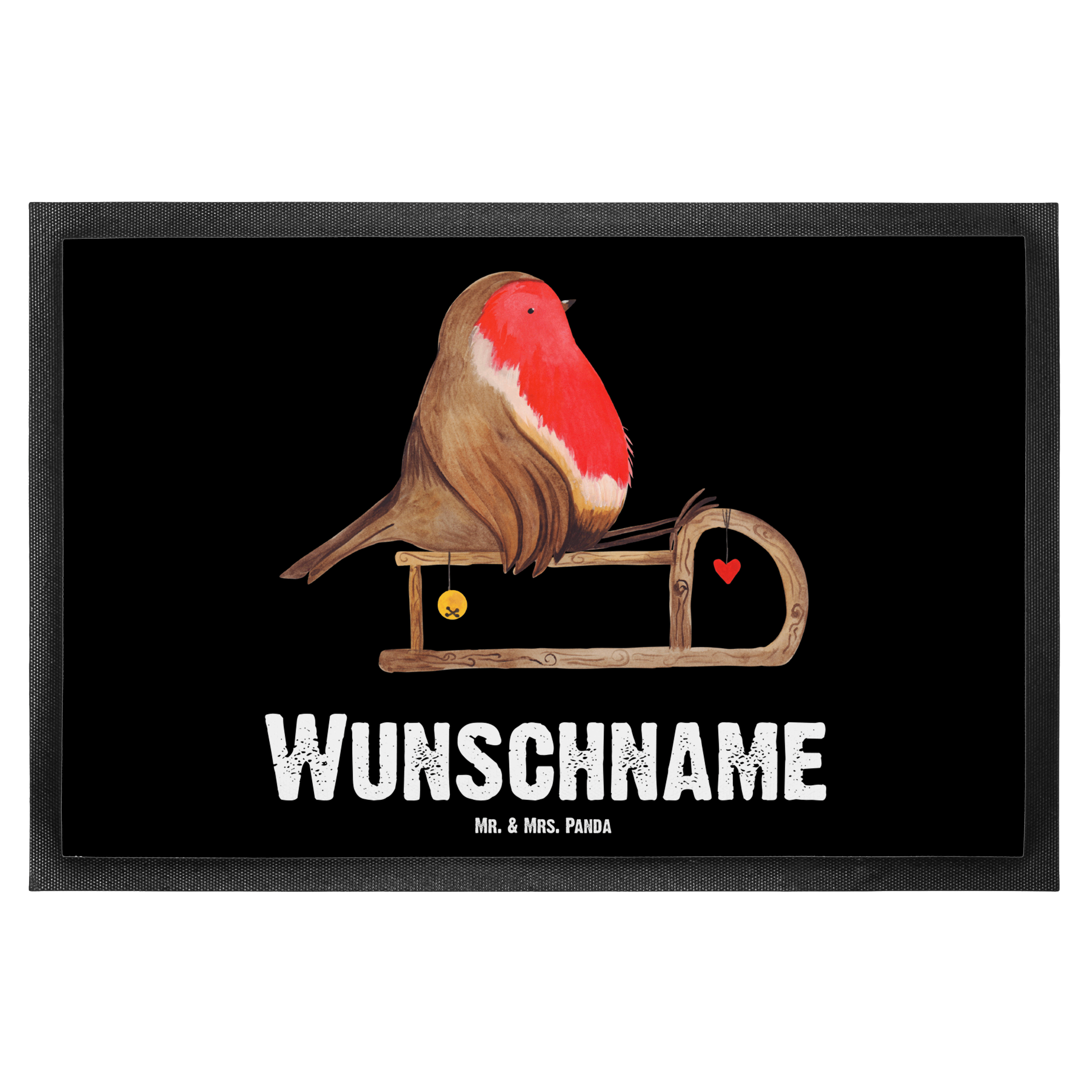Personalisierte Fußmatte Rotkehlchen Schlitten