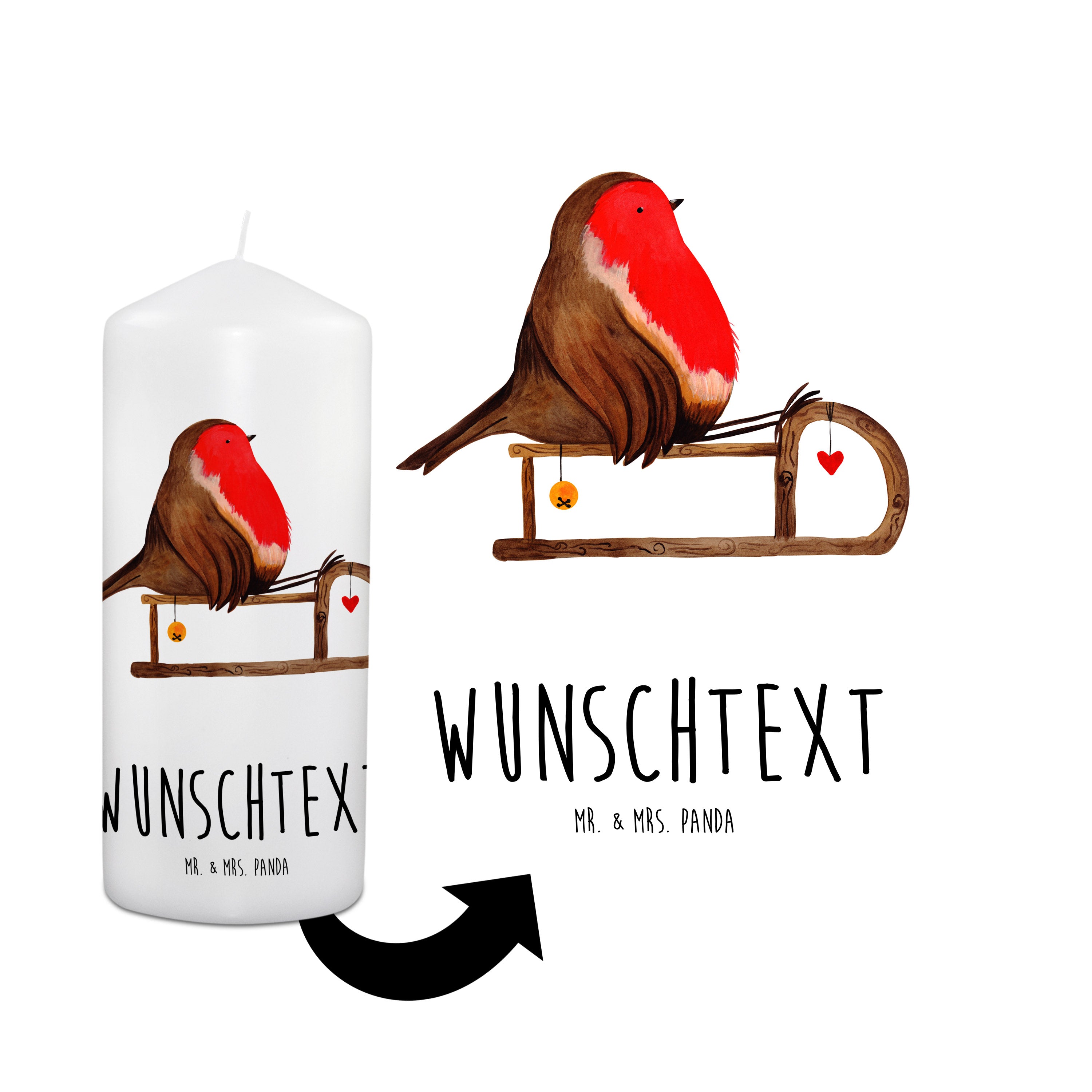Personalisierte Kerze Rotkehlchen Schlitten - 19 x 8 cm