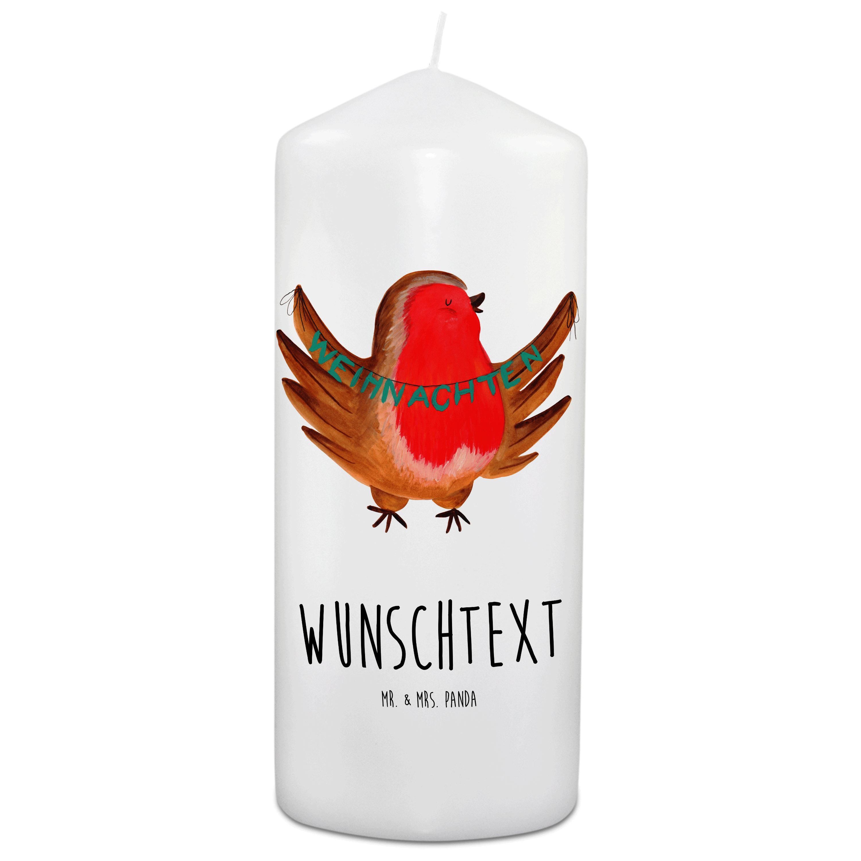 Personalisierte Kerze Rotkehlchen Weihnachten - 19 x 8 cm
