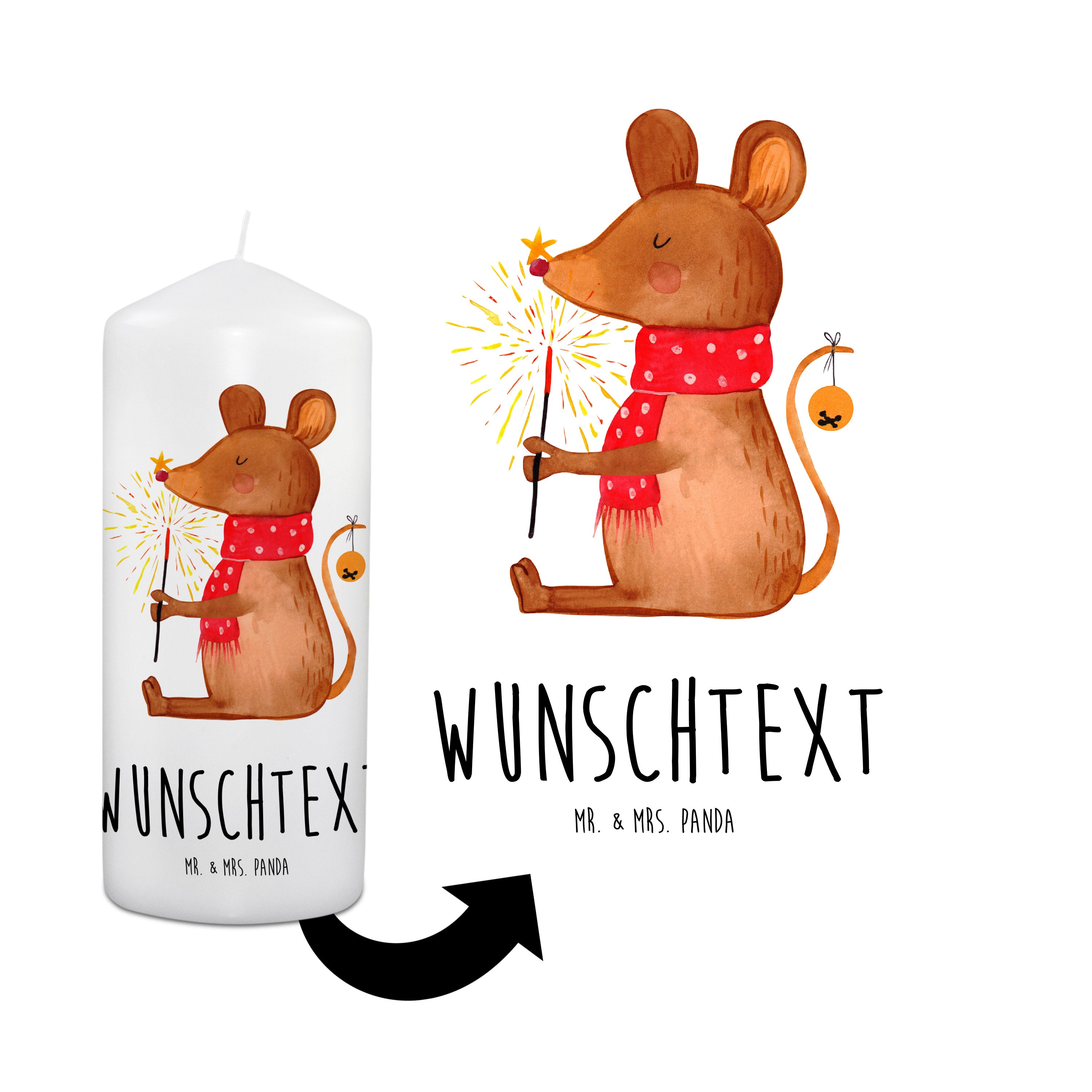 Personalisierte Kerze Weihnachtsmaus - 19 x 8 cm