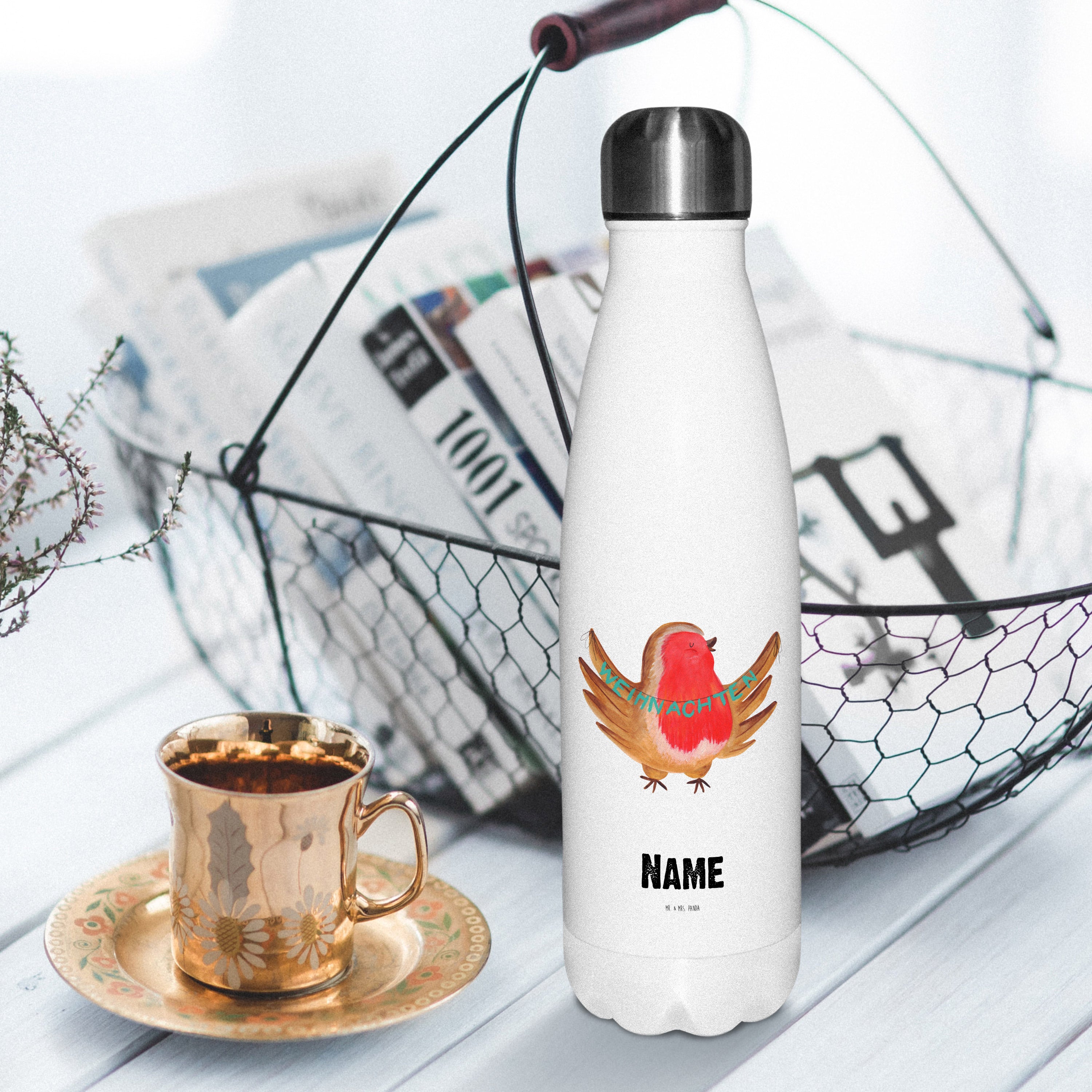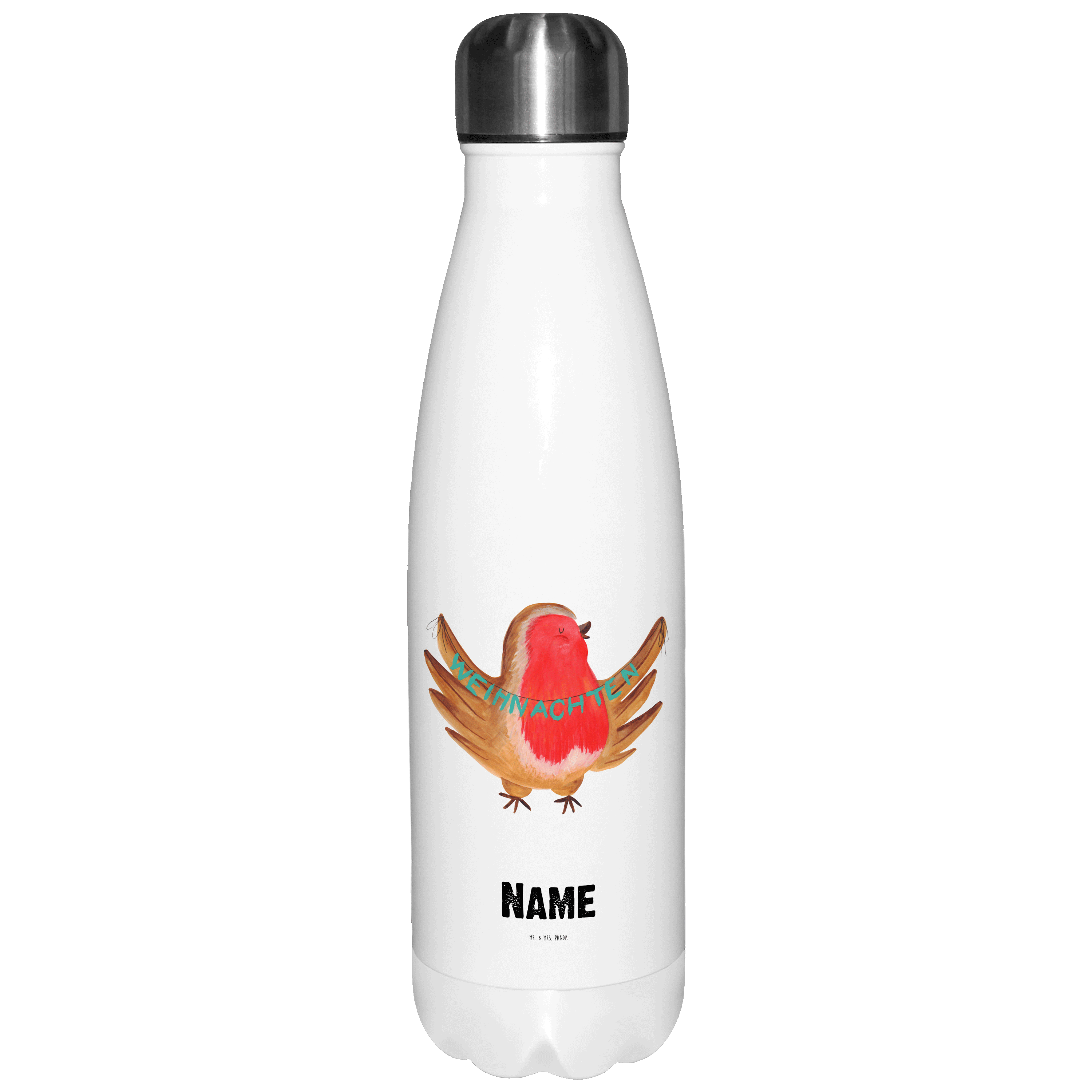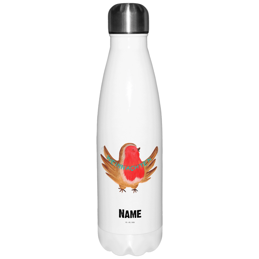 Personalisierte Thermosflasche Rotkehlchen Weihnachten