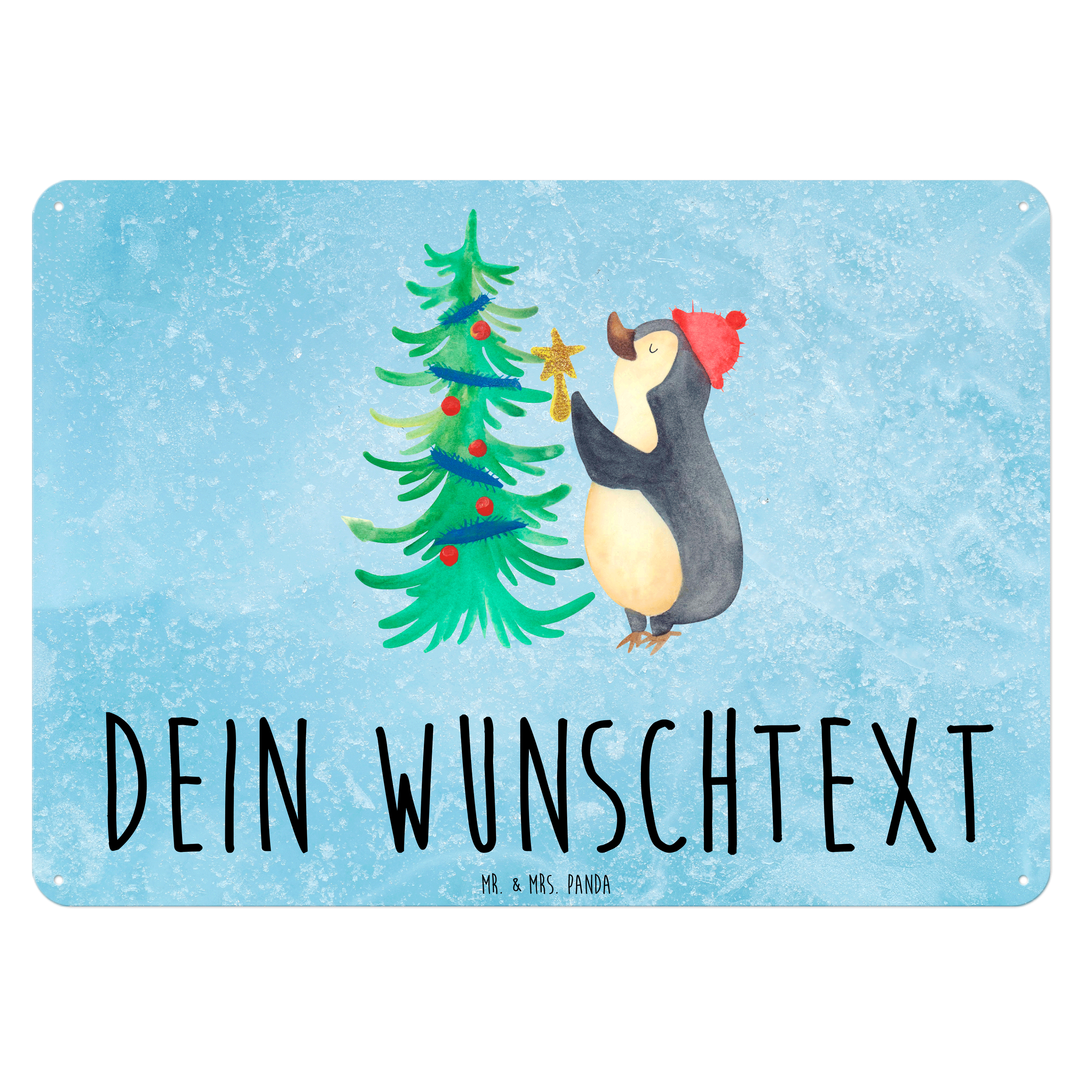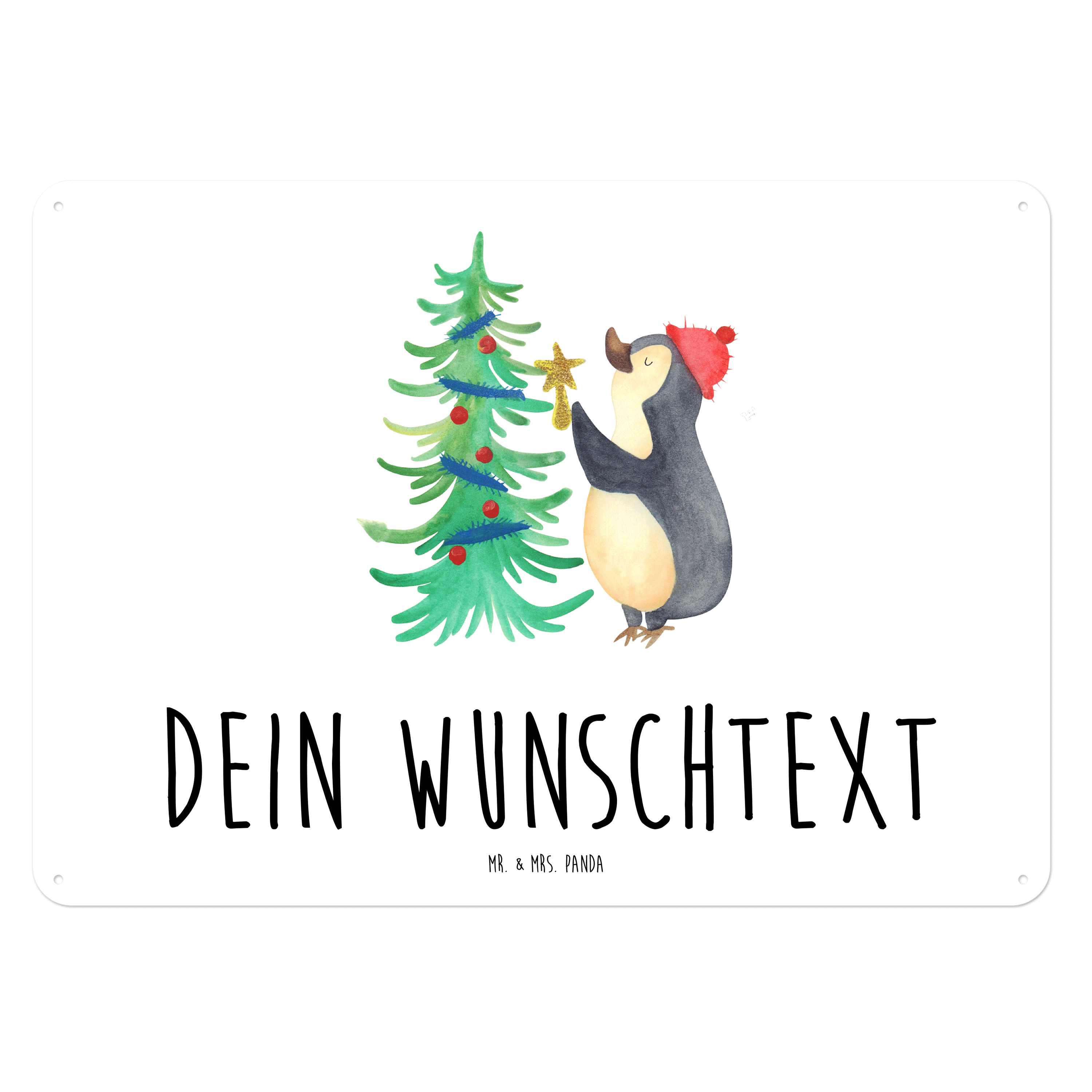 Personalisiertes Blechschild Pinguin Weihnachtsbaum - DIN A6