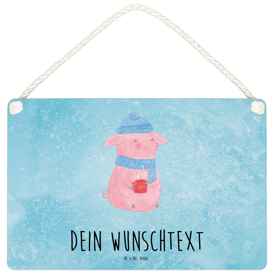 Personalisiertes Deko Schild Lallelndes Glühschwein - Eisblau - DIN A5