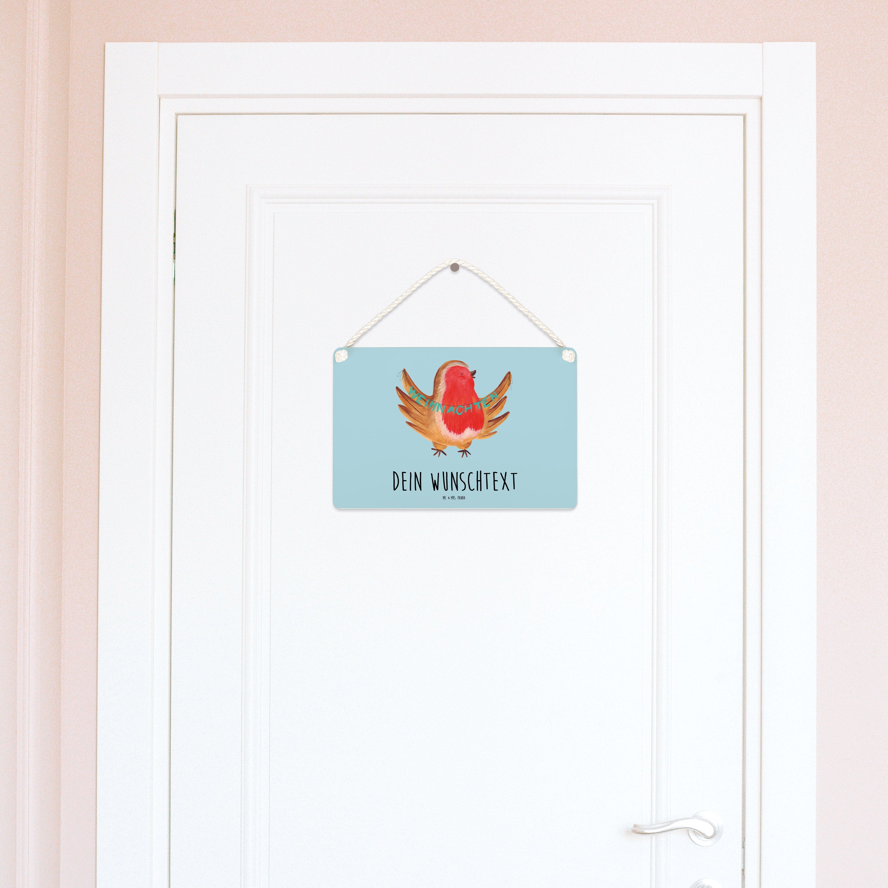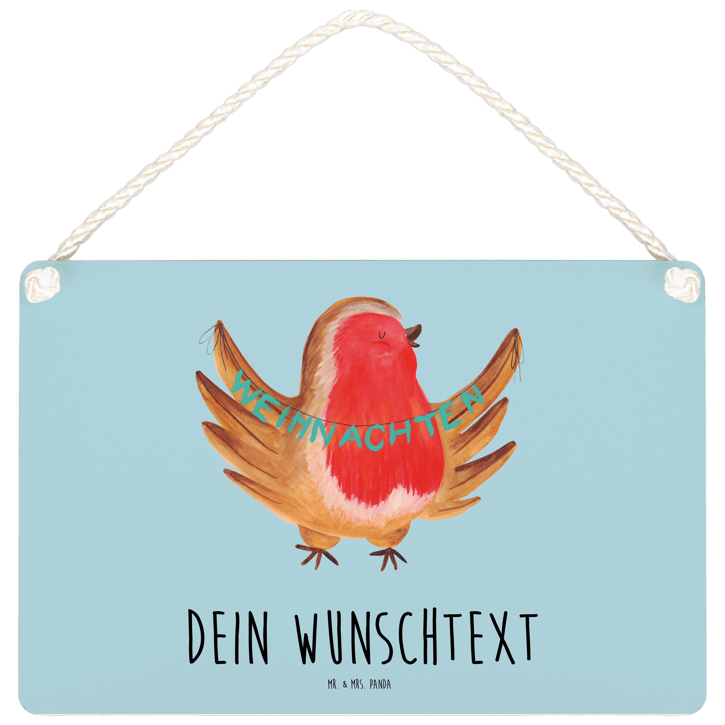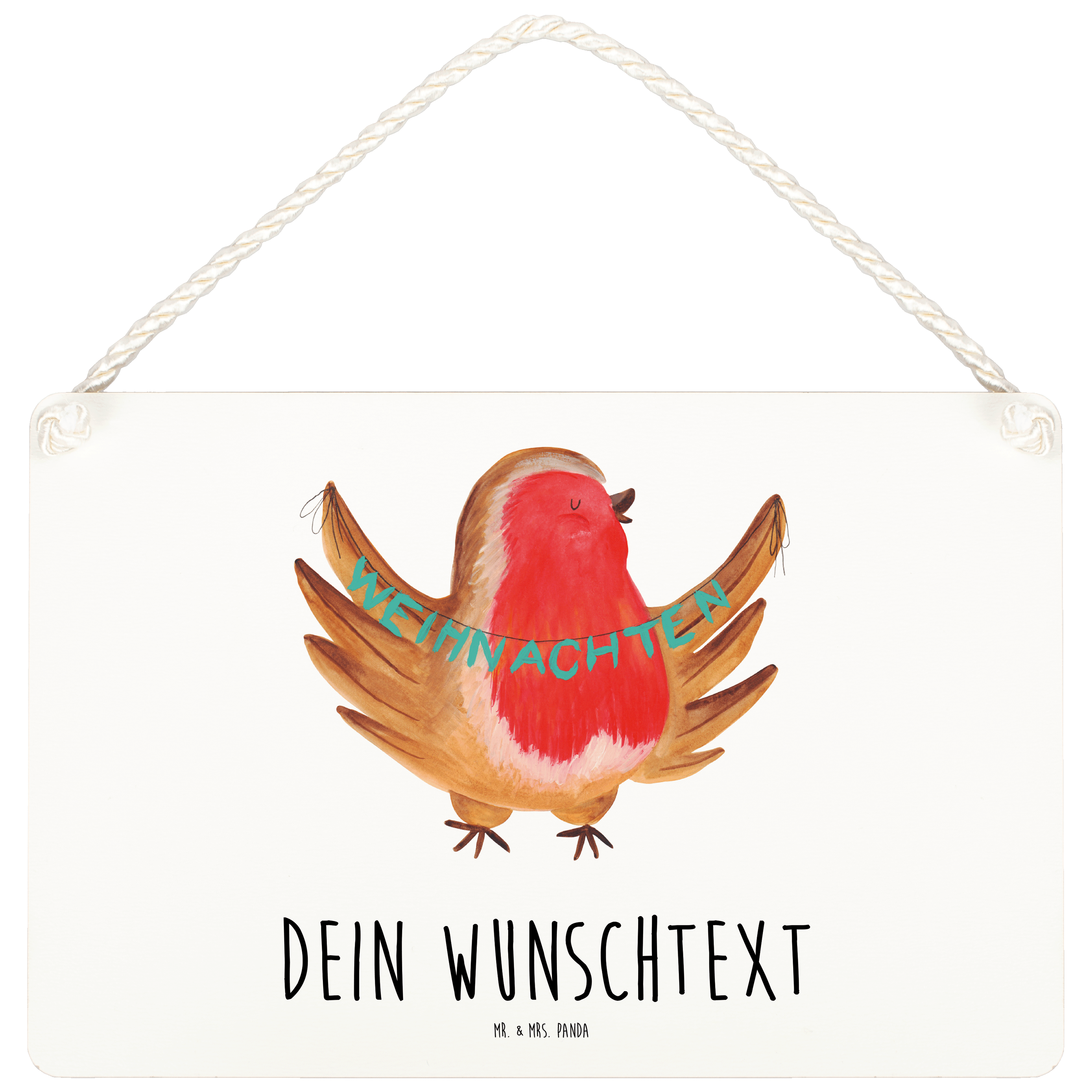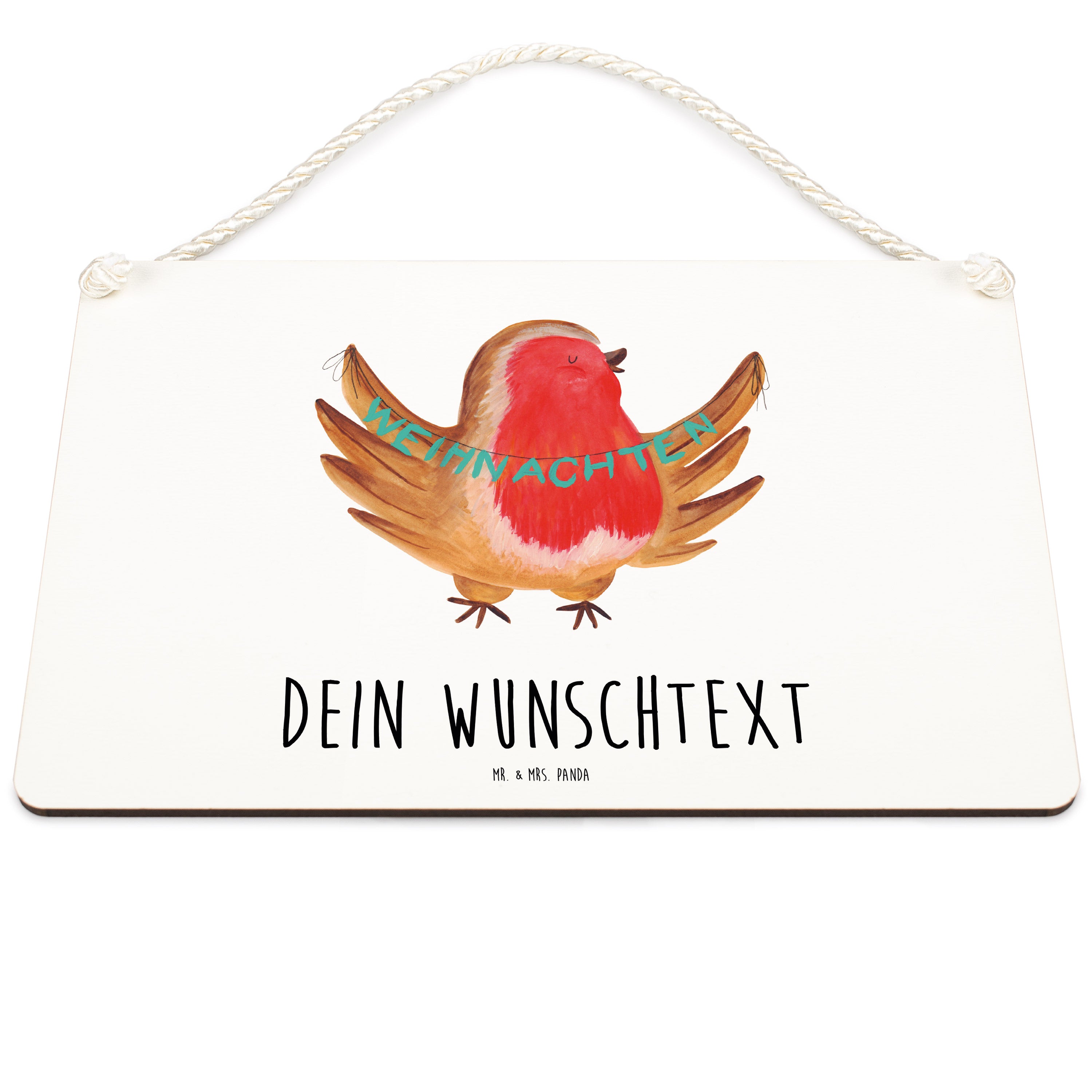 Personalisiertes Deko Schild Rotkehlchen Weihnachten - Weiß - DIN A5