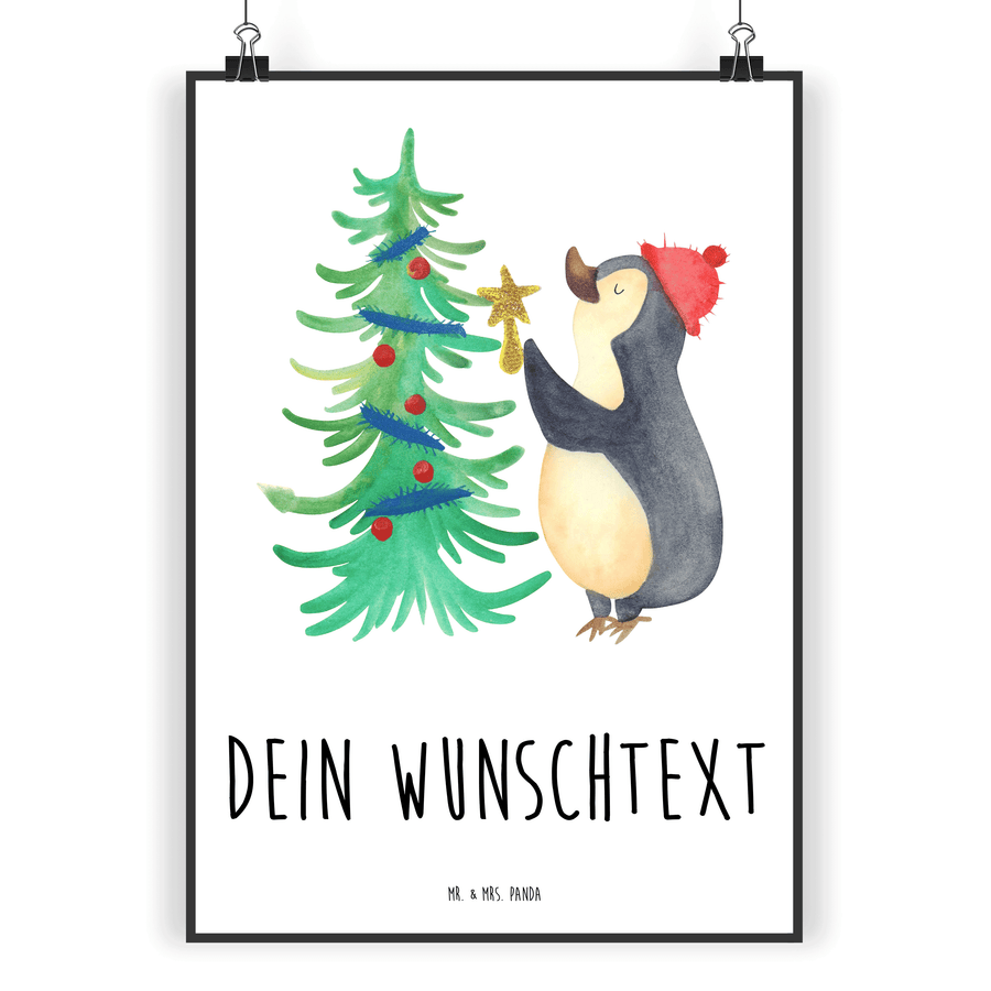 Personalisiertes Poster Pinguin Weihnachtsbaum - Weiß - DIN A5