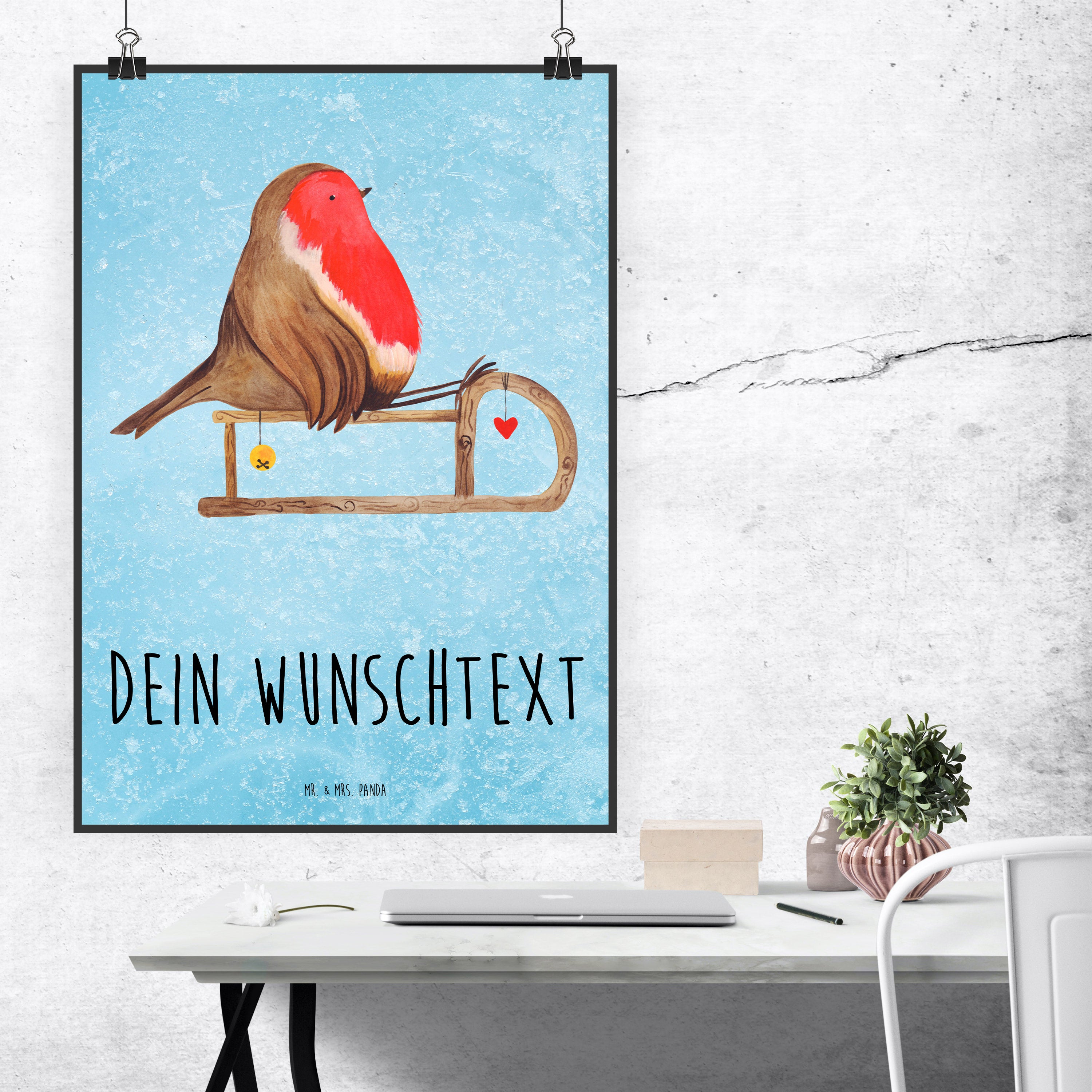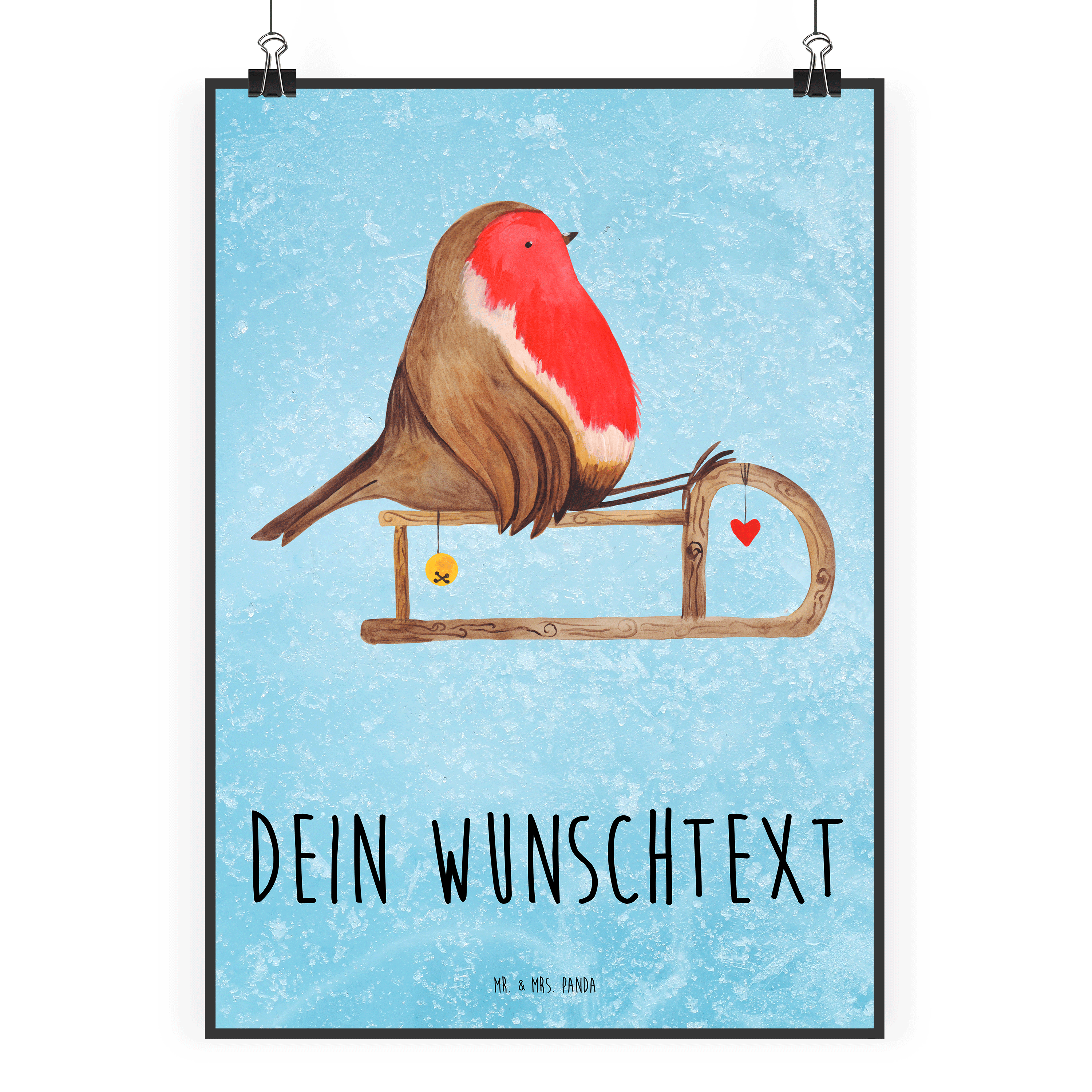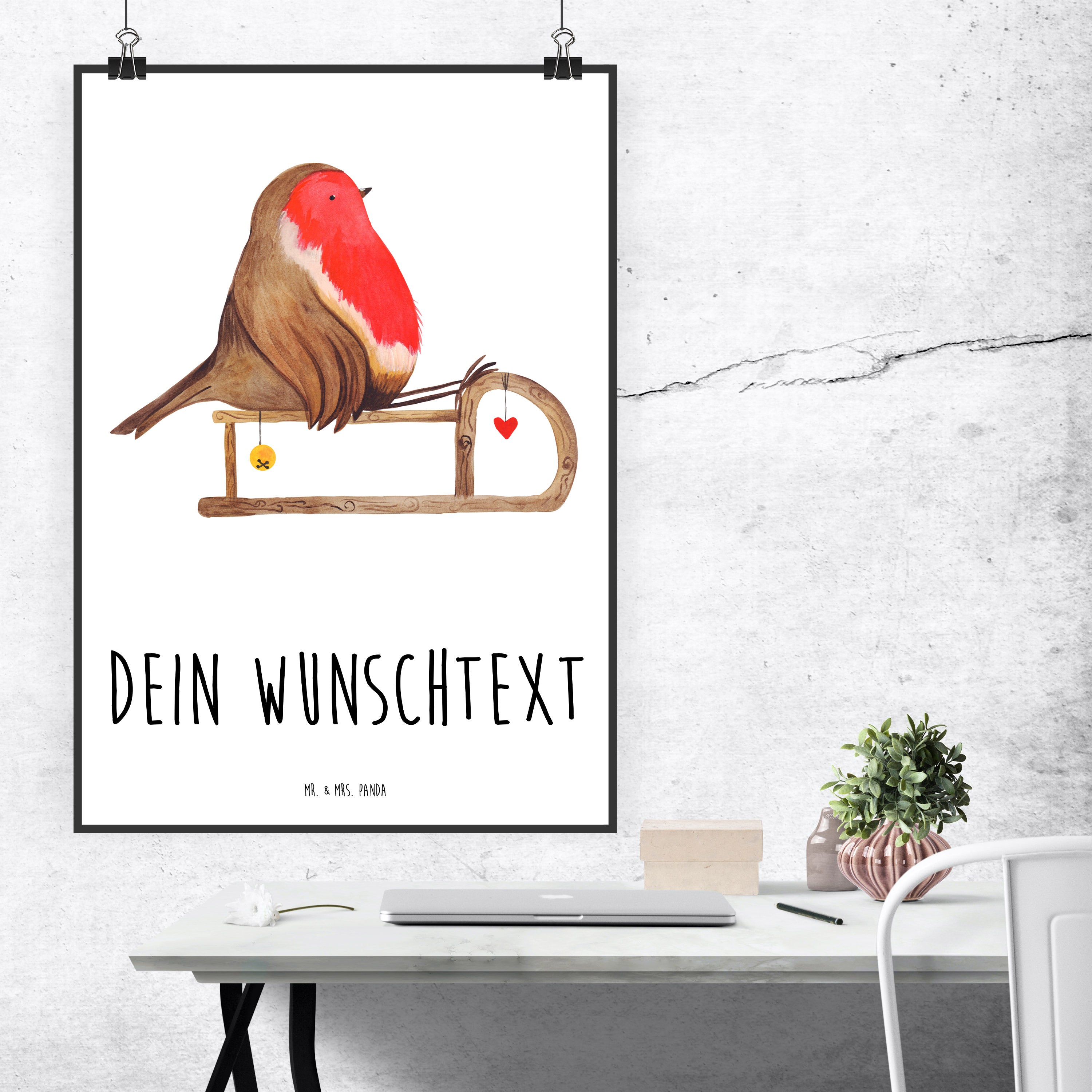 Personalisiertes Poster Rotkehlchen Schlitten - Weiß - DIN A5
