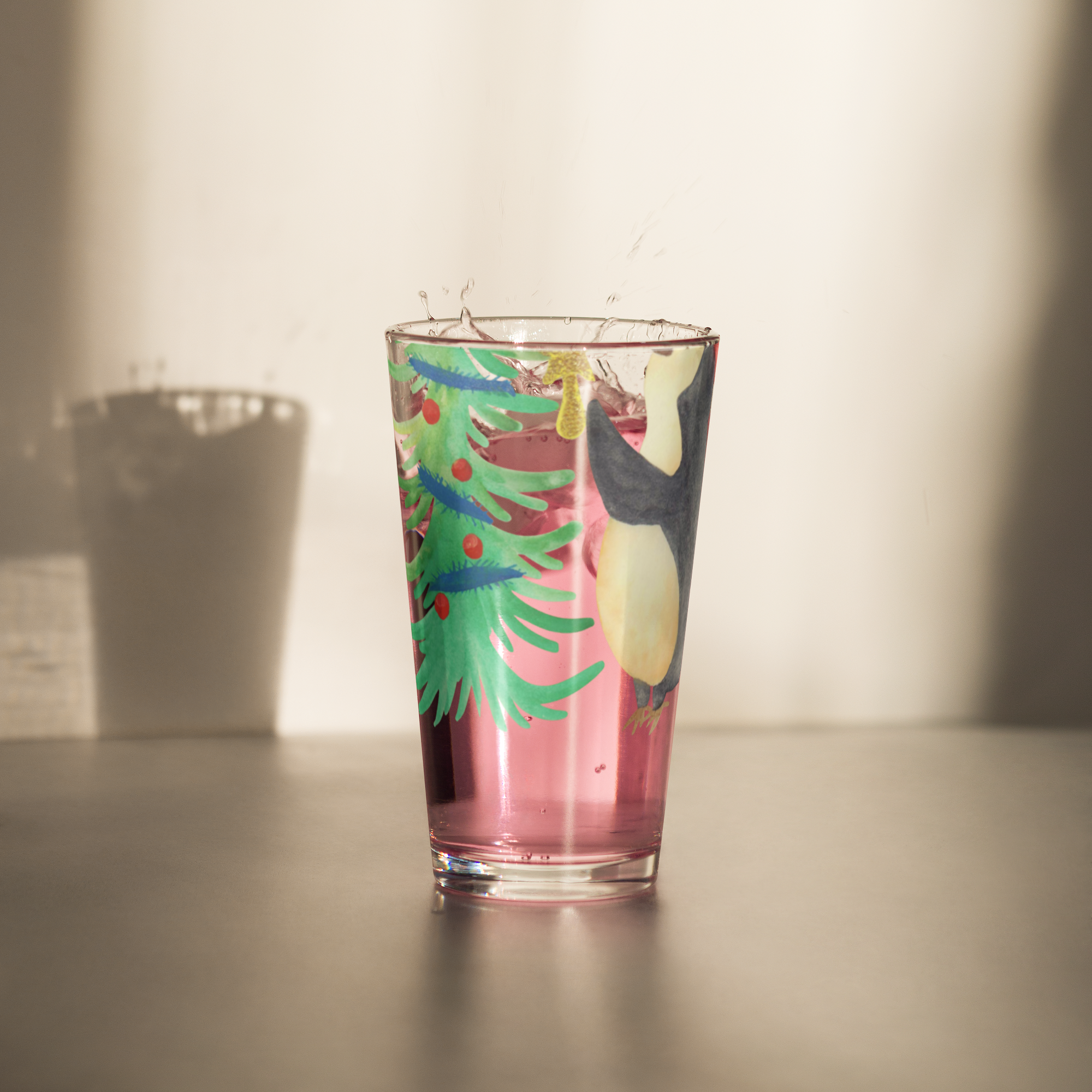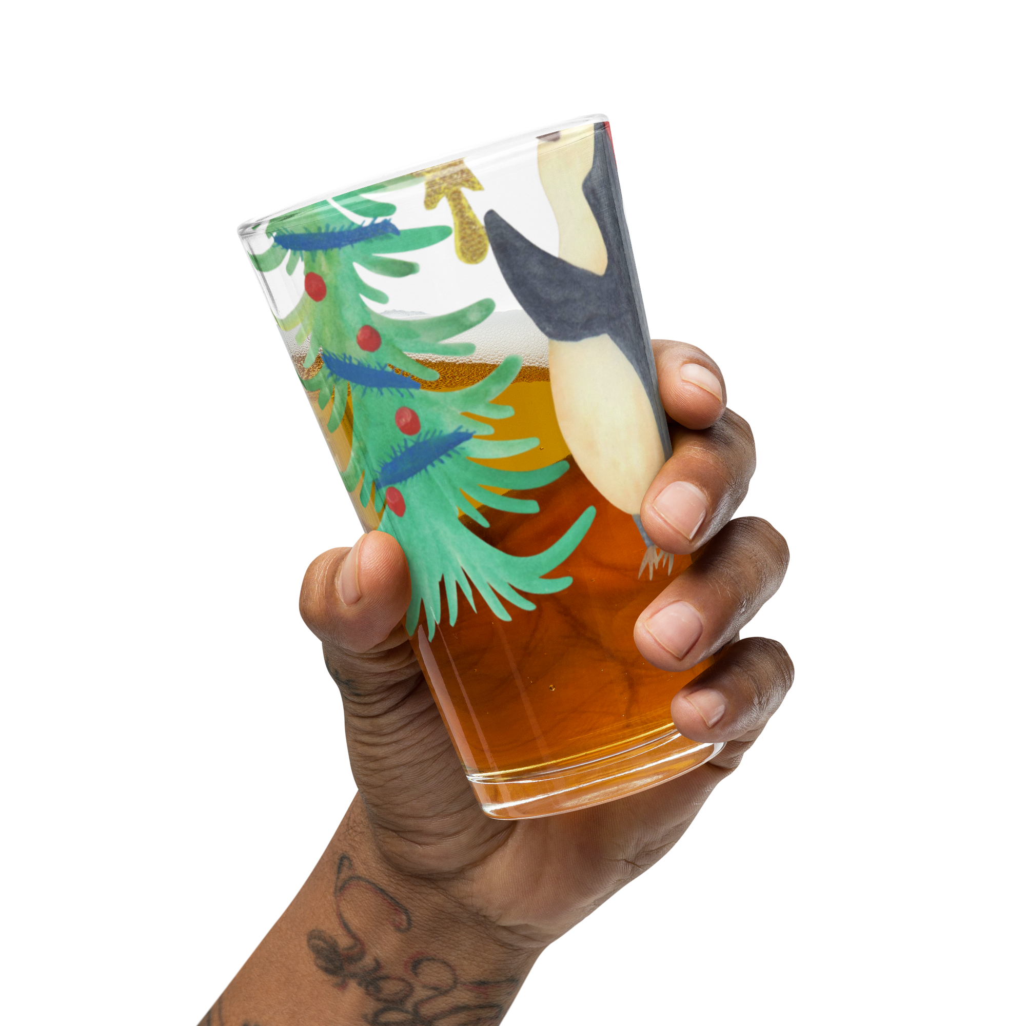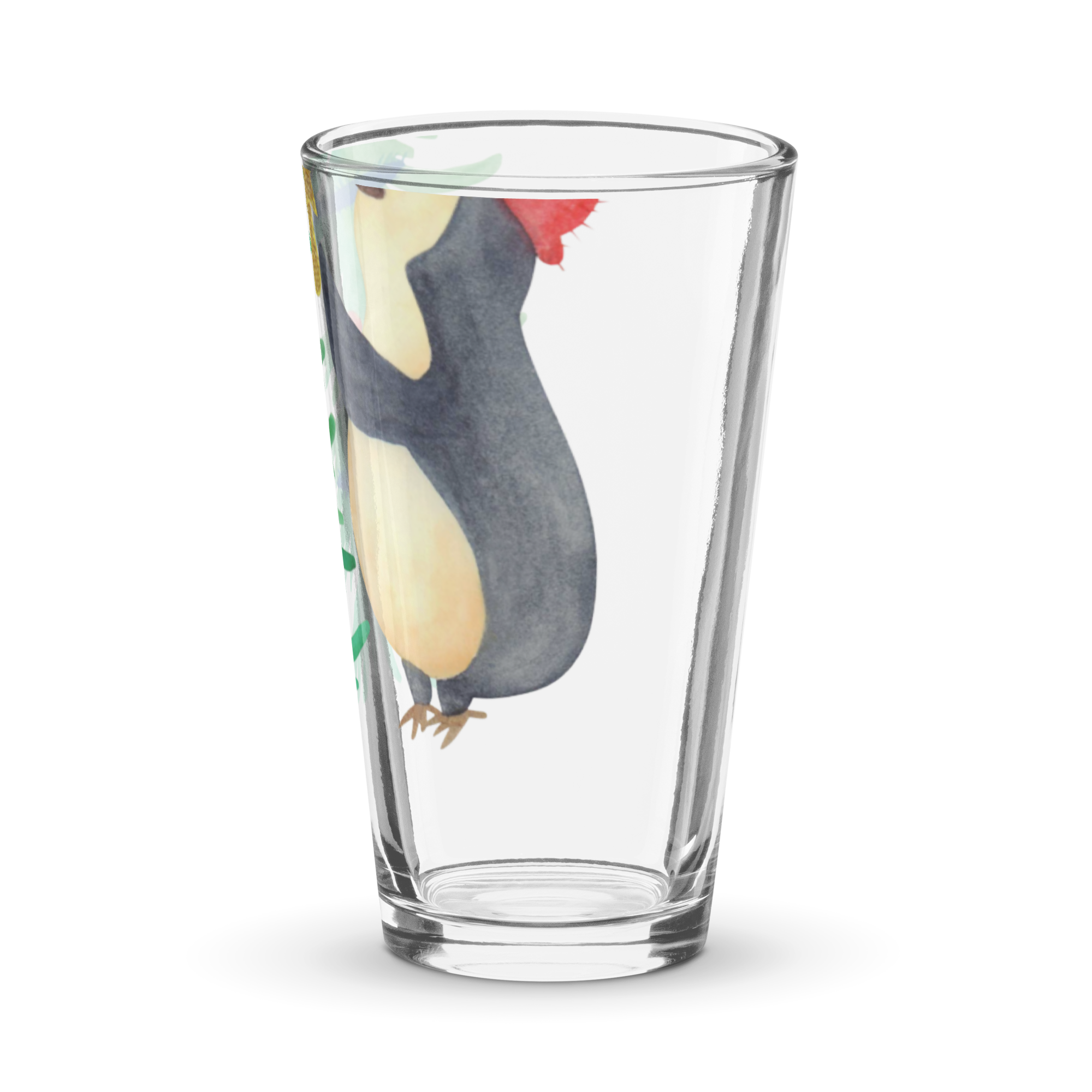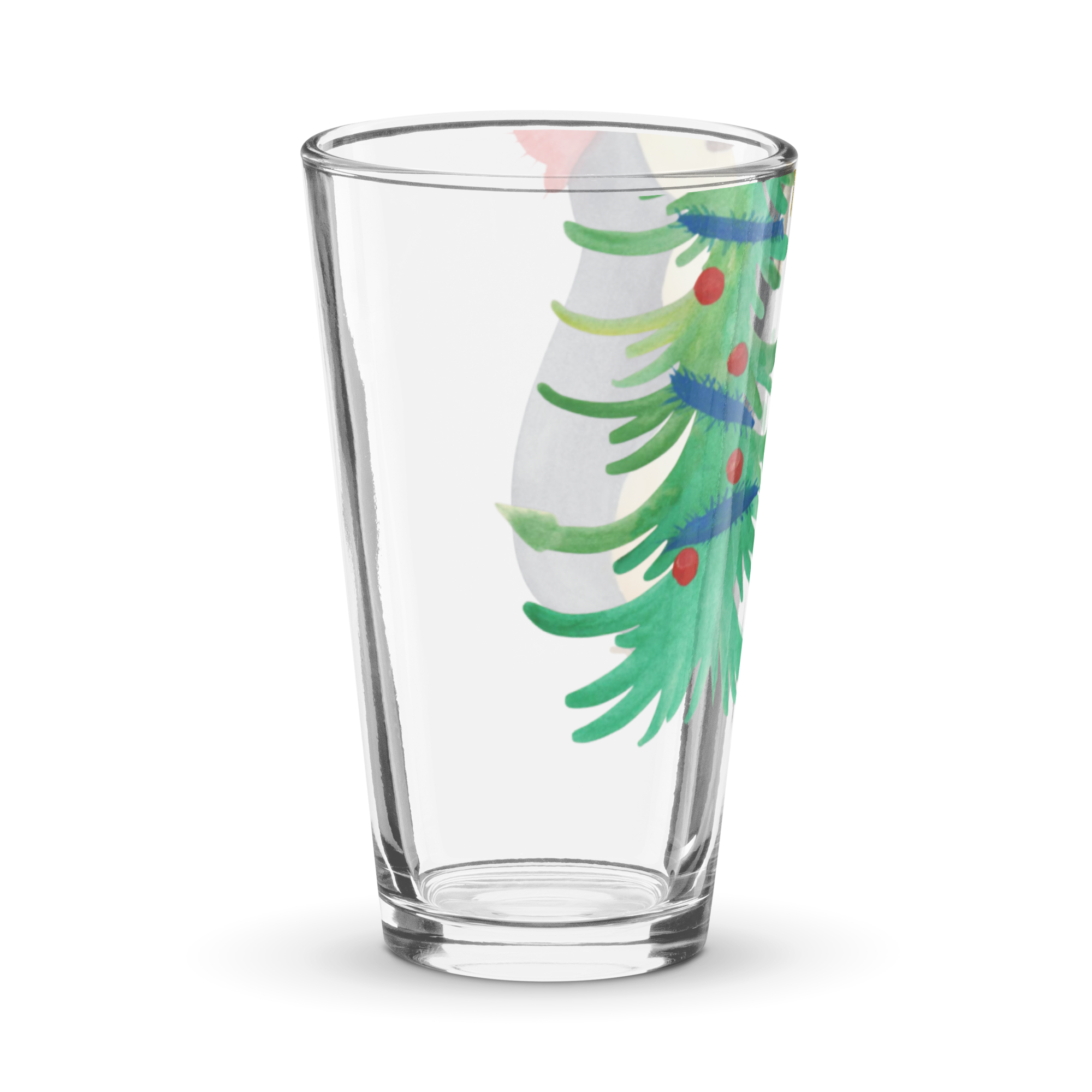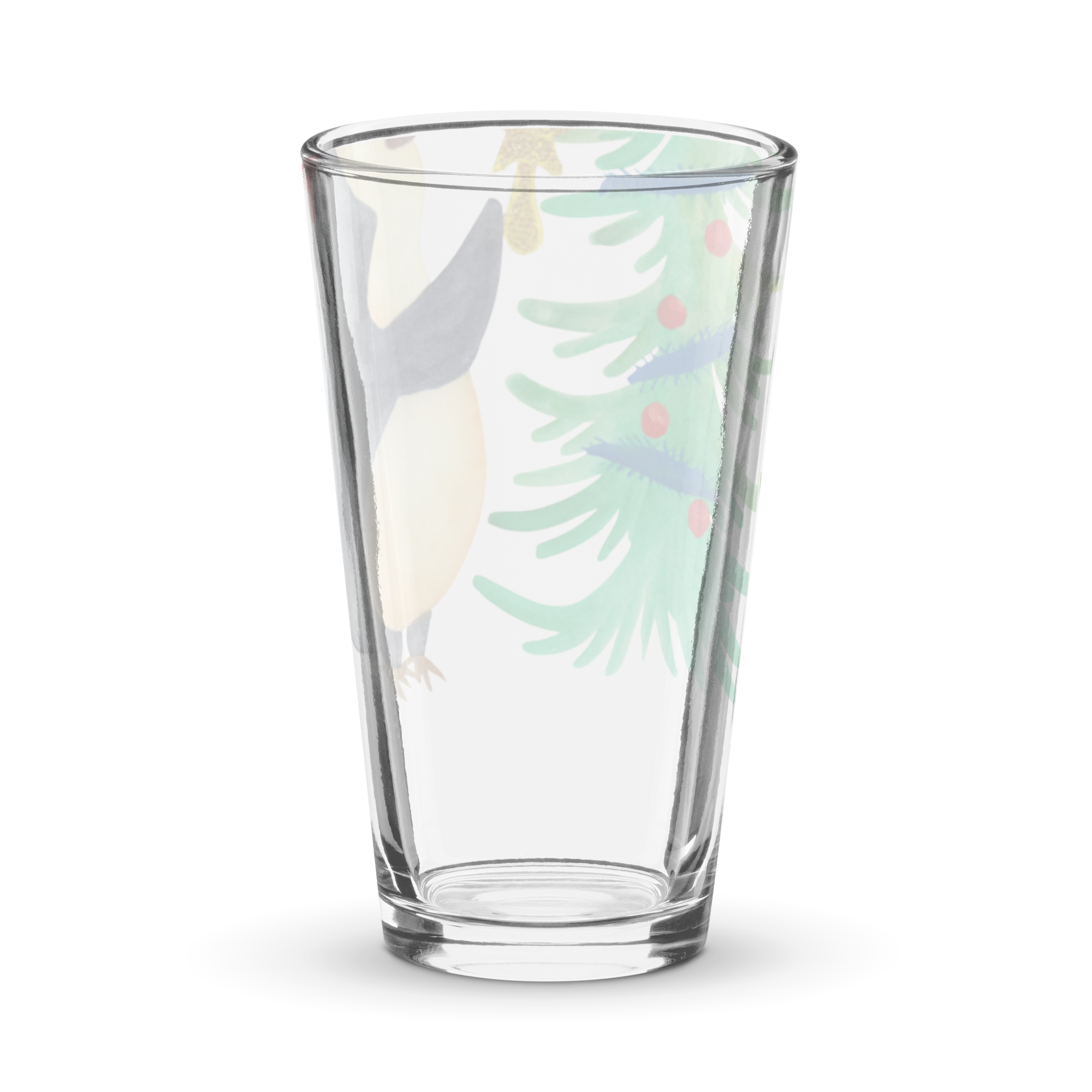 Personalisiertes Trinkglas Pinguin Weihnachtsbaum