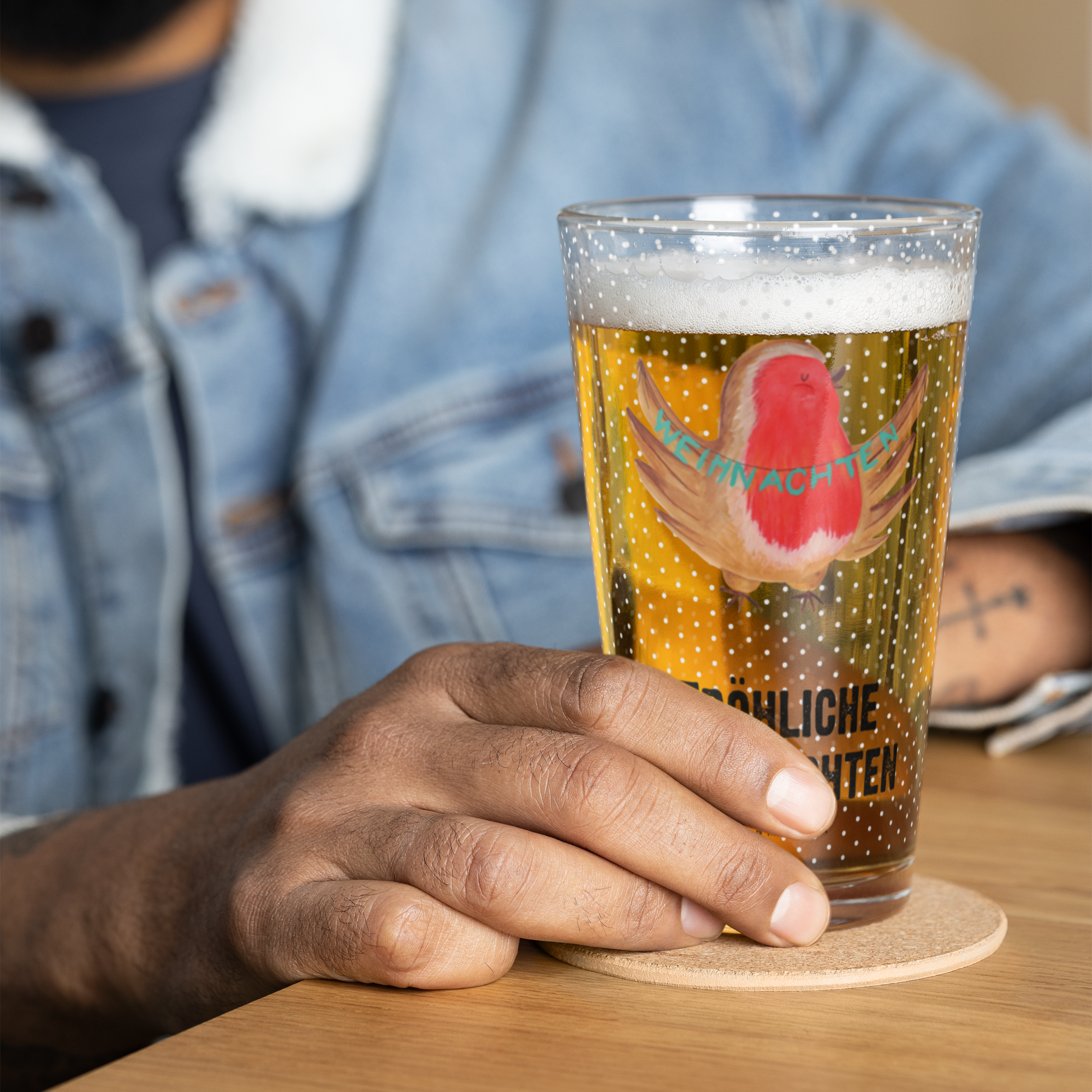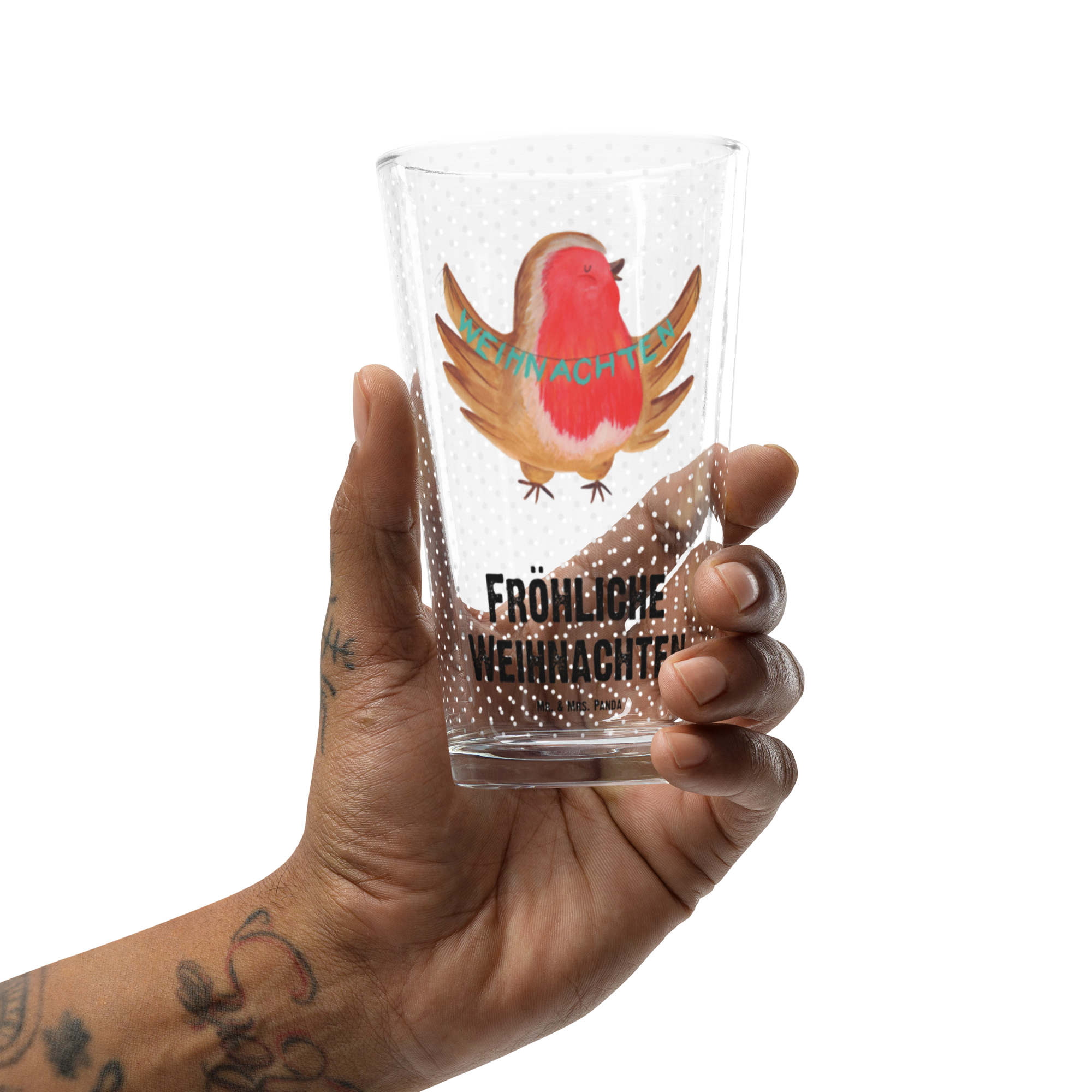 Premium Trinkglas Rotkehlchen Weihnachten - mit Spruch