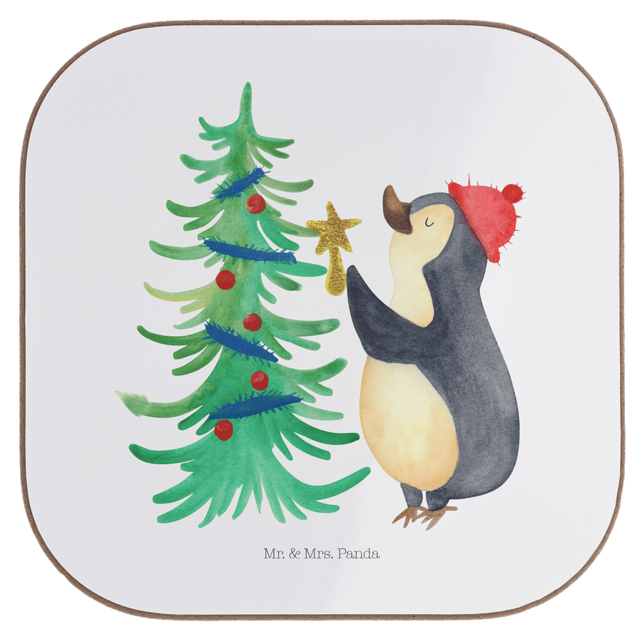 Quadratische Untersetzer Pinguin Weihnachtsbaum - ohne Spruch - Weiß